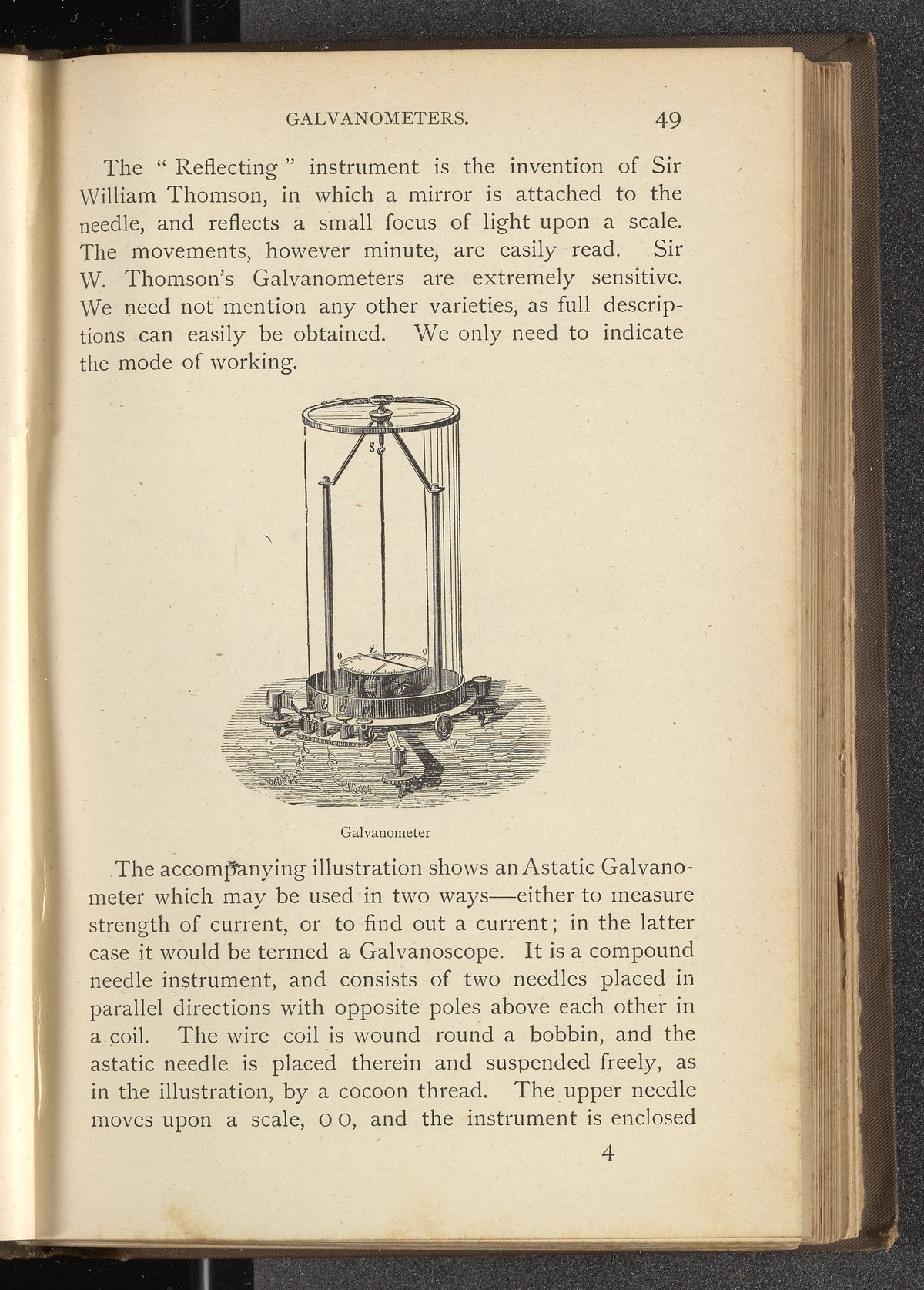 Ward, Lock. “Galvanometer.” Wonders of Electricity and the Elements, Being a Popular Account of Modern Electrical and Magnetic Discoveries, Magnetism and Electric Machines, the Electric Telegraph and the Electric Light, and the Metal Bases, Salt, and Acids. London, England, 1870–1900. https://digital.sciencehistory.org/works/wnxr999.