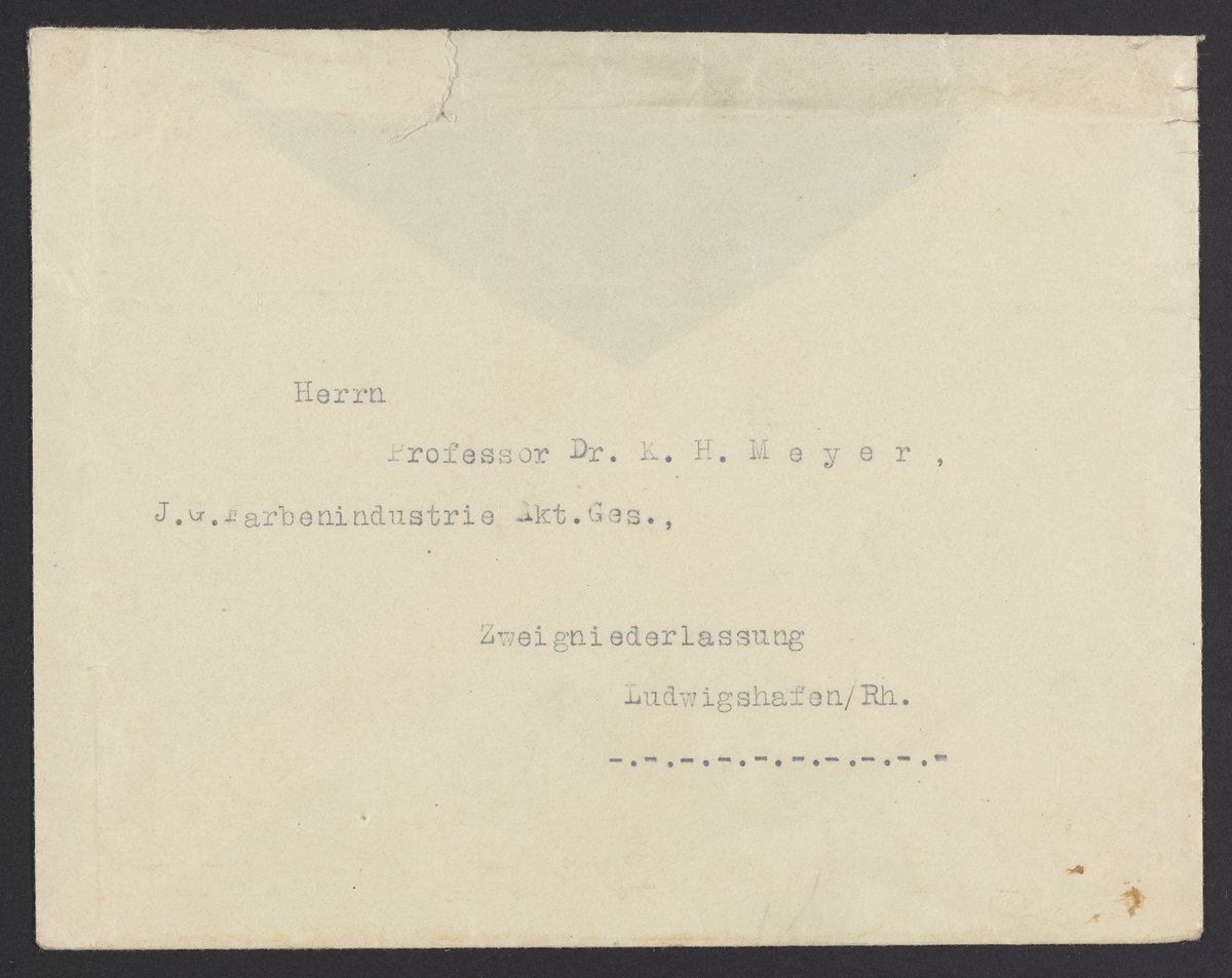 Small JPG1200 x 1513px — 224 KBLarge JPG2880 x 3630px — 1.4 MBFull-sized JPG5678 x 7157px — 5.7 MBOriginal fileTIFF — 5678 x 7157px — 116 MBFritz Haber (1868-1934) writes to Kurt Hans Meyer (1883-1952) about Max Albert Bredig (1902-1977) studying X-ray imaging under Dr. Herman Mark (1895-1992). Before Bredig can begin with Mark, the managers at I. G. Farben must approve the request.