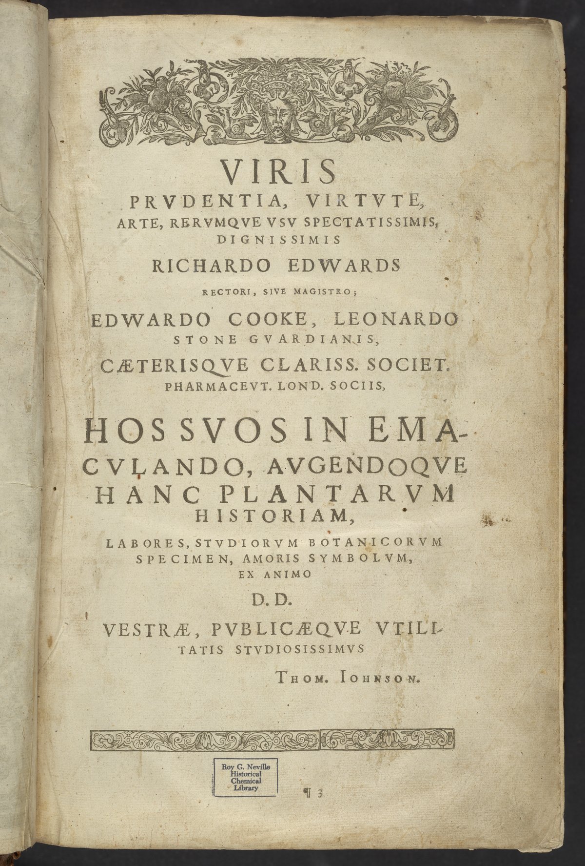 Gerard, John, Rembert Dodoens, and Iacobus Theodorus. The Herball, or, Generall Historie of Plantes. London, England: Thomas Johnson, 1633. https://digital.sciencehistory.org/works/x059c8449.