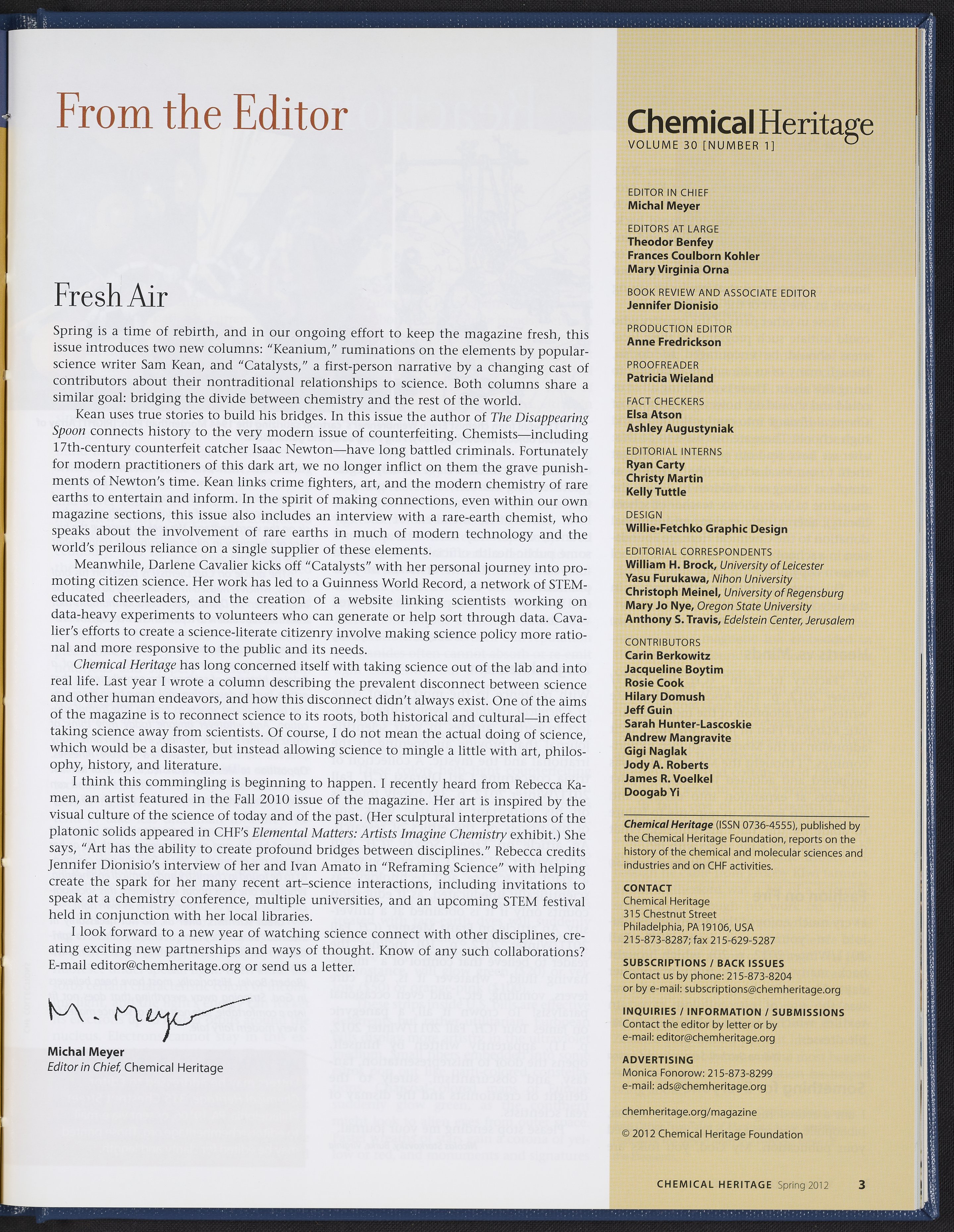 “Chemical Heritage, Volume 30 Number 1.” Philadelphia, Pennsylvania: Chemical Heritage Foundation, 2012. 099C001. Science History Institute. Philadelphia. https://digital.sciencehistory.org/works/x6q55l2.