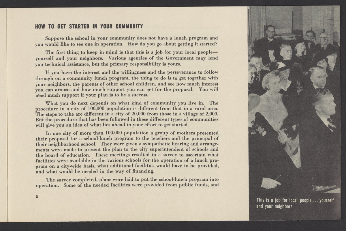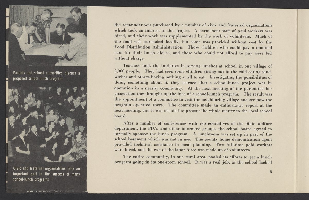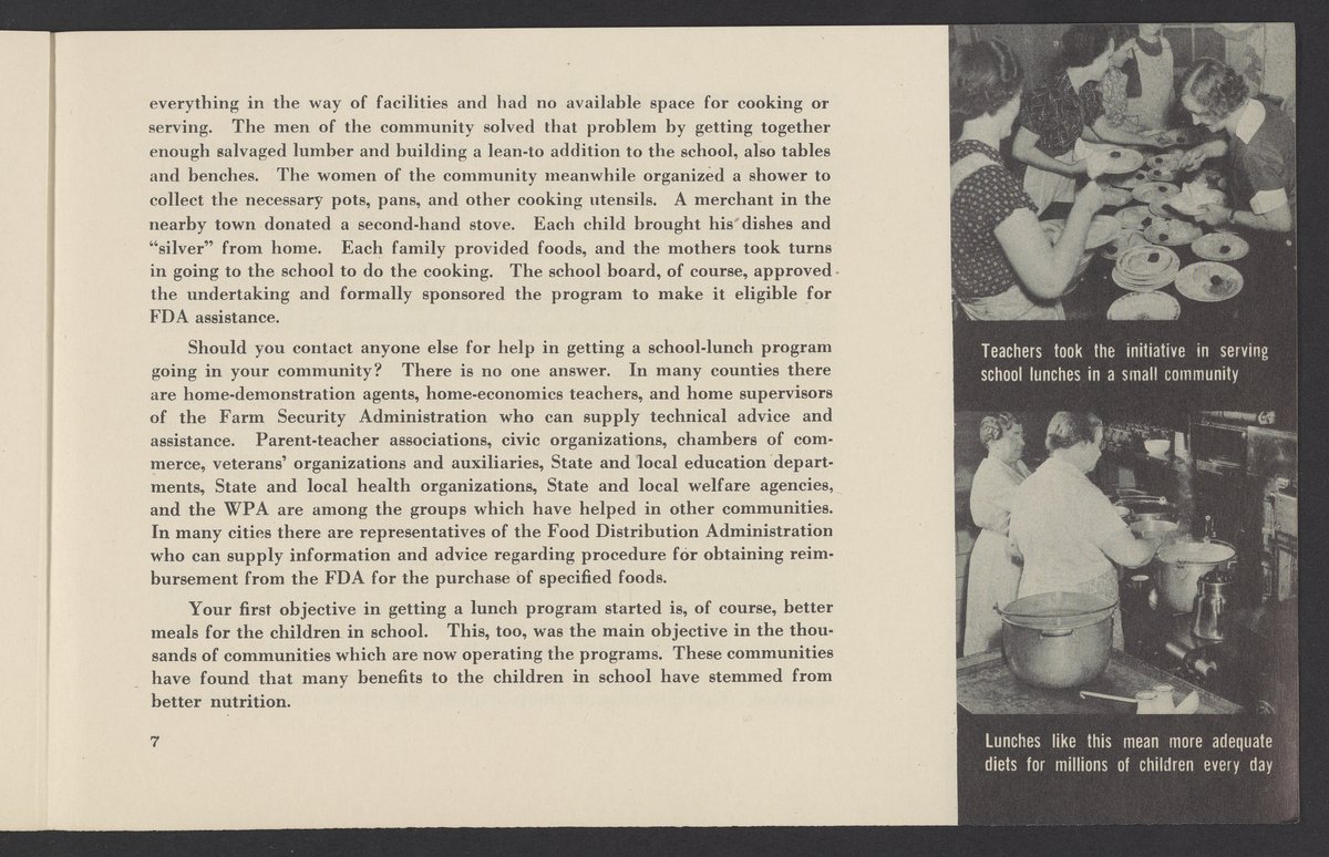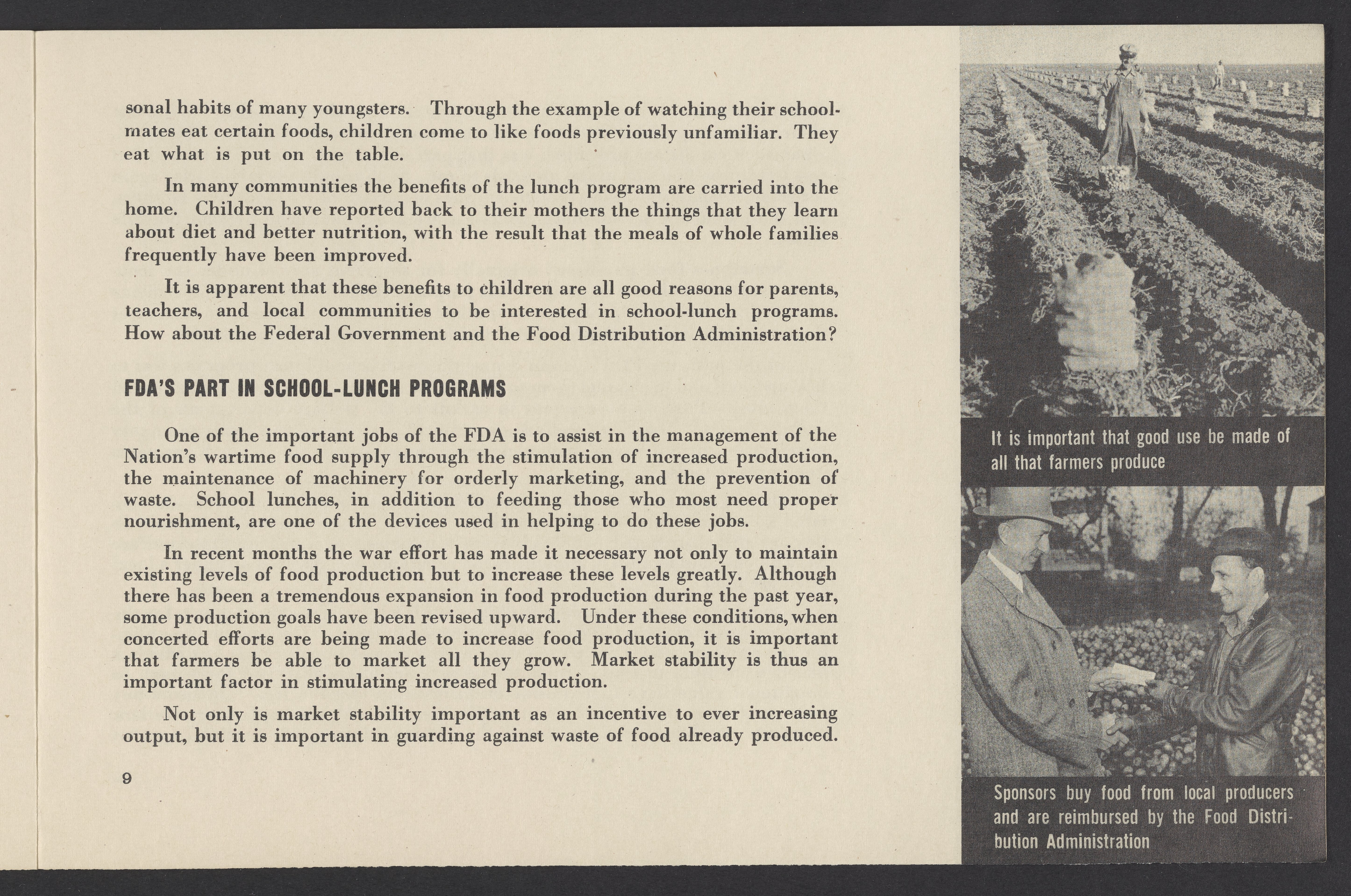 Small JPG1200 x 776px — 167 KBLarge JPG2880 x 1863px — 1.2 MBFull-sized JPG5778 x 3738px — 5.5 MBOriginal fileTIFF — 5778 x 3738px — 61.8 MBHunger Quits School is a pamphlet published in 1943 by the United States Food Distribution Administration. This pamphlet explains the benefits of school lunch programs, and how to start them in local communities.