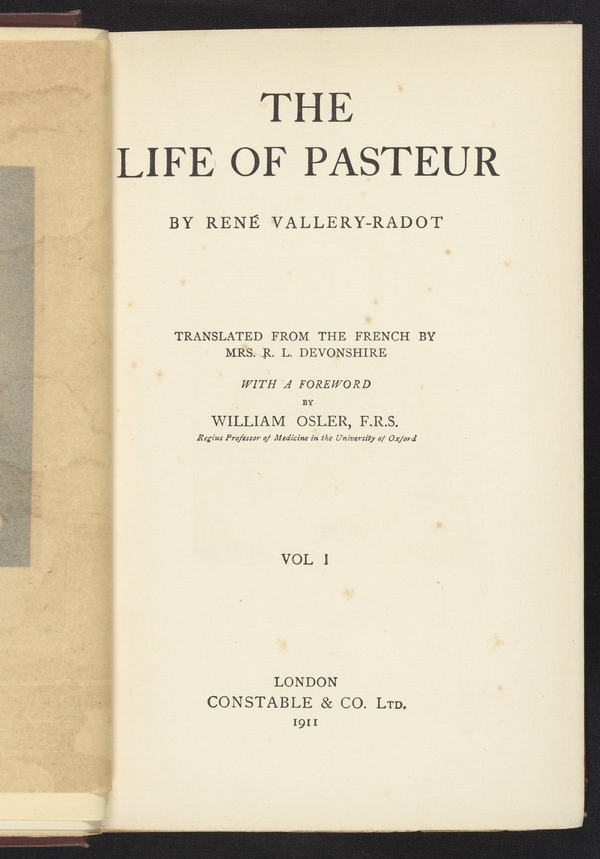 Vallery-Radot, René. “The Life of Pasteur.” London, England: Constable, 1911. https://digital.sciencehistory.org/works/x8k83m8.