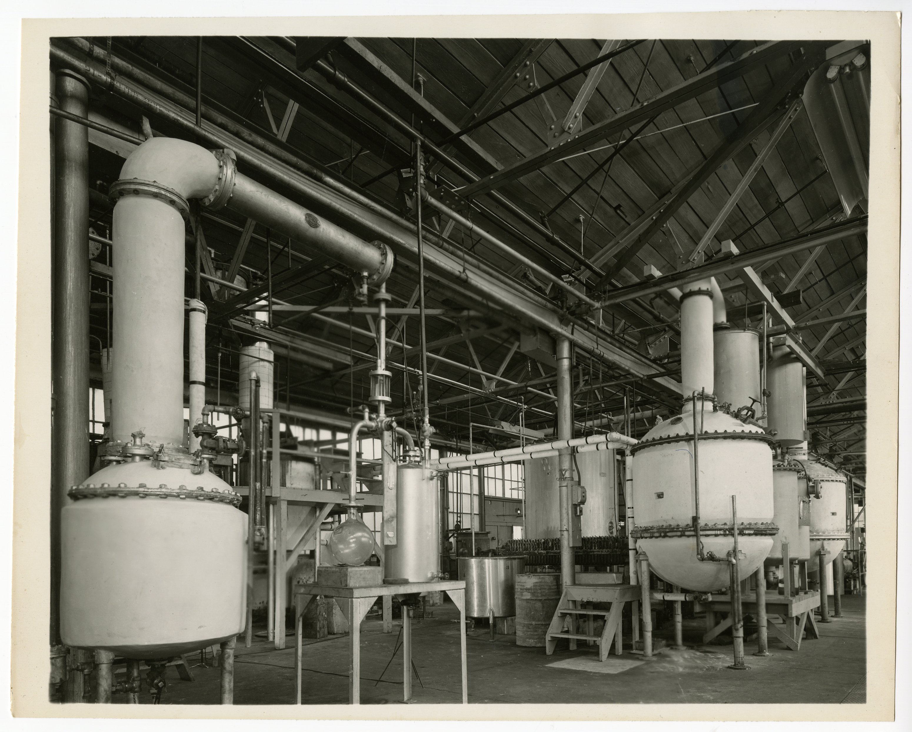 Norda Essential Oil and Chemical Company. “Vacuum Stills,” 1950–1959. Norda Essential Oil and Chemical Company Photograph Collection, Box 1. Science History Institute. Philadelphia. https://digital.sciencehistory.org/works/x920fw84d.