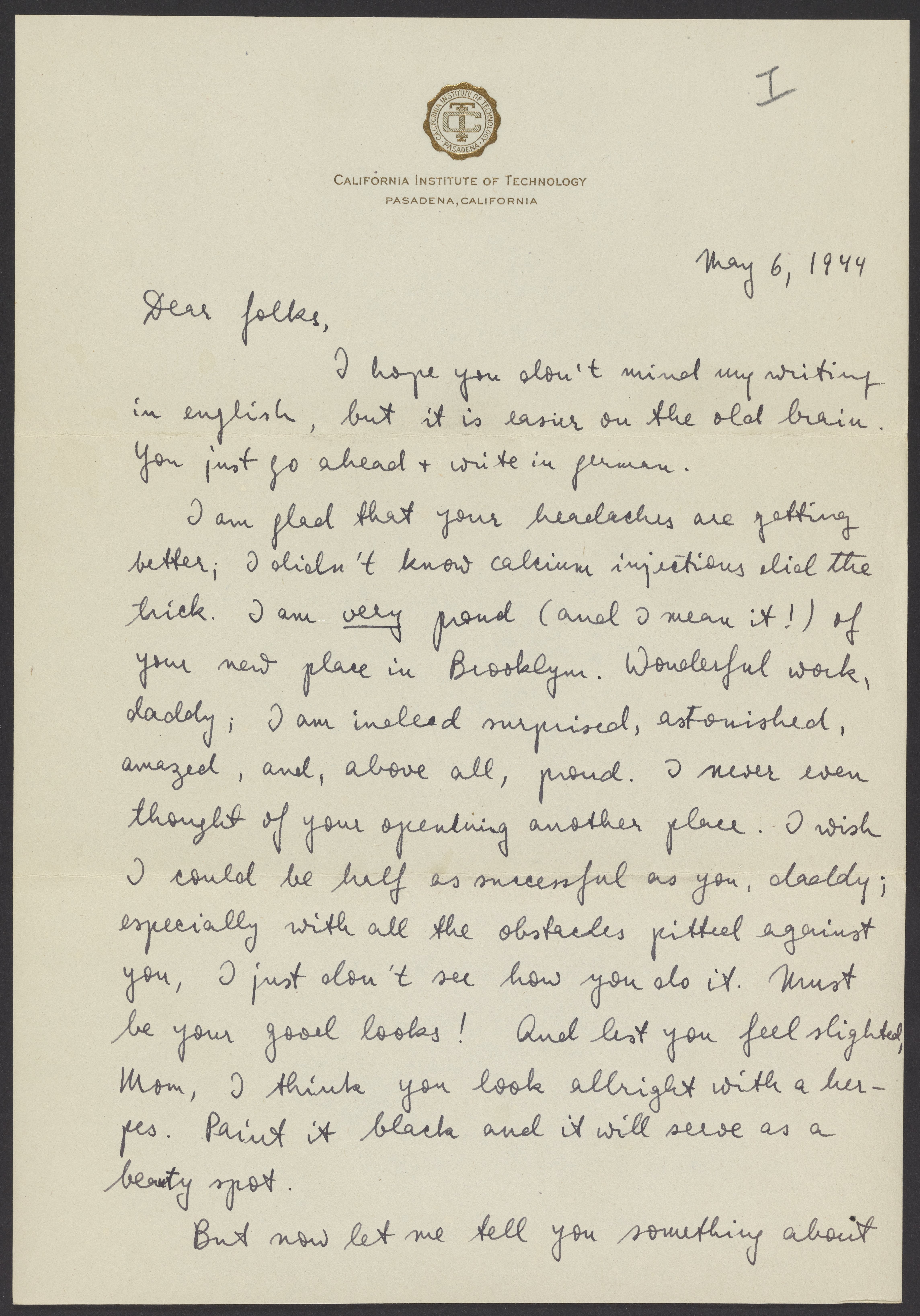 Small JPG1200 x 1717px — 277 KBLarge JPG2880 x 4121px — 1.7 MBFull-sized JPG4577 x 6549px — 4.3 MBOriginal fileTIFF — 4577 x 6549px — 85.8 MBLetter from Kurt M. Mislow (1923-2017) to his parents, Ida and Max. Mislow tells his father how proud he is of him, and then details a physical examination he had with other students from the California Institute of Technology.