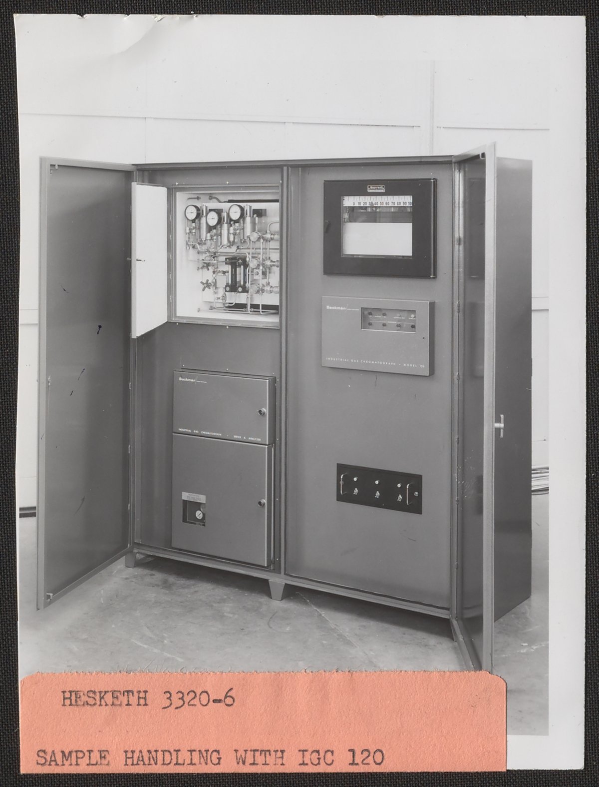 Hesketh, Dean D. “Beckman Model 120 Industrial Gas Chromatograph with Sample Handing and Series A Analyzer,” n.d. Beckman Historical Collection, Box 84. Science History Institute. Philadelphia. https://digital.sciencehistory.org/works/xd07gs881.