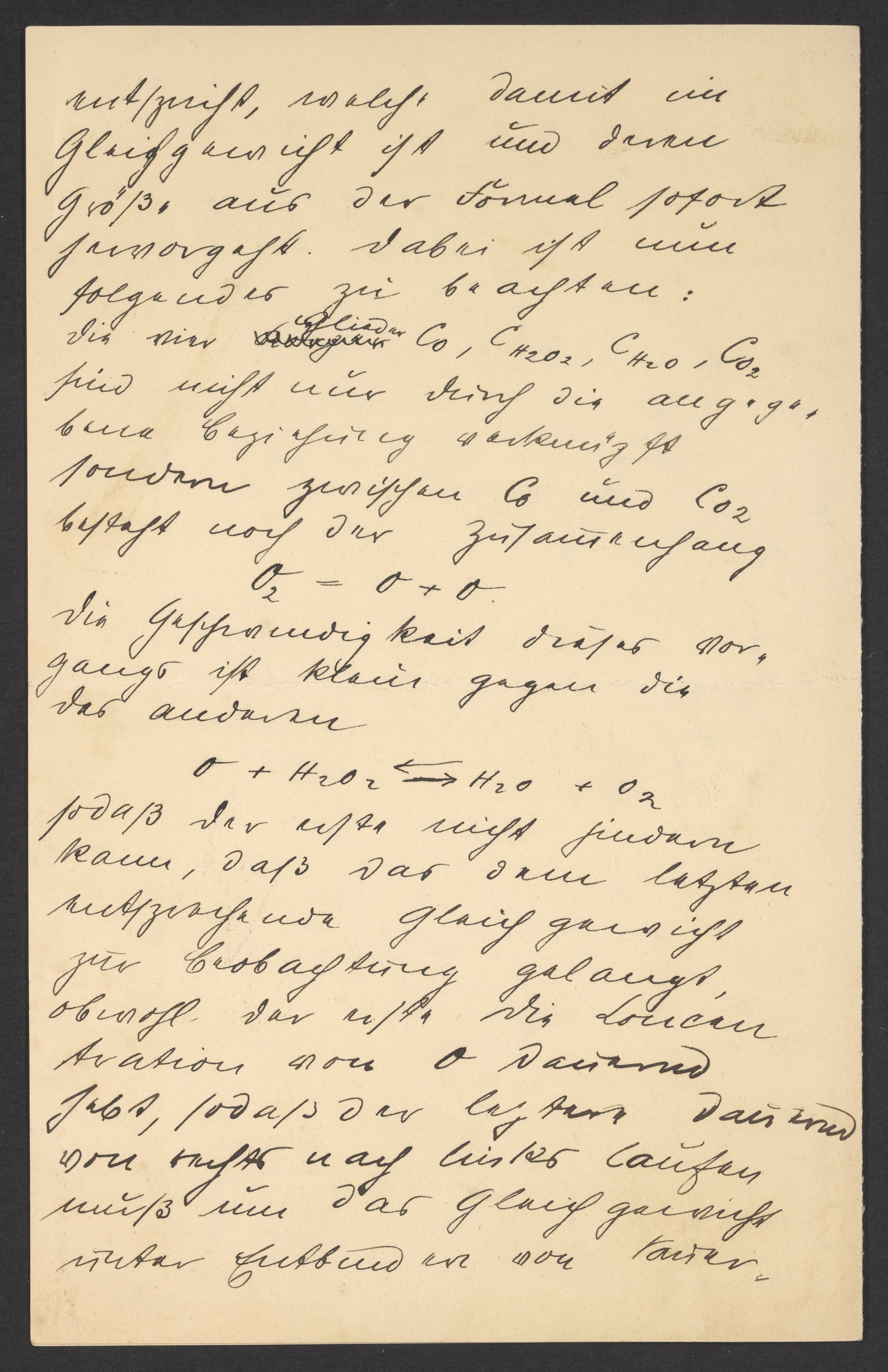 Small JPG1200 x 1851px — 315 KBLarge JPG2880 x 4443px — 1.5 MBFull-sized JPG2886 x 4452px — 1.5 MBOriginal fileTIFF — 2886 x 4452px — 36.8 MBFritz Haber (1868-1934), a German chemist and 1918 winner of the Nobel Prize for Chemistry, updates his colleague, Georg Bredig (1868-1944), on the current status of his chloride chemistry research, including an extensive discussion of Haber's recent experiments in the field. Haber inquires if Bredig knows how a "Melville" was able to transform potassium hypochlorite (KClO) into potassium chlorate (KClO3). Haber is attempting to understand "Foerster's" chlorate research and describes his issues with it to Bredig in depth.