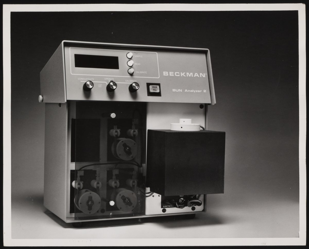 Roger Marshutz Photography. “Beckman BUN Analyzer 2,” 1979–1989. Beckman Historical Collection, Box 83. Science History Institute. Philadelphia. https://digital.sciencehistory.org/works/xg94hp65x.