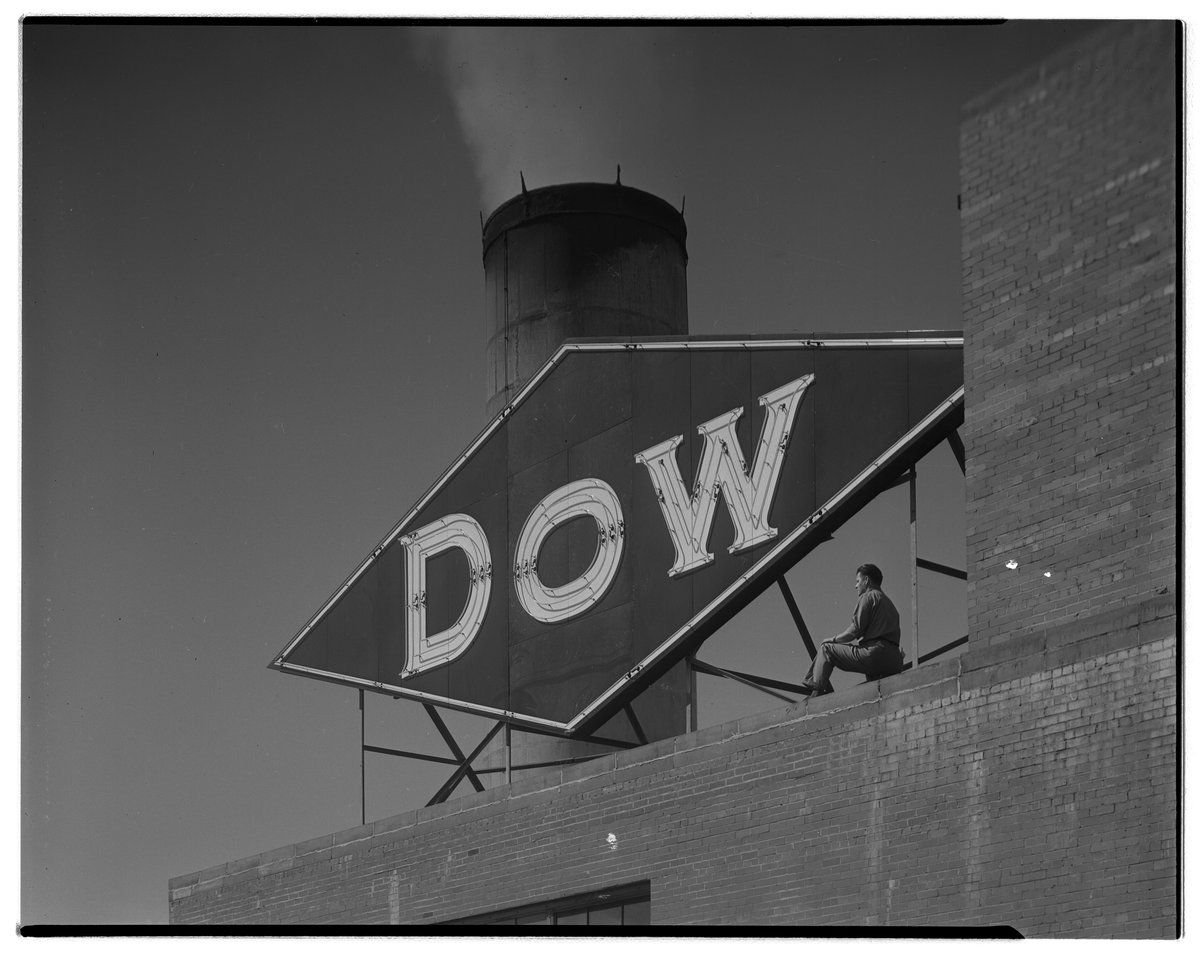 Dow Chemical Company. “Dow Chemical Company Sign at South Power Station,” September 12, 1950. Dow Chemical Company Historical Image Collection, Box 10, Folder Plants--Sign--Dow Chemical Company. Science History Institute. Philadelphia. https://digital.sciencehistory.org/works/xg94hq24w.