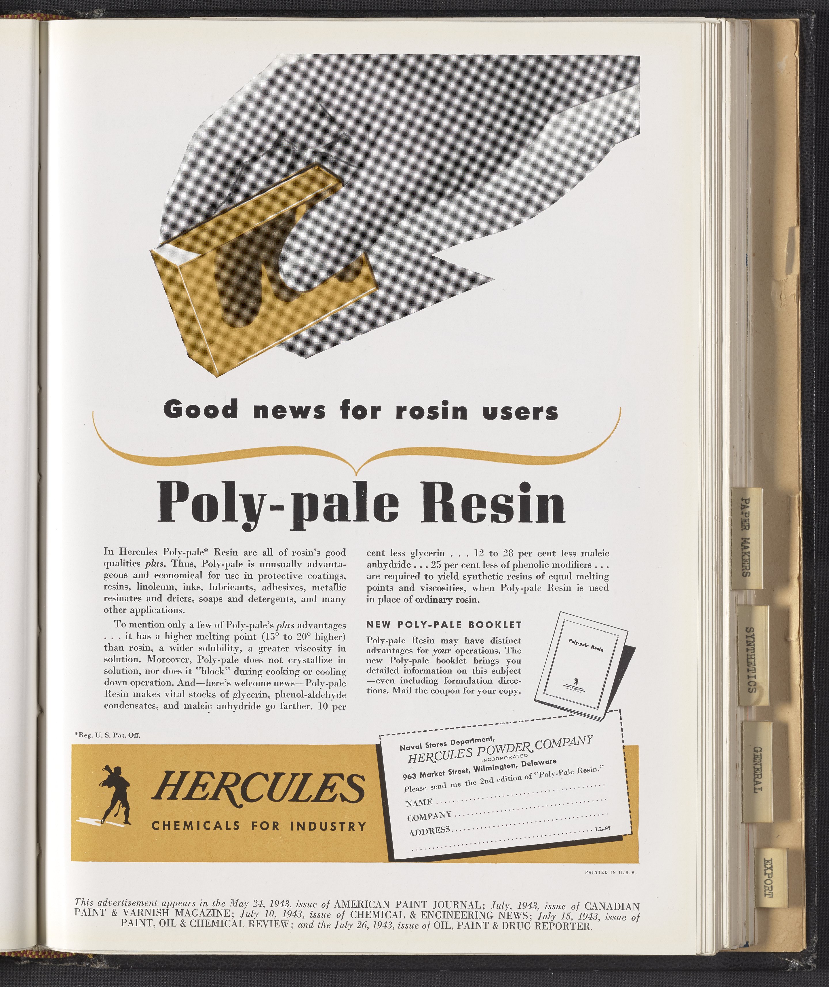 Advertisement for Hercules Poly-Pale Resin
