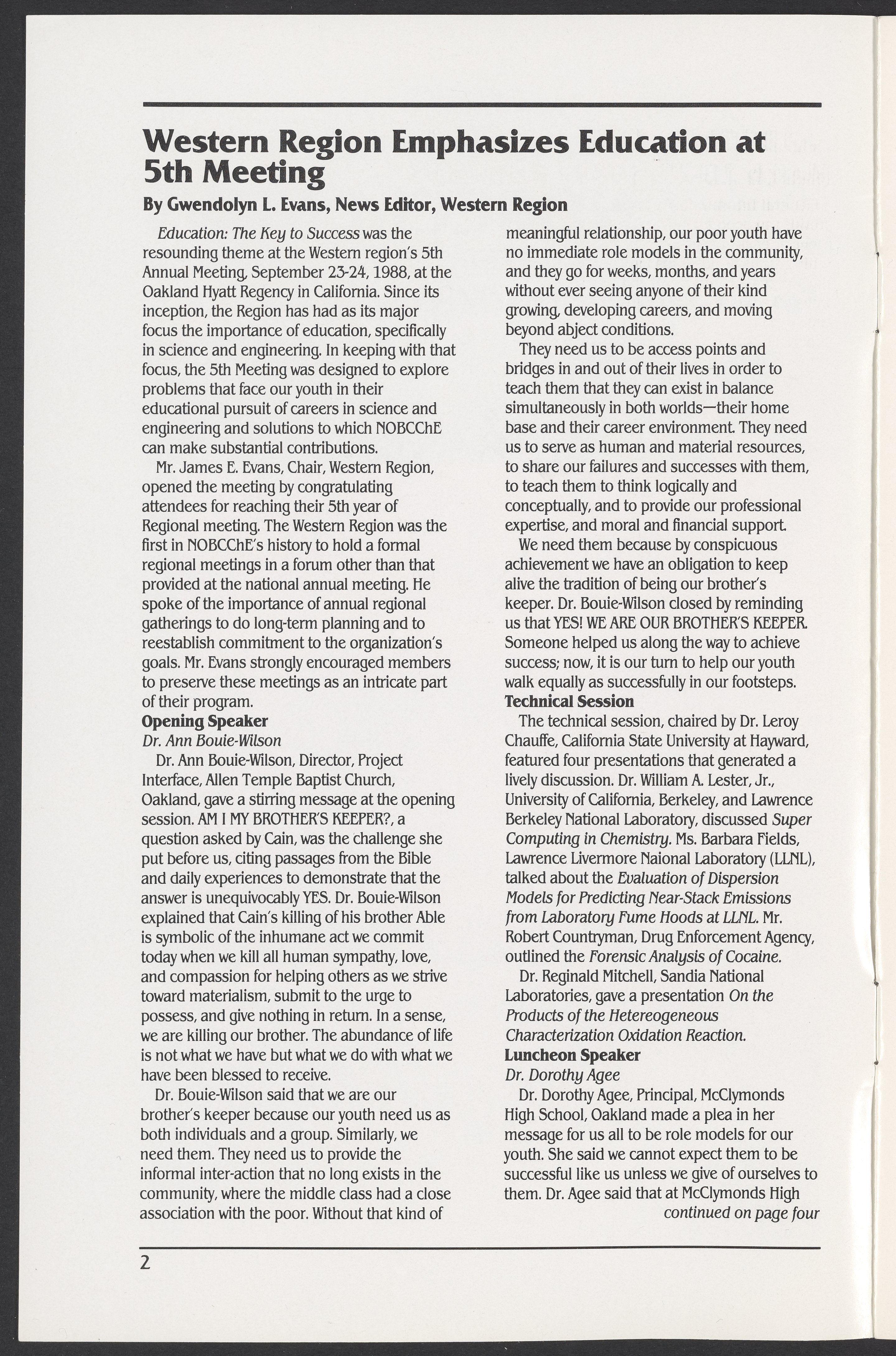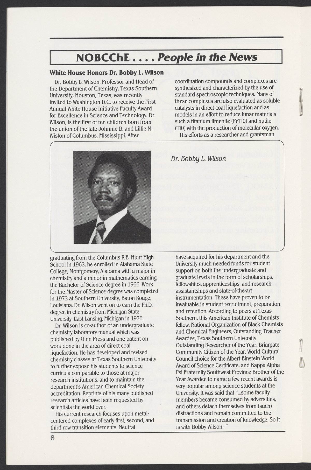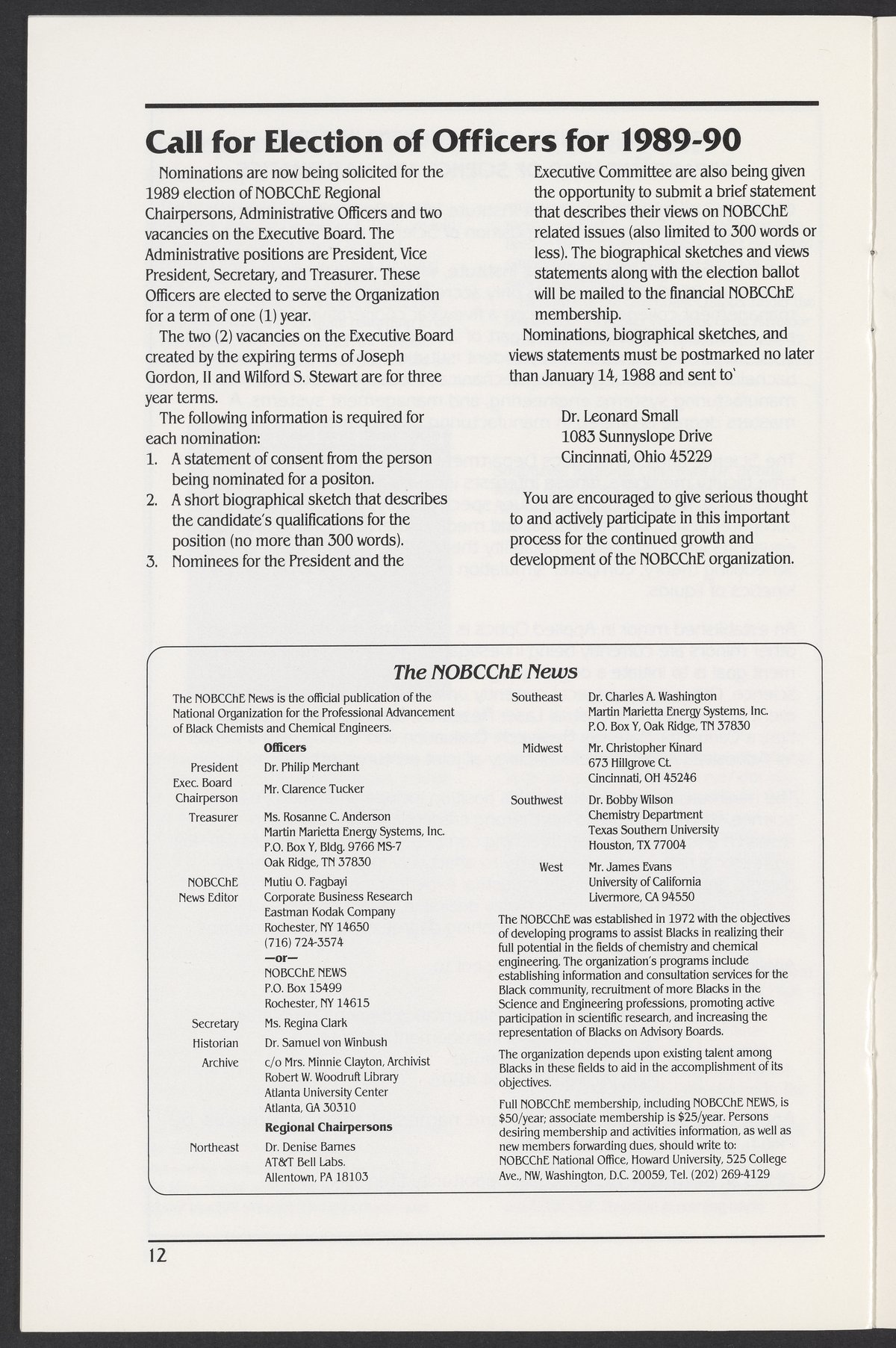 “NOBCChE News, Volume 10, Number 1.” Rochester, New York: National Organization for Black Chemists and Chemical Engineers, December 1988. William A. Lester, Jr. Papers, Box 46, Folder 23. Science History Institute. Philadelphia. https://digital.sciencehistory.org/works/xoa19mw.