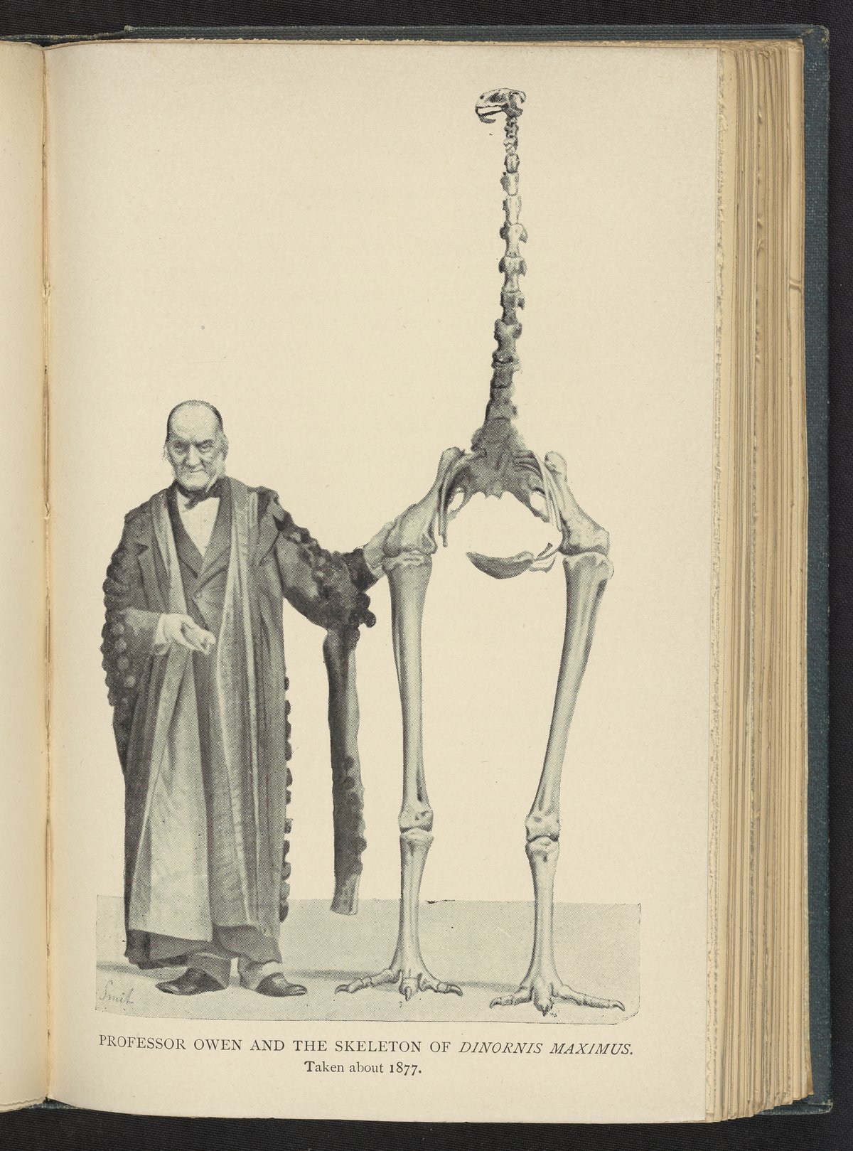 Portrait of Richard Owen with skeleton of the giant moa