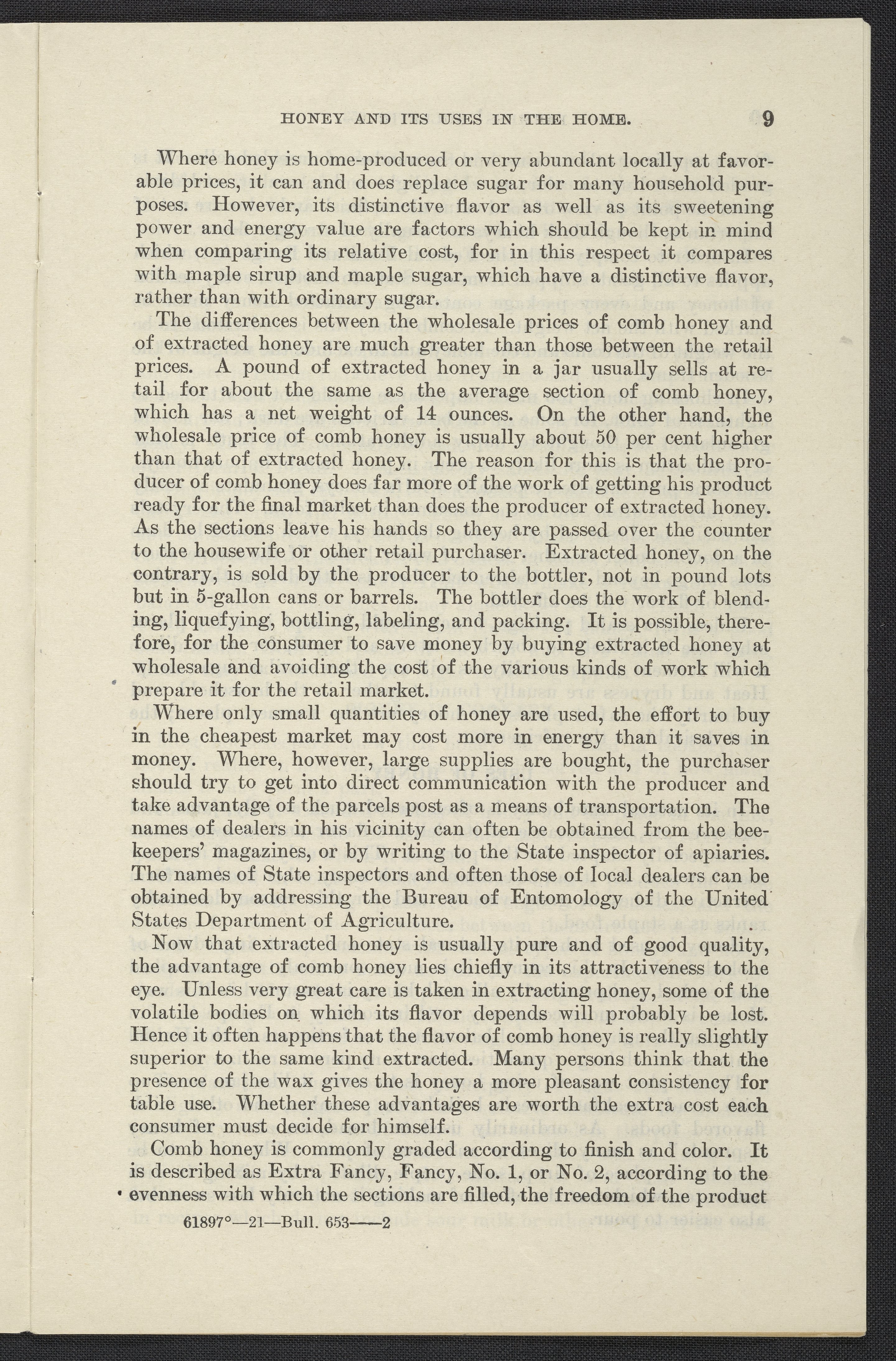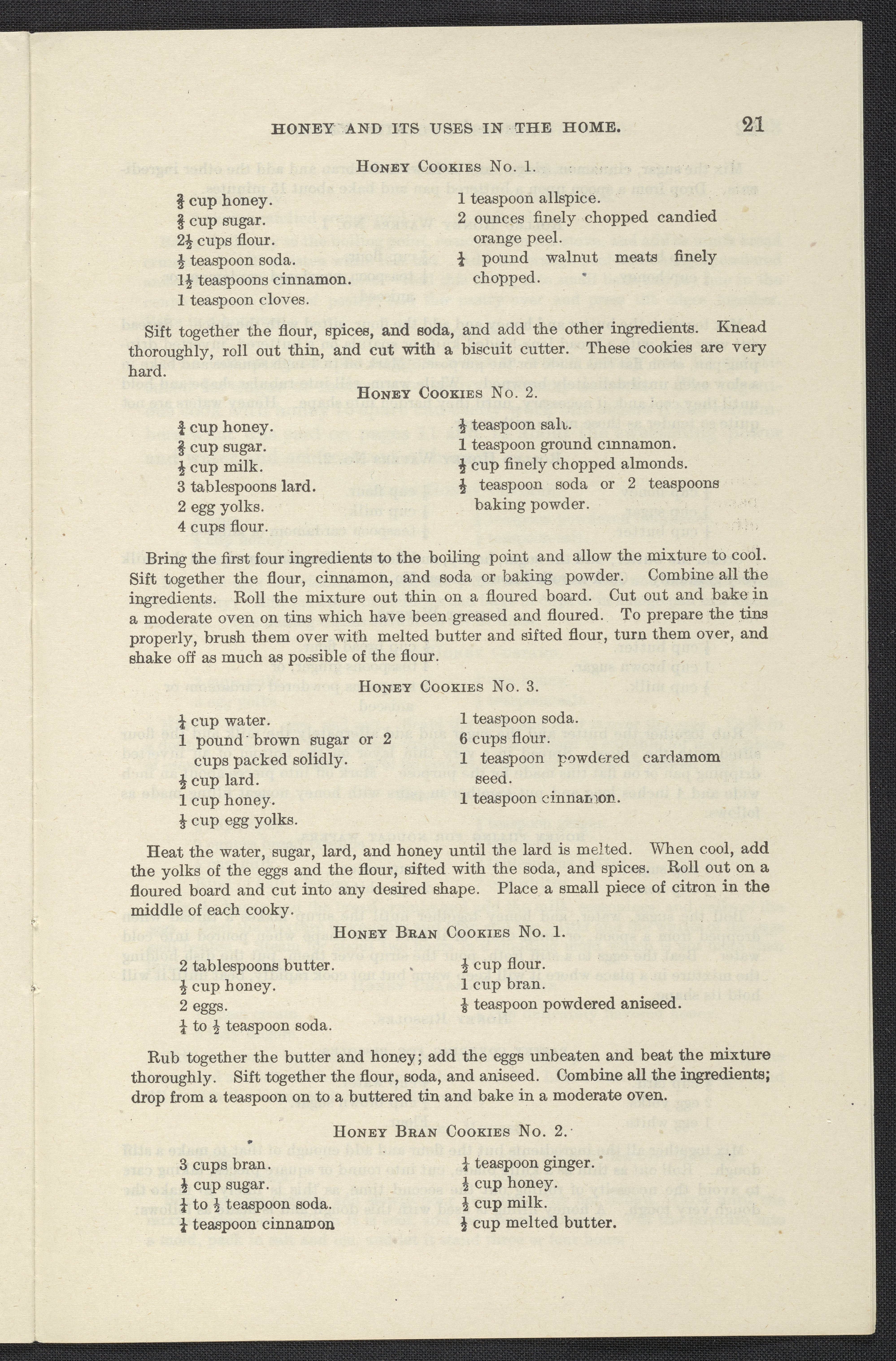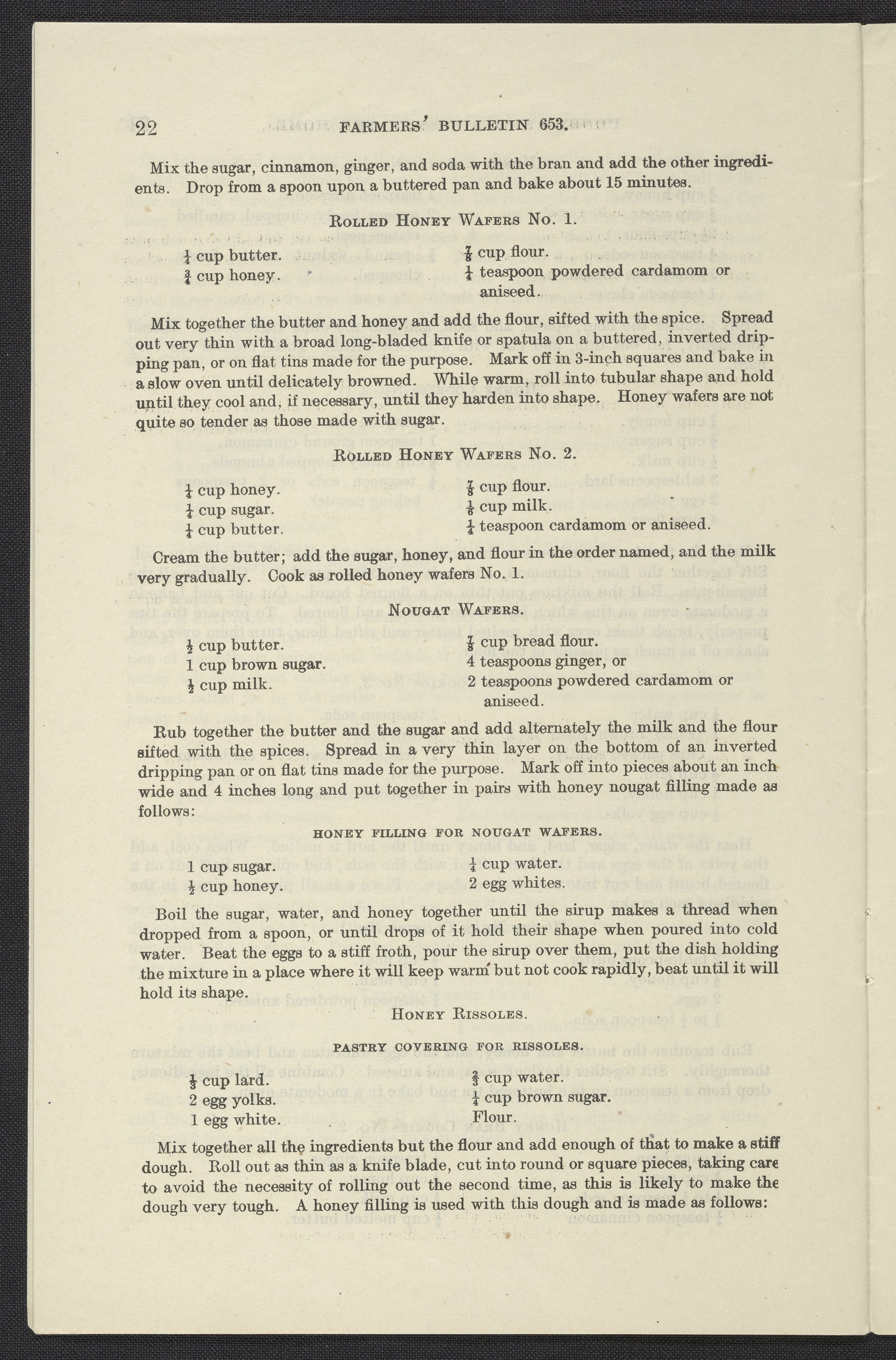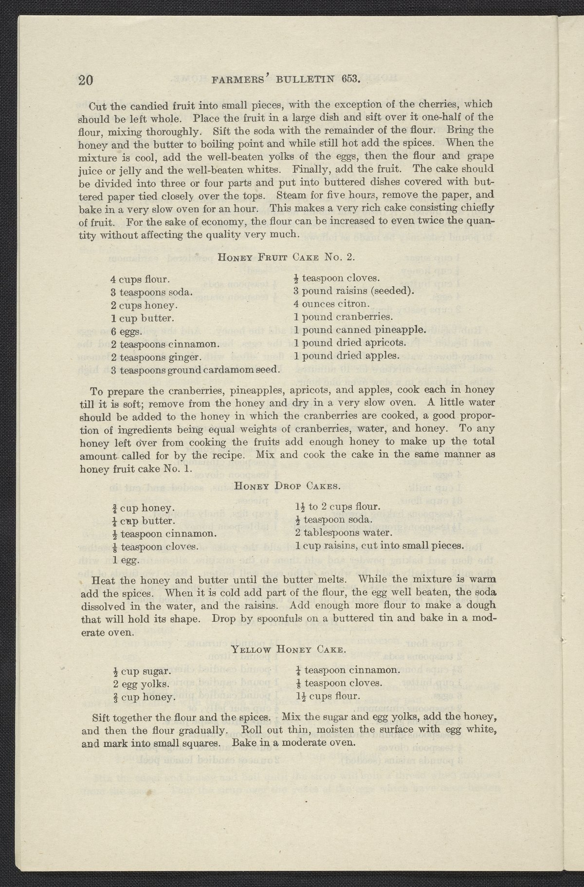 Small JPG1200 x 1853px — 376 KBLarge JPG2880 x 4447px — 2.4 MBFull-sized JPG3874 x 5982px — 4.1 MBOriginal fileTIFF — 3874 x 5982px — 66.4 MBInformational pamphlet on honey includes a description of how honey is produced, its value as a food, the flavor of honey, its health benefits, its economy, household uses, and how it can be used in cooking. Contains recipes for bread, muffins, cakes, cookies, desserts, preserved fruits, icing, sauces and candies.