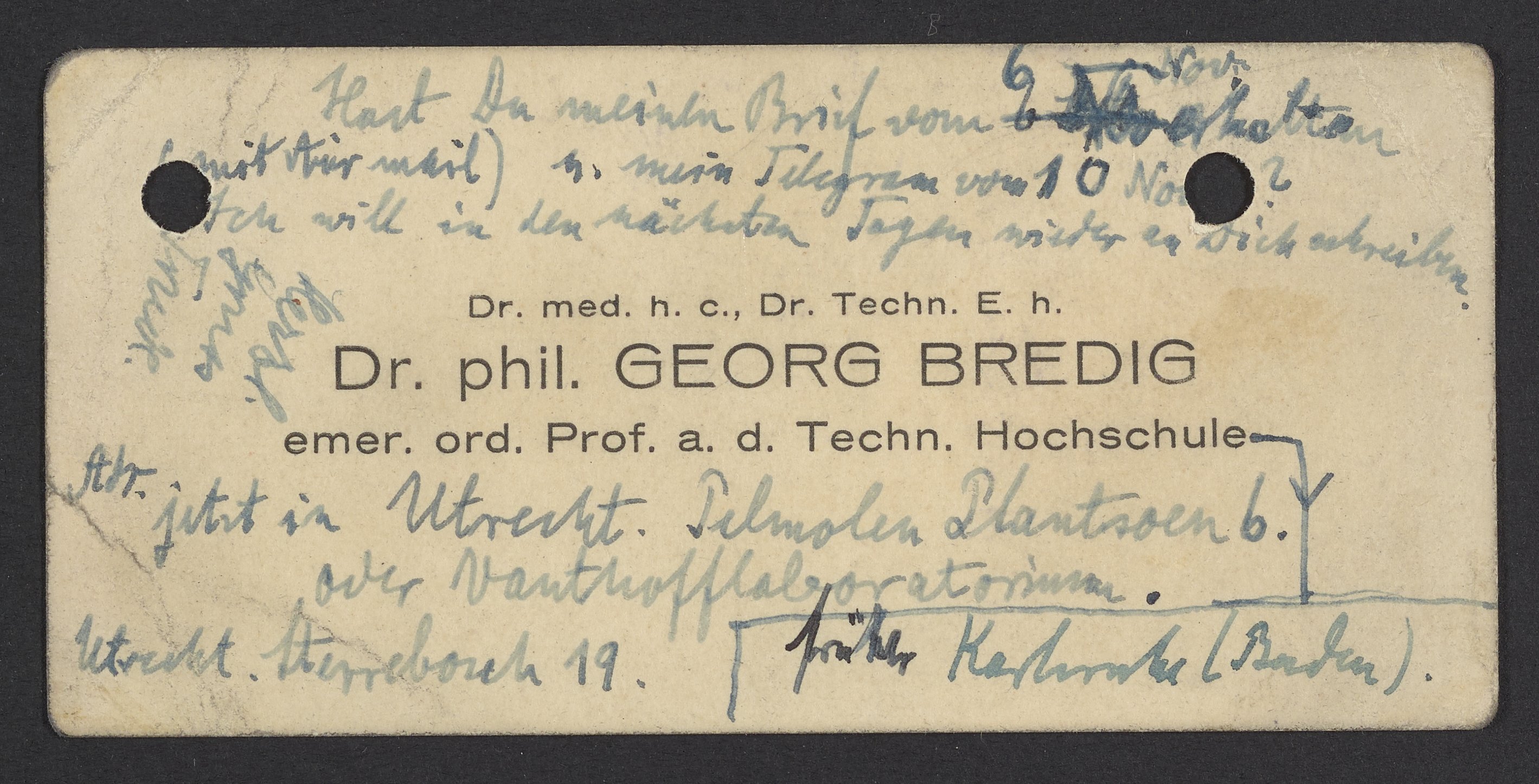 Bredig, Georg. “Note from Georg Bredig to Max Bredig, November 1939,” 1930–1939. Papers of Georg and Max Bredig, Box 7, Folder 15. Science History Institute. Philadelphia. https://digital.sciencehistory.org/works/yasty4z.