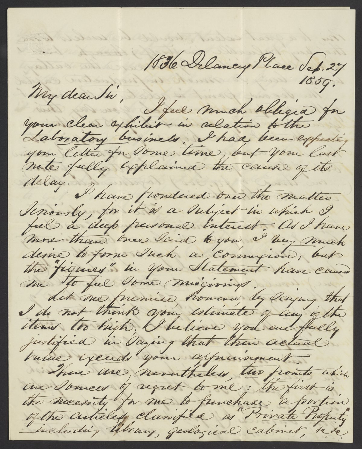 Small JPG1200 x 1486px — 339 KBLarge JPG2880 x 3567px — 1.2 MBFull-sized JPG3272 x 4052px — 1.4 MBOriginal fileTIFF — 3272 x 4052px — 38.0 MBA follow-up to his letter of August 29 concerning negotiations to acquire a partnership share in James Curtis Booth's (1810-1888) laboratory.