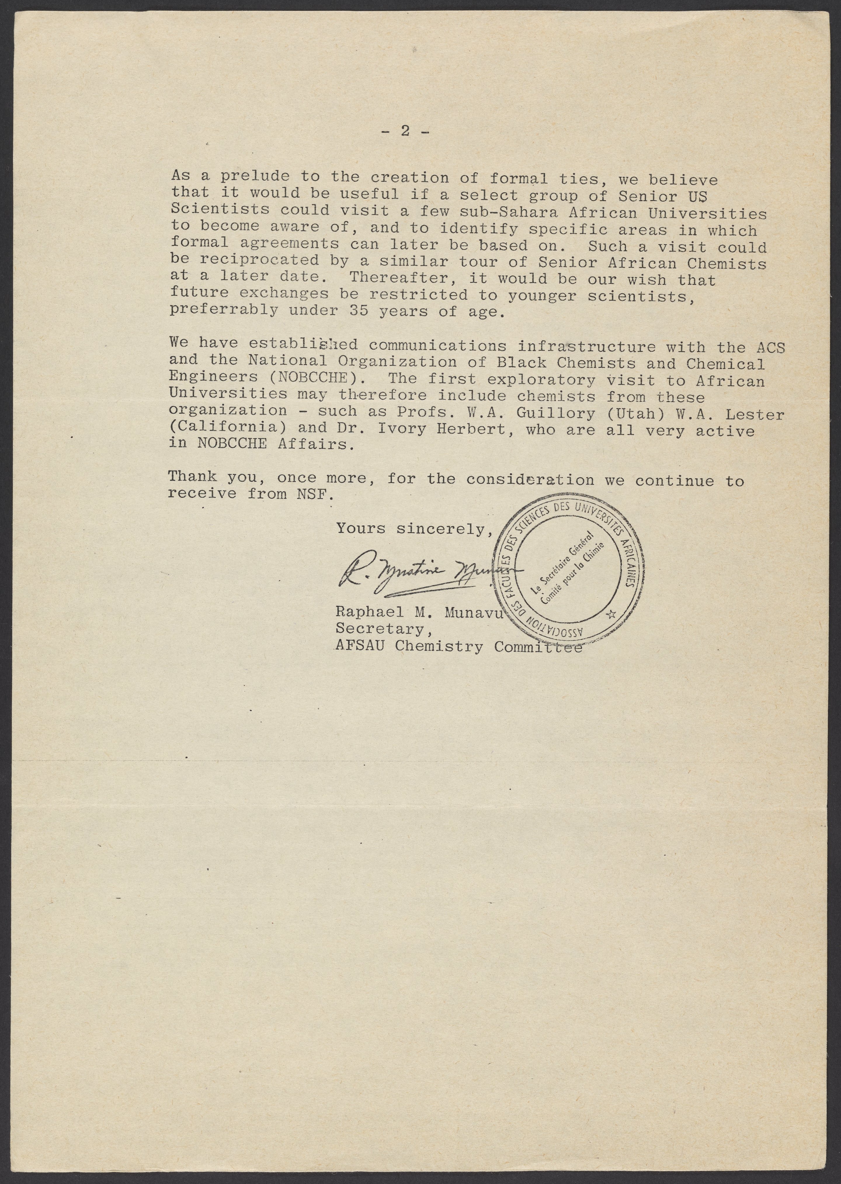 Letter from Raphael M. Munavu to Edward A. Knapp, October 4, 1983