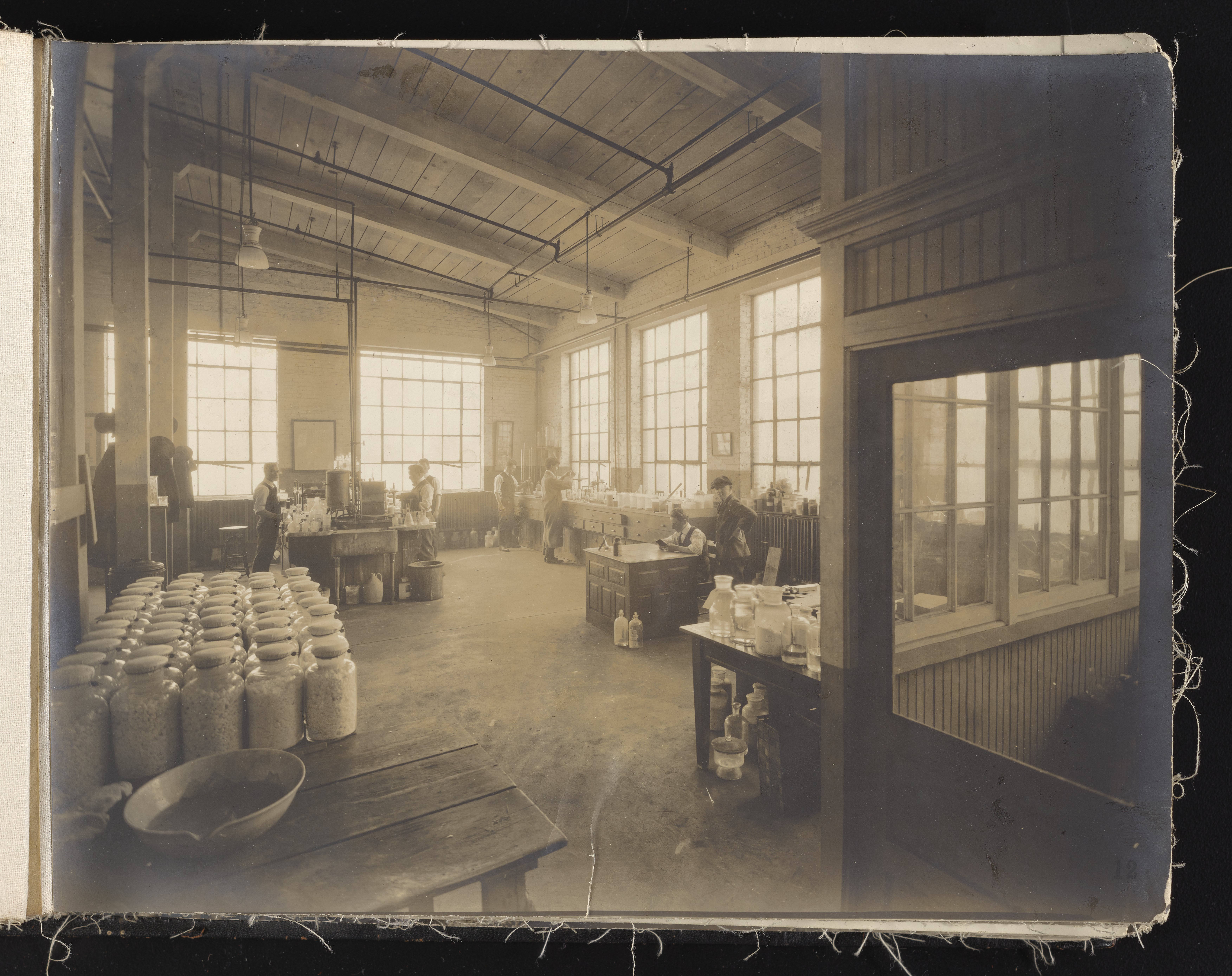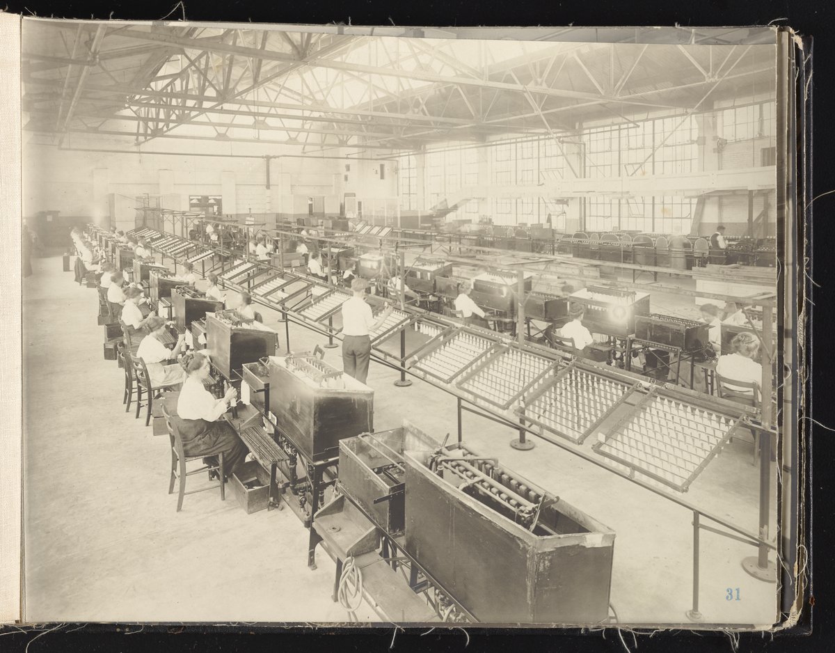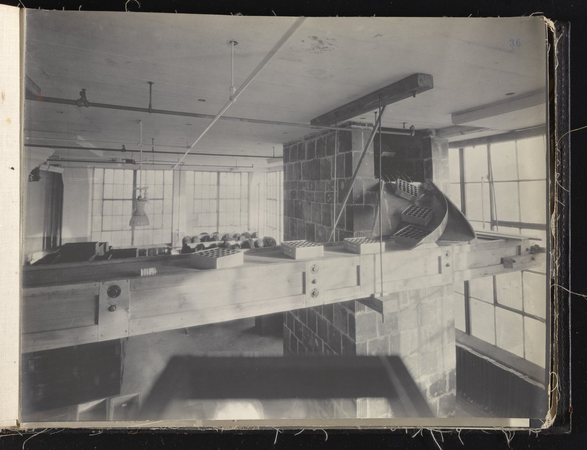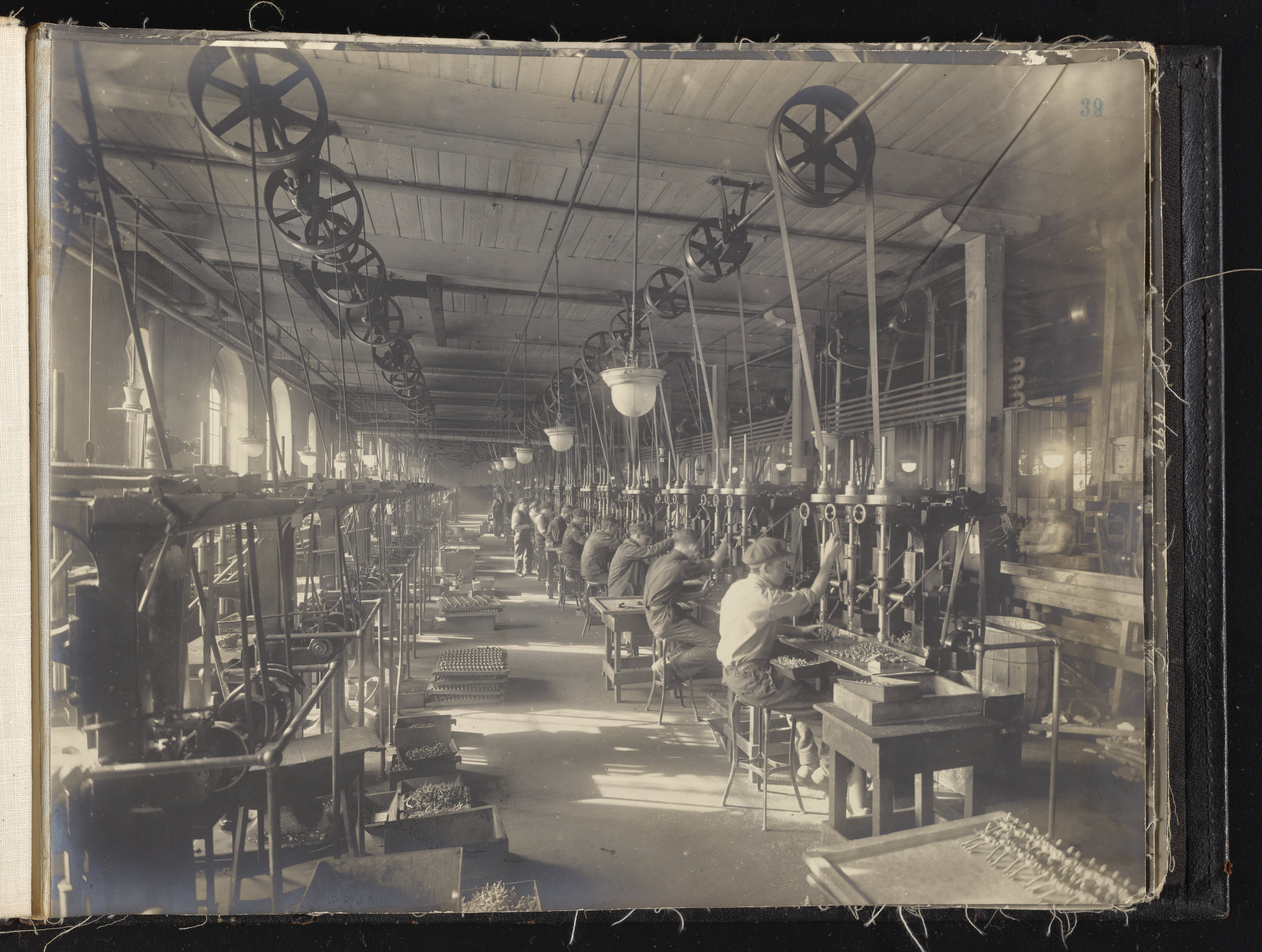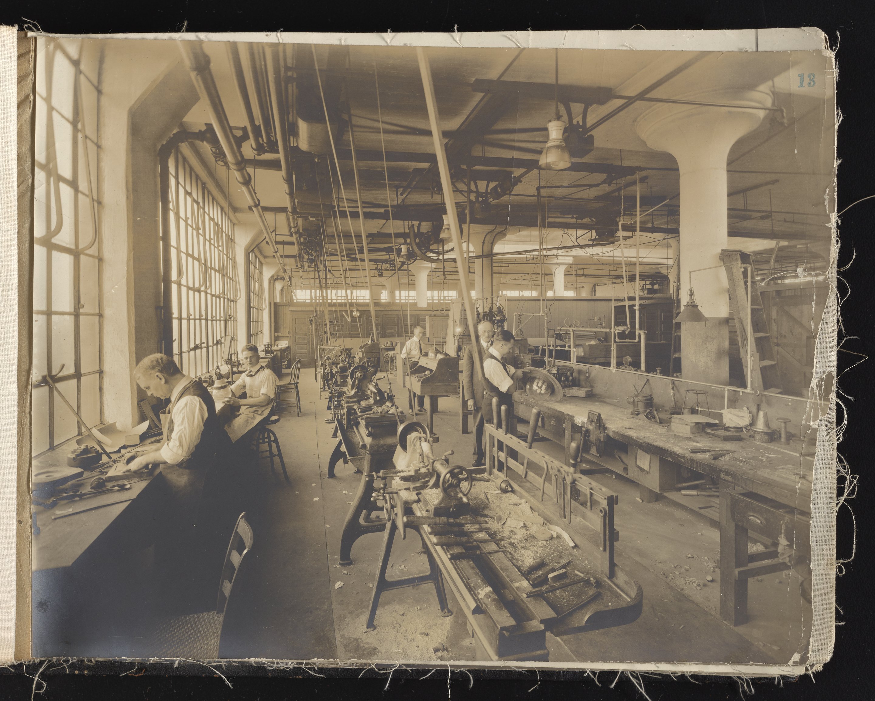Small JPG1200 x 613px — 132 KBLarge JPG2880 x 1472px — 692 KBFull-sized JPG6930 x 3541px — 3.3 MBOriginal fileTIFF — 6930 x 3541px — 70.3 MBAlbum containing 52 black and white photographs documenting various aspects of the production process at the Welsbach Gas Light Company site located along the Delaware River in Gloucester City, New Jersey. From 1888 to 1940, the Welsbach Gas Light Company held exclusive manufacturing and sales rights to the Welsbach gas mantle, a device made of fibers impregnated with oxides of thorium and cerium that produced bright white light when heated with a gas flame. Invented in 1880's by Austrian scientist Carl Auer Von Welsbach (1858-1929), these gas mantles were used extensively in street lighting and in gas-powered appliances. The Welsbach gas mantle also was the first industrial product to make use of rare earth elements. At peak production, the Welsbach factory employed 2,000 people, including a large number of women skilled at the sewing and other precision handwork involved in the manufacturing process. The album, digitized here in its entirety, provides a valuable visual record of all aspects of the production process, showing a wide range of machinery, and male and female employees working at various tasks including chemical production, machining metal parts, sewing, assembly, testing, packaging, and shipping.
