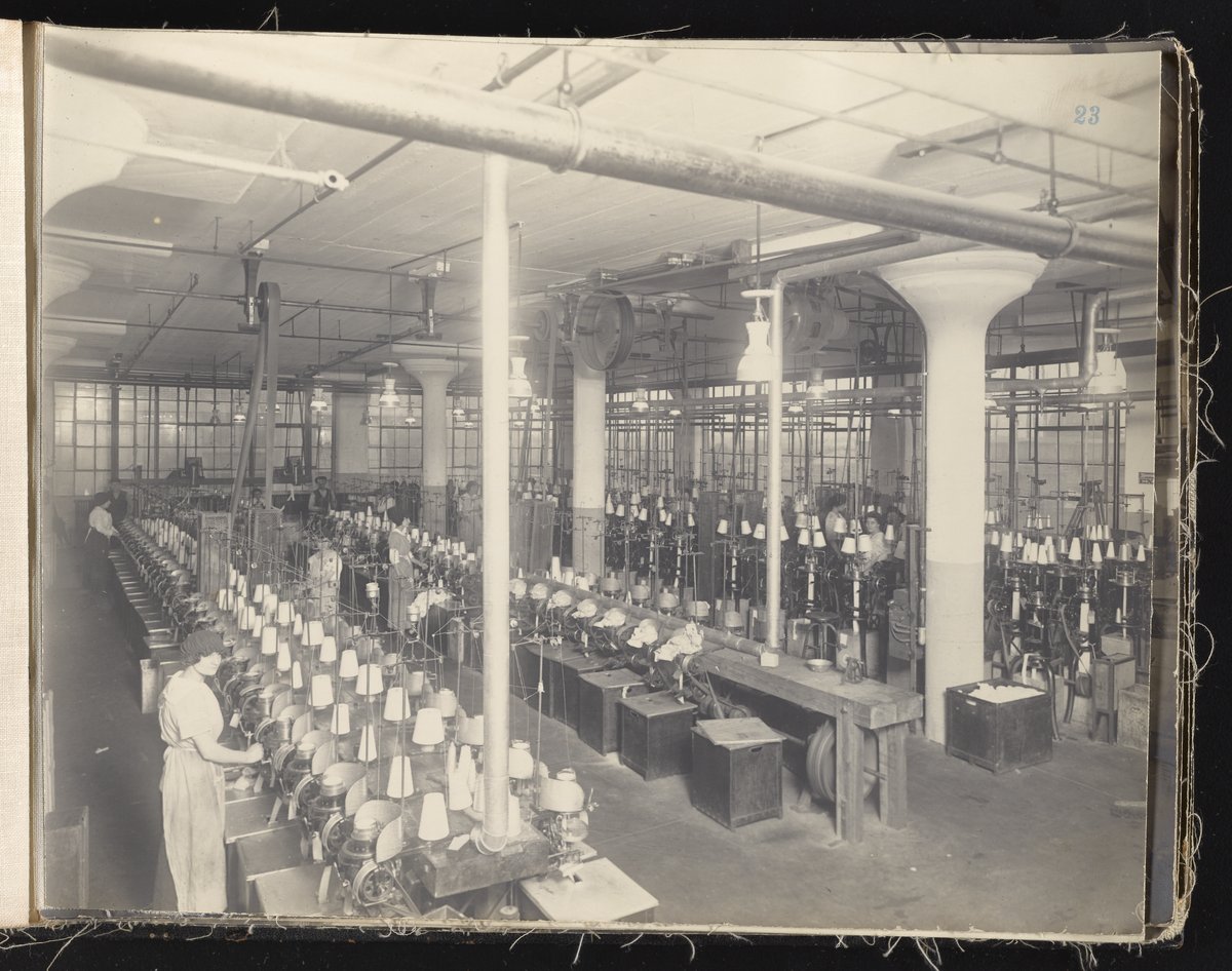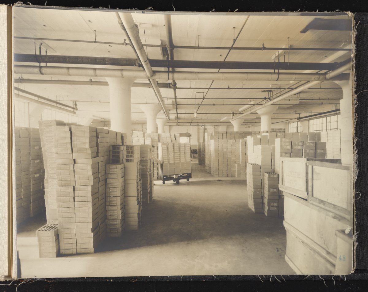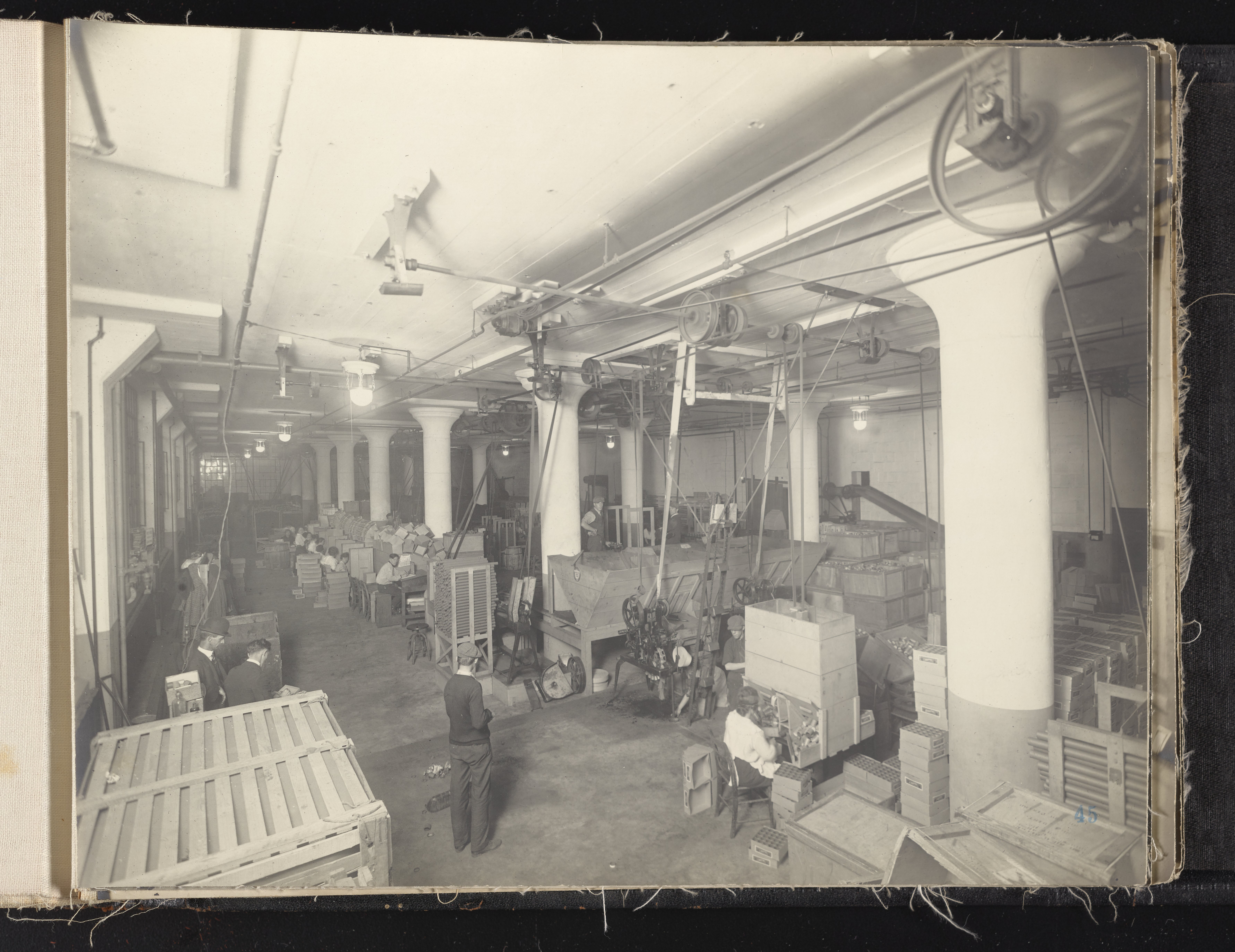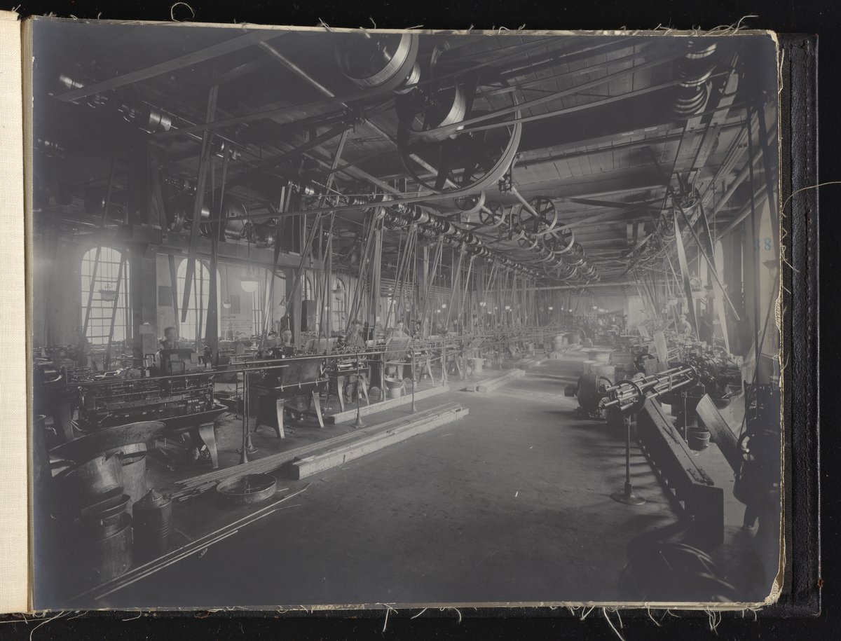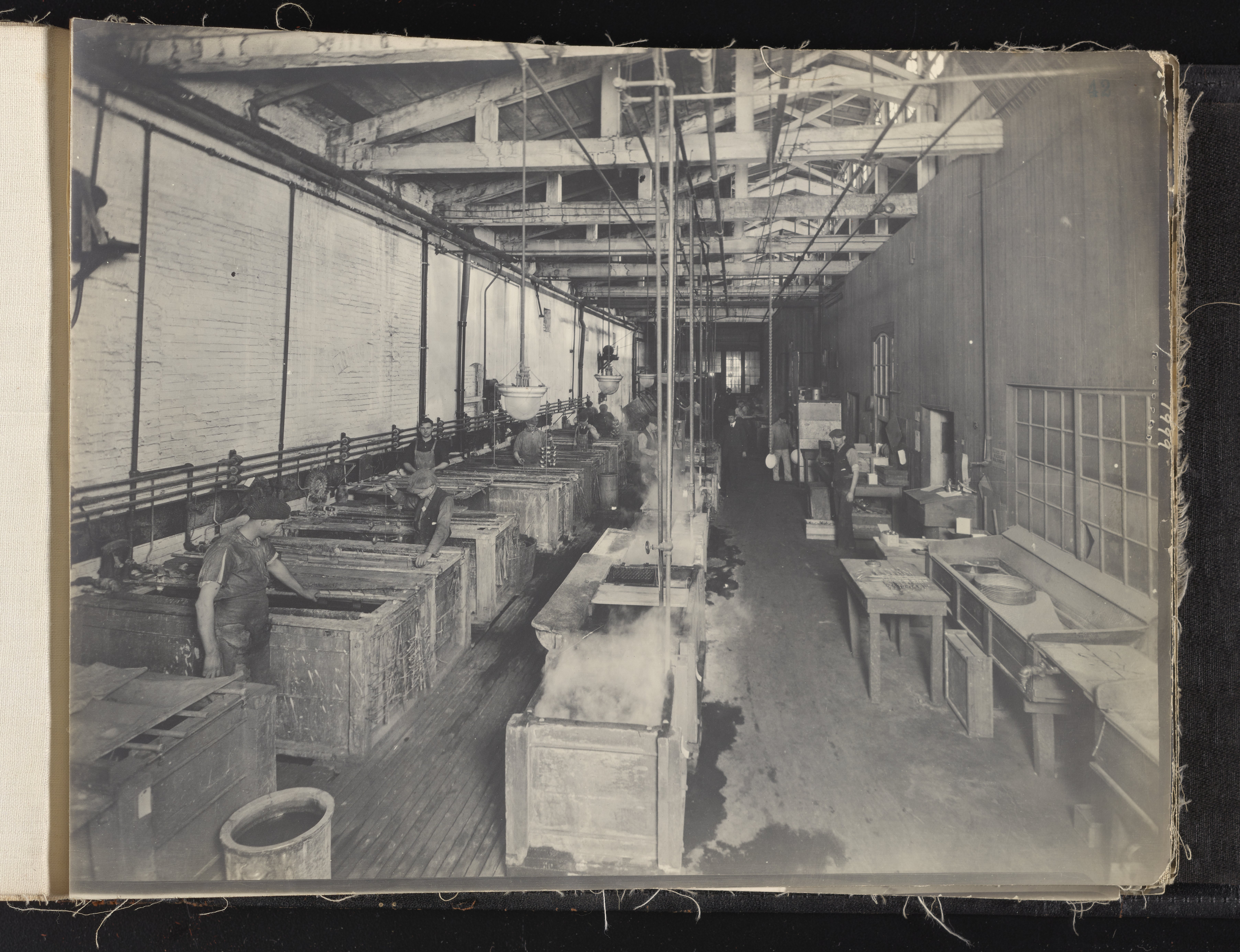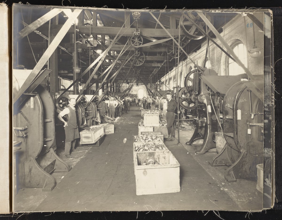 Small JPG1200 x 613px — 132 KBLarge JPG2880 x 1472px — 692 KBFull-sized JPG6930 x 3541px — 3.3 MBOriginal fileTIFF — 6930 x 3541px — 70.3 MBAlbum containing 52 black and white photographs documenting various aspects of the production process at the Welsbach Gas Light Company site located along the Delaware River in Gloucester City, New Jersey. From 1888 to 1940, the Welsbach Gas Light Company held exclusive manufacturing and sales rights to the Welsbach gas mantle, a device made of fibers impregnated with oxides of thorium and cerium that produced bright white light when heated with a gas flame. Invented in 1880's by Austrian scientist Carl Auer Von Welsbach (1858-1929), these gas mantles were used extensively in street lighting and in gas-powered appliances. The Welsbach gas mantle also was the first industrial product to make use of rare earth elements. At peak production, the Welsbach factory employed 2,000 people, including a large number of women skilled at the sewing and other precision handwork involved in the manufacturing process. The album, digitized here in its entirety, provides a valuable visual record of all aspects of the production process, showing a wide range of machinery, and male and female employees working at various tasks including chemical production, machining metal parts, sewing, assembly, testing, packaging, and shipping.