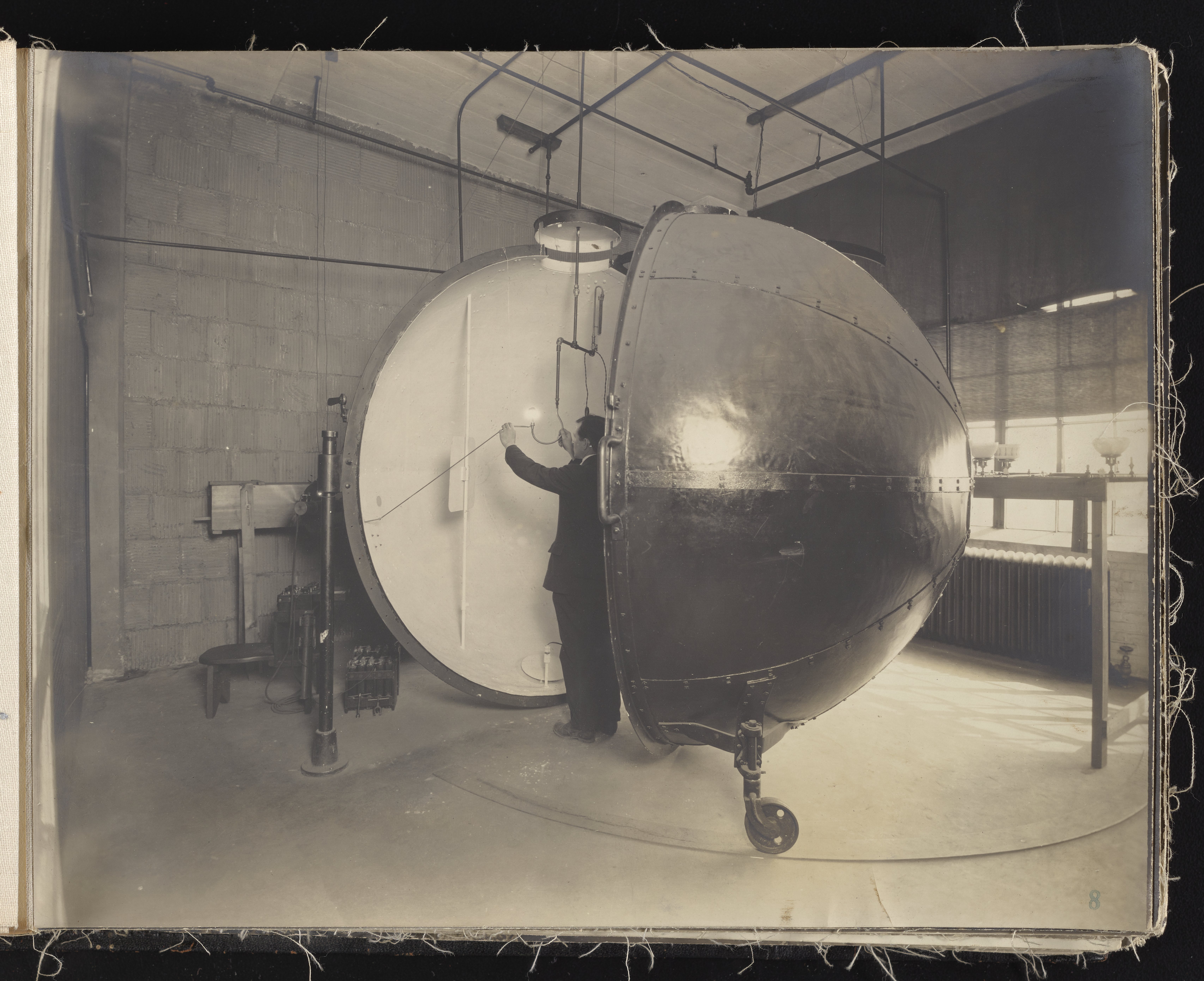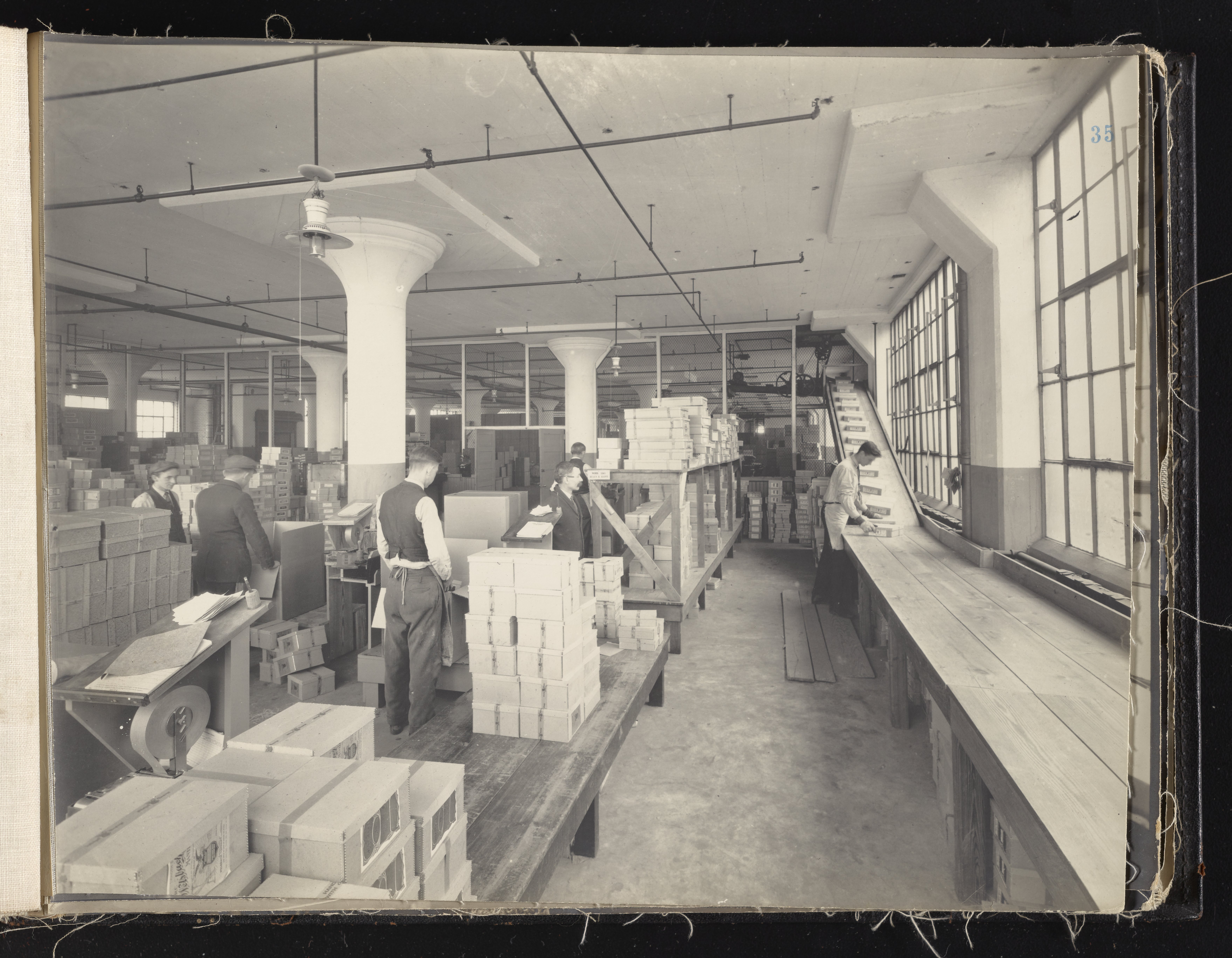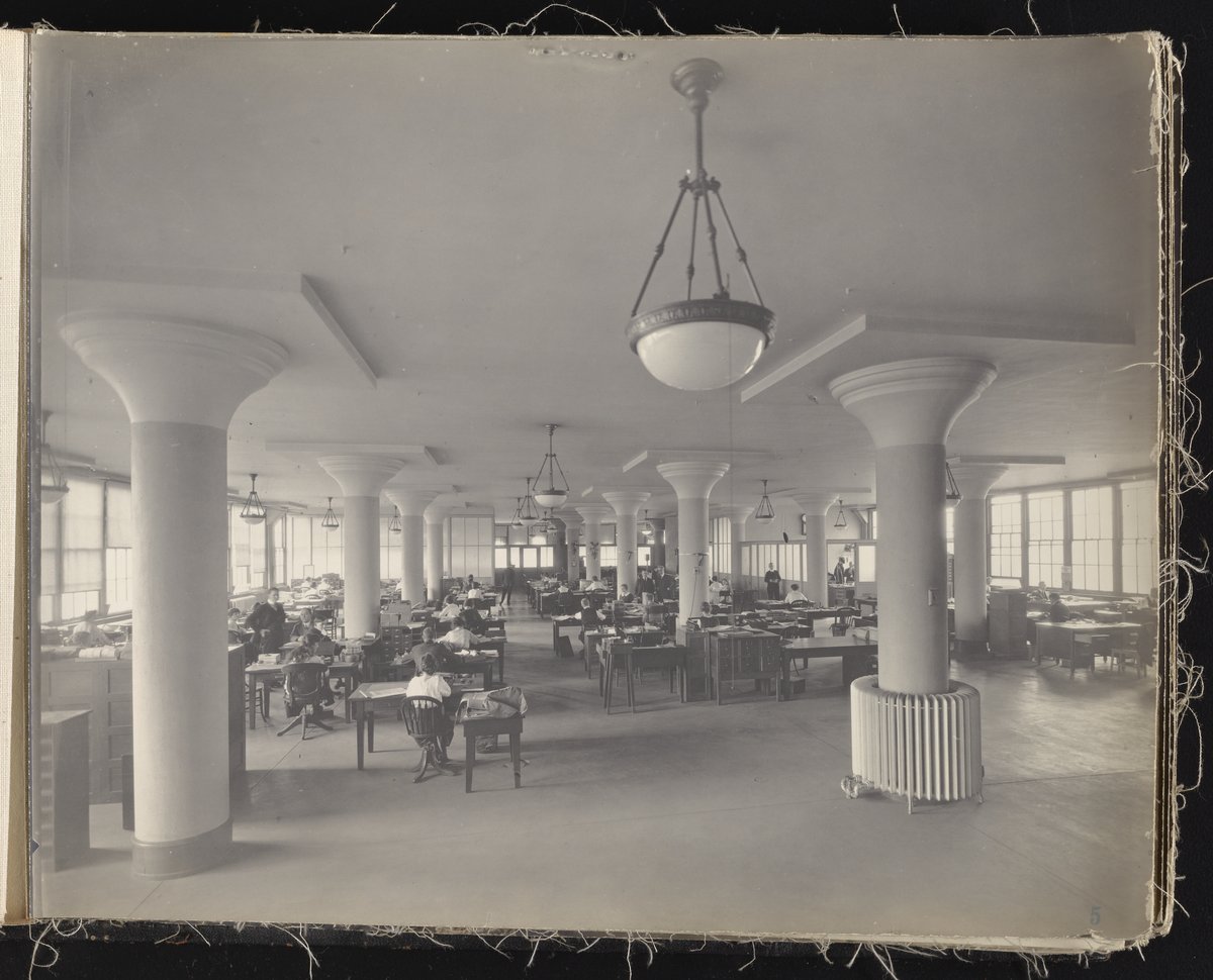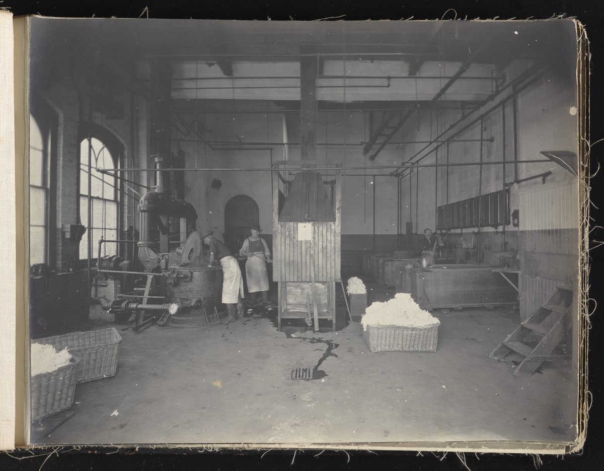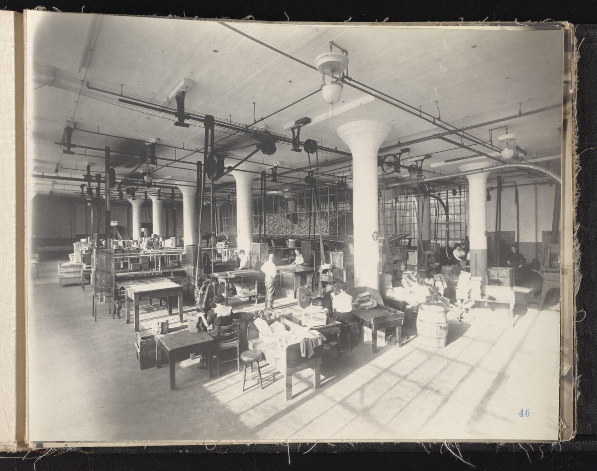 Small JPG1200 x 613px — 132 KBLarge JPG2880 x 1472px — 692 KBFull-sized JPG6930 x 3541px — 3.3 MBOriginal fileTIFF — 6930 x 3541px — 70.3 MBAlbum containing 52 black and white photographs documenting various aspects of the production process at the Welsbach Gas Light Company site located along the Delaware River in Gloucester City, New Jersey. From 1888 to 1940, the Welsbach Gas Light Company held exclusive manufacturing and sales rights to the Welsbach gas mantle, a device made of fibers impregnated with oxides of thorium and cerium that produced bright white light when heated with a gas flame. Invented in 1880's by Austrian scientist Carl Auer Von Welsbach (1858-1929), these gas mantles were used extensively in street lighting and in gas-powered appliances. The Welsbach gas mantle also was the first industrial product to make use of rare earth elements. At peak production, the Welsbach factory employed 2,000 people, including a large number of women skilled at the sewing and other precision handwork involved in the manufacturing process. The album, digitized here in its entirety, provides a valuable visual record of all aspects of the production process, showing a wide range of machinery, and male and female employees working at various tasks including chemical production, machining metal parts, sewing, assembly, testing, packaging, and shipping.