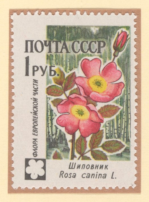 Dog Rose (Rosa canina) postage stamp, Soviet Union