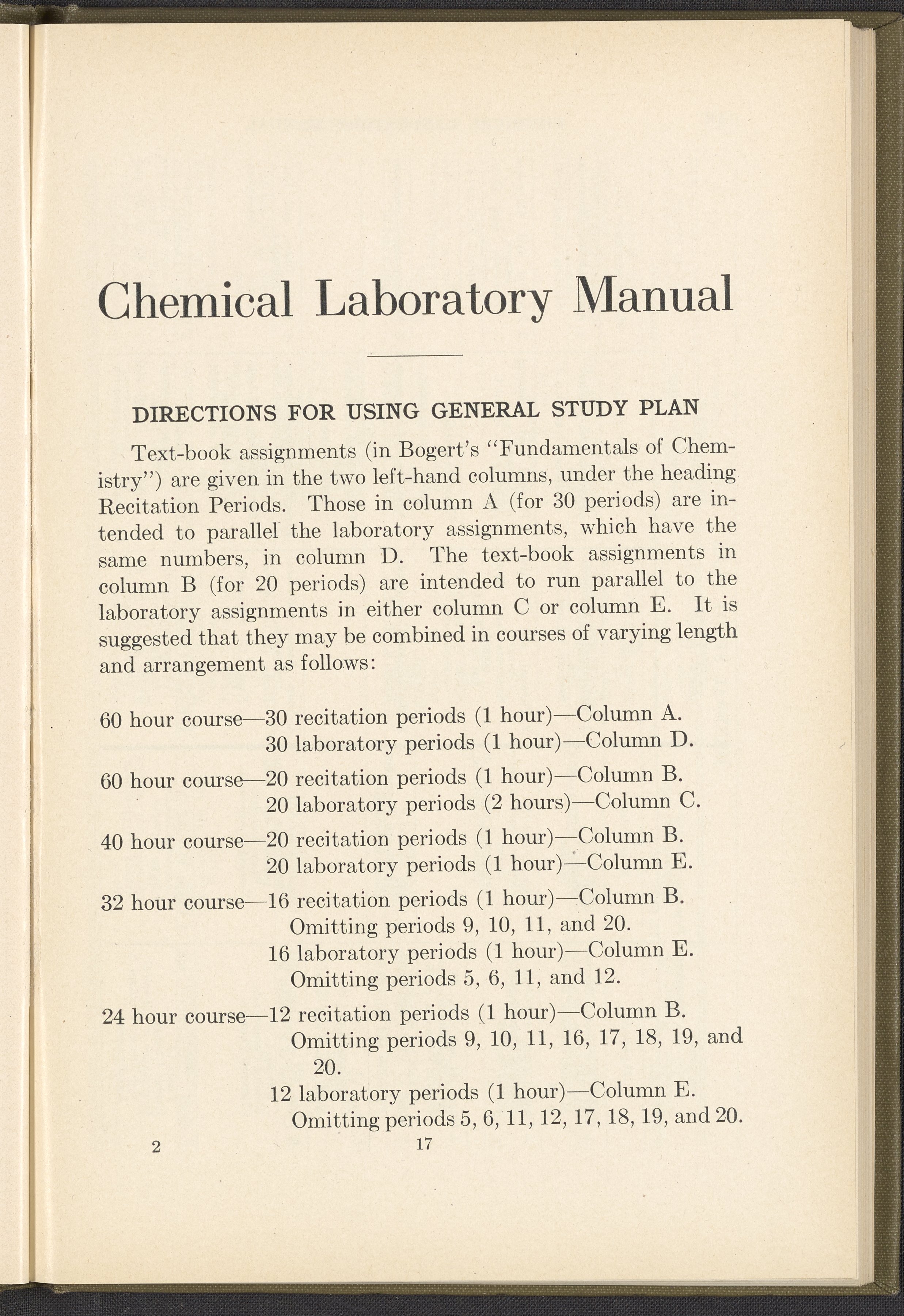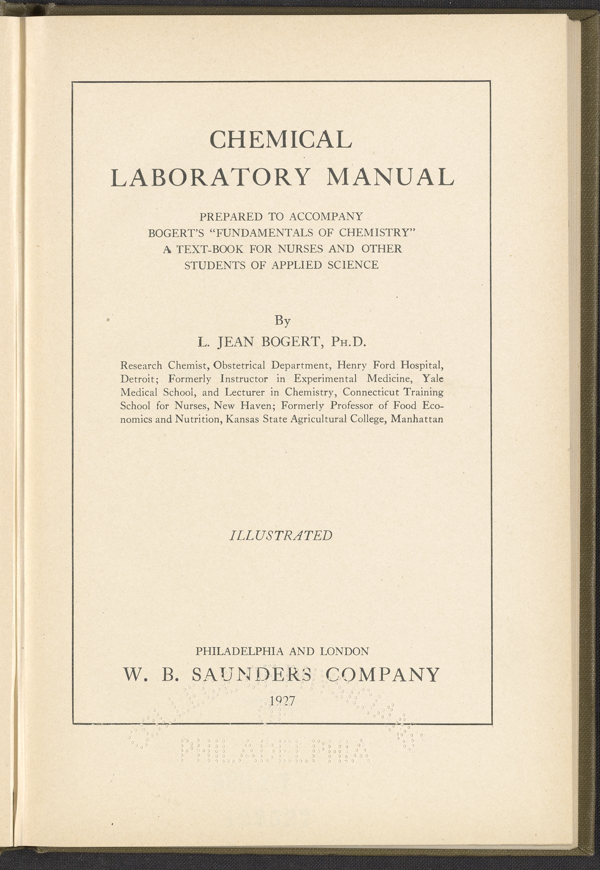 Bogert, L. Jean (Lotta Jean). “Chemical Laboratory Manual, Prepared to Accompany Bogert's ‘Fundamentals of Chemistry.’” Philadelphia, Pennsylvania: W.B. Saunders Company, 1927. QD45 .B64 1927. Science History Institute. Philadelphia. https://digital.sciencehistory.org/works/zaszgqe.