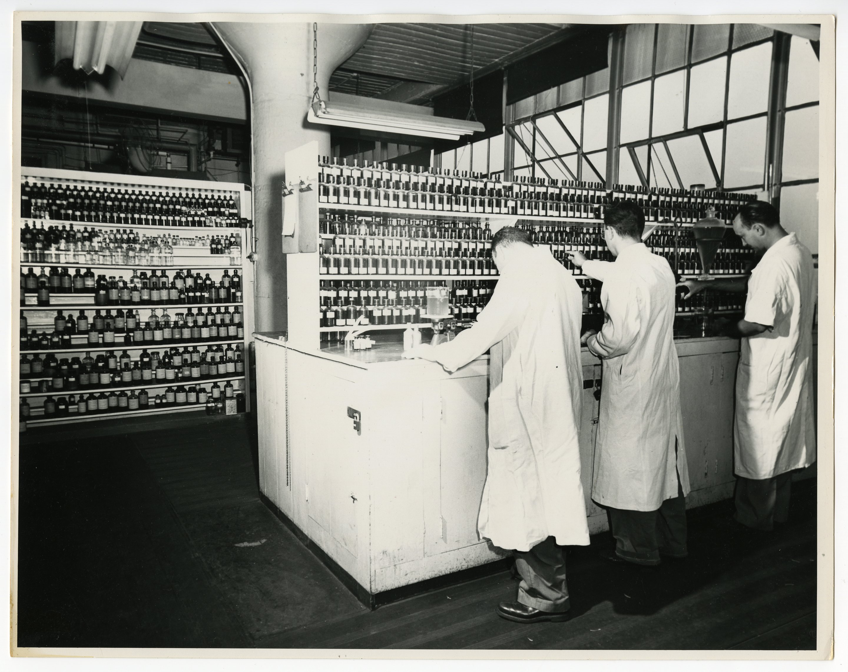 Norda Essential Oil and Chemical Company. “Perfume Research Team,” 1950–1959. Norda Essential Oil and Chemical Company Photograph Collection, Box 1. Science History Institute. Philadelphia. https://digital.sciencehistory.org/works/zc77sq08x.