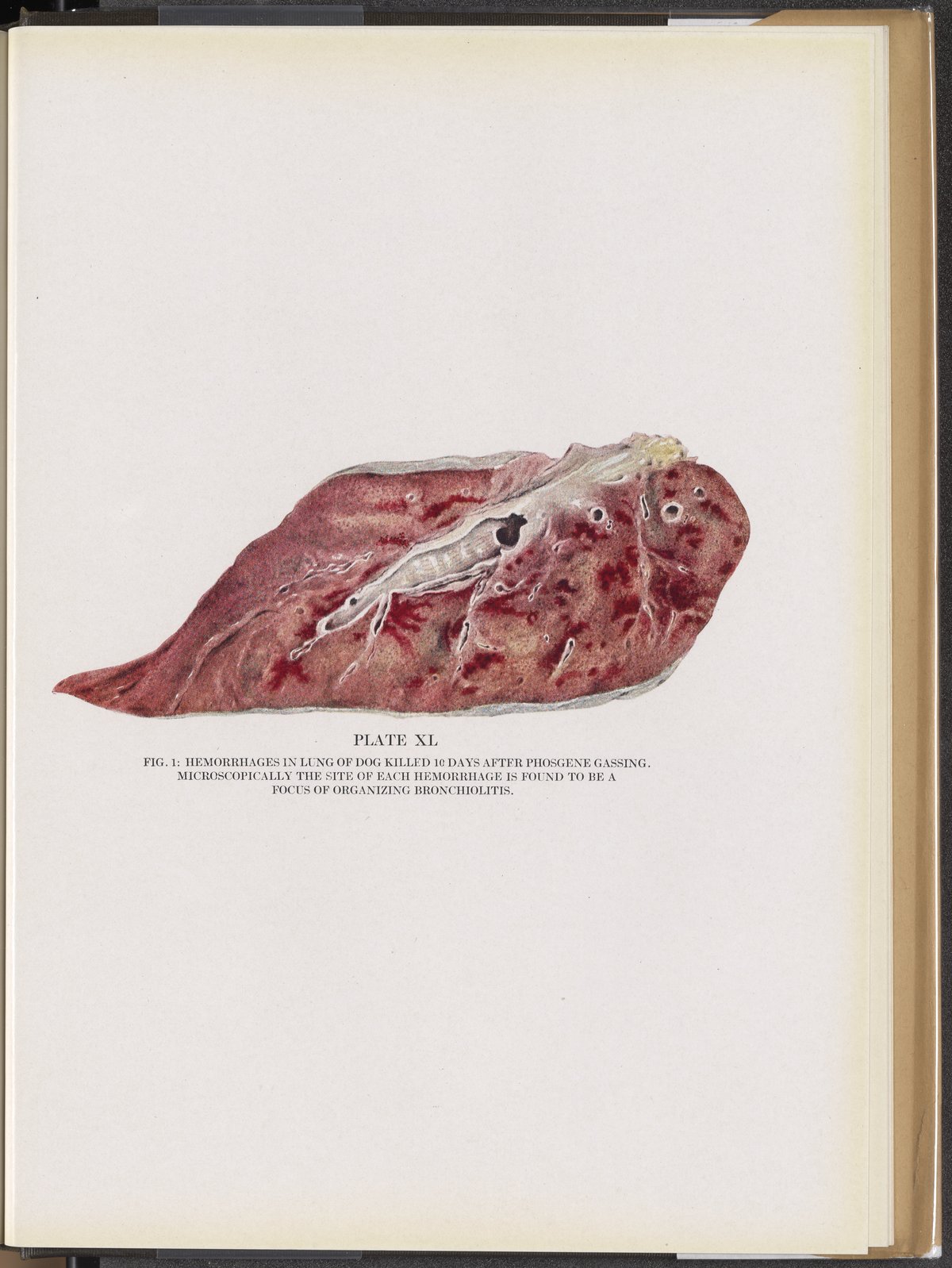 Plate XL (Fig. 1): Hemorrhages in lung of dog killed 10 days after phosgene gassing.