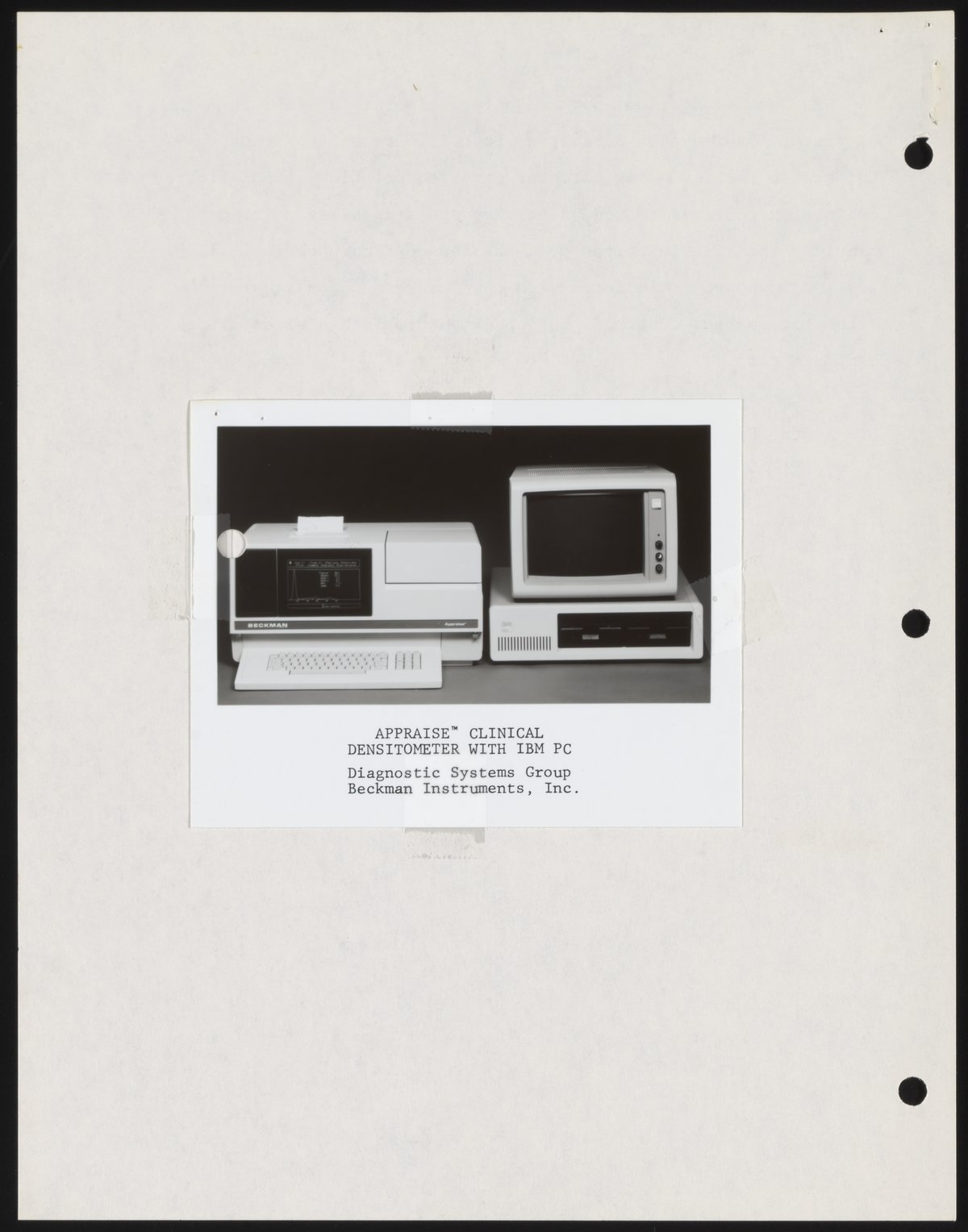 Stepan, Susan A. “The Appraise Clinical Densitometer from Beckman Adds IBM PC,” July 23, 1985. Beckman Historical Collection, Box 58, Folder 70. Science History Institute. Philadelphia. https://digital.sciencehistory.org/works/zc77sq648.