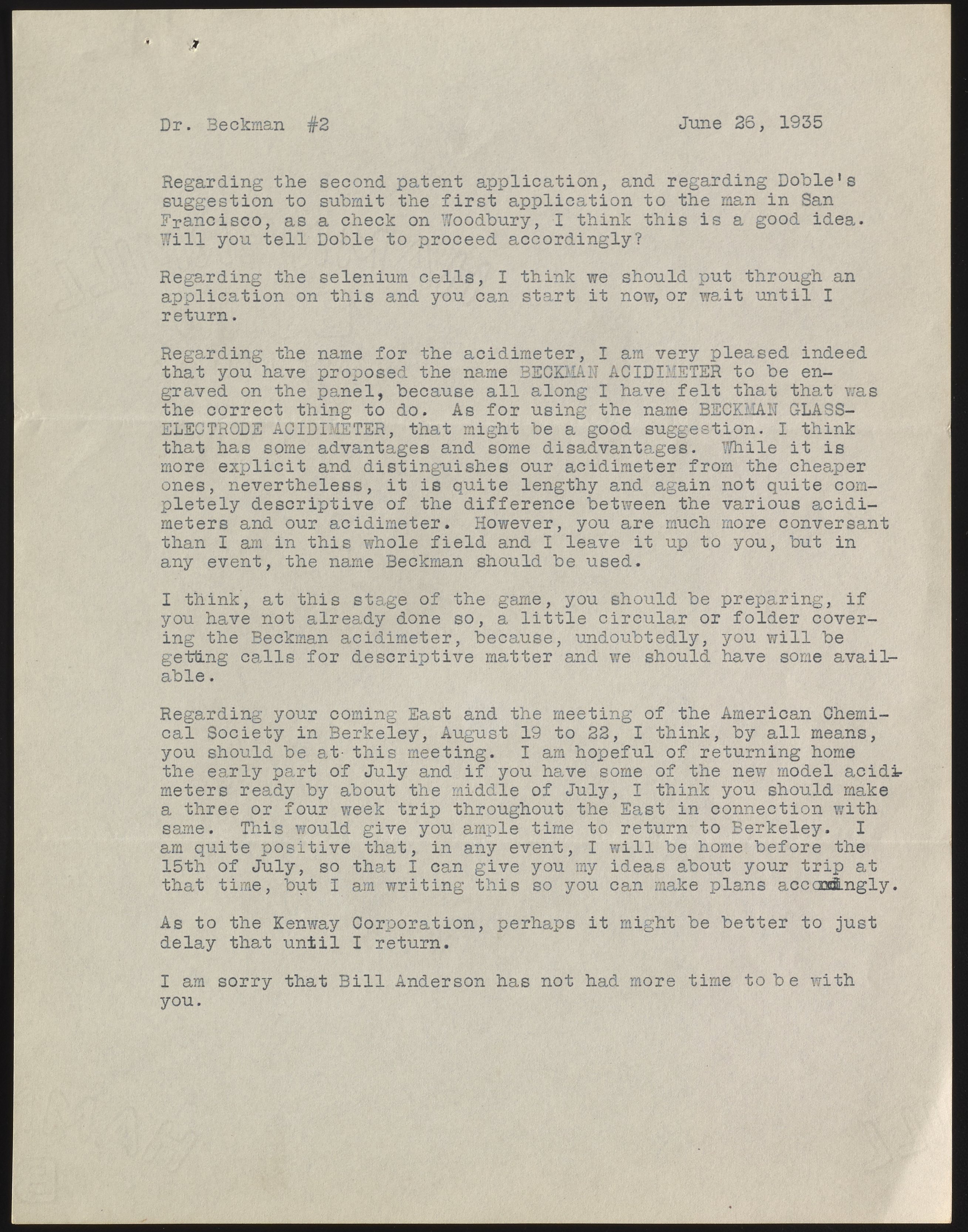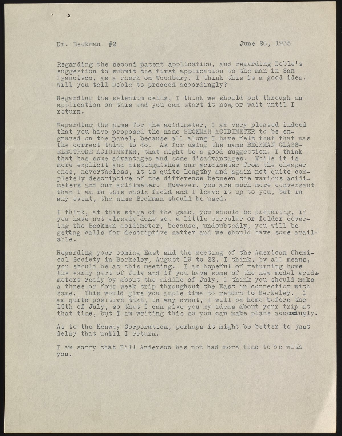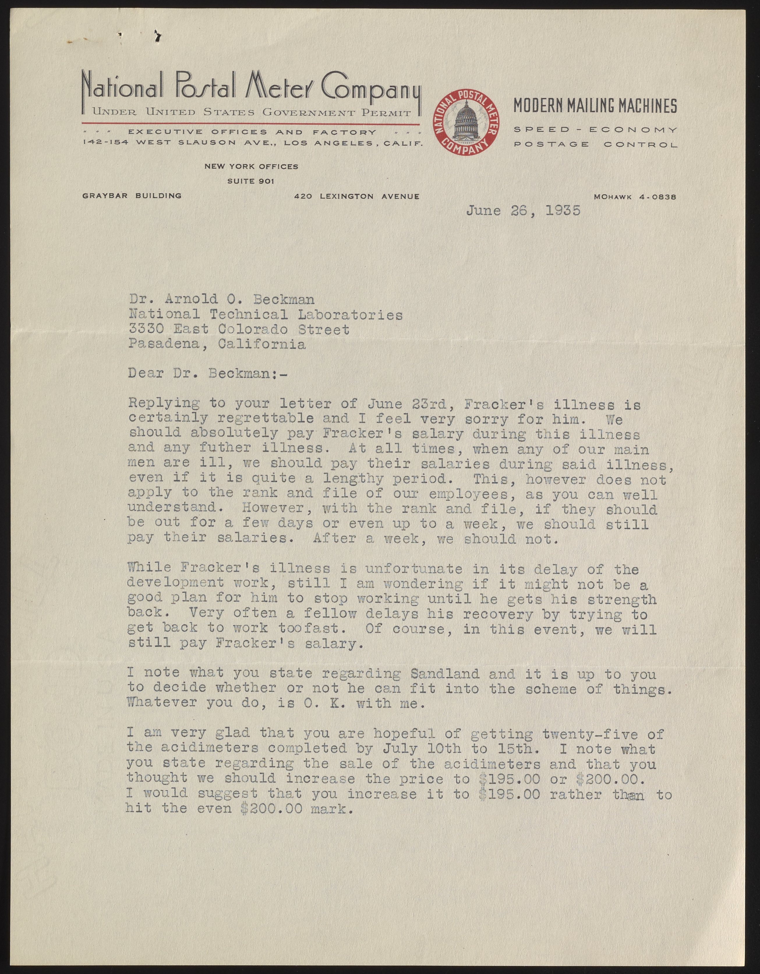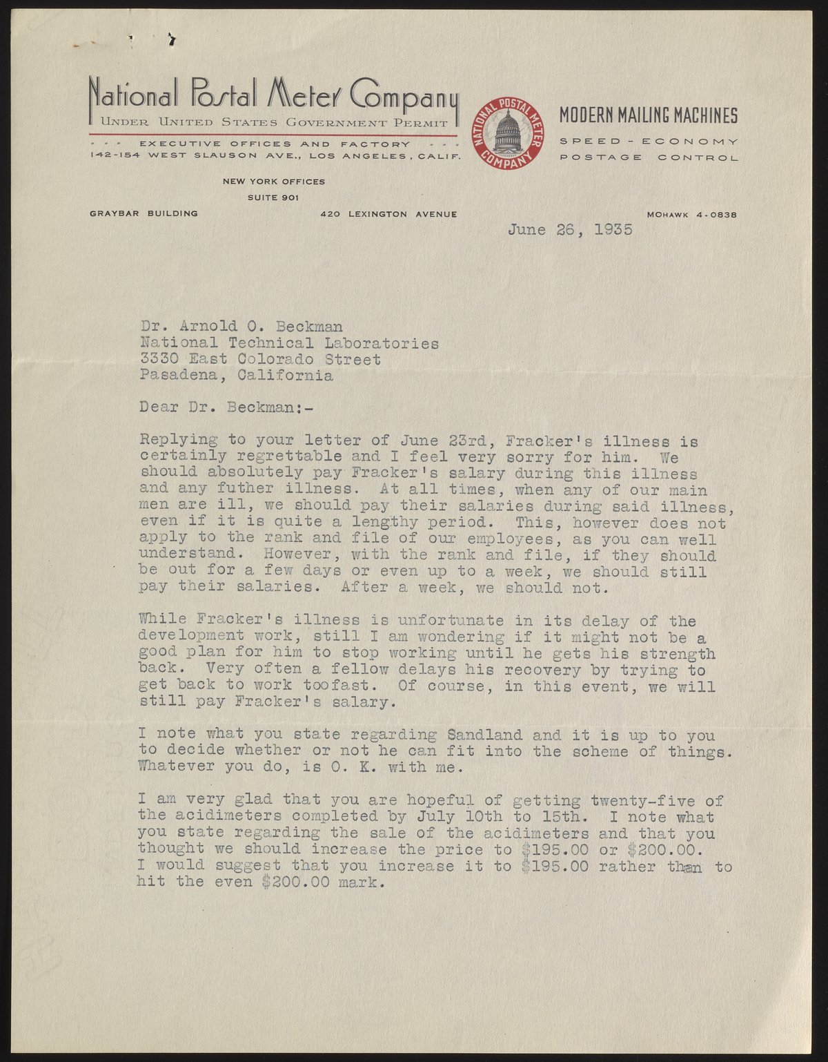 Letter from I. H. Lyons to Arnold O. Beckman