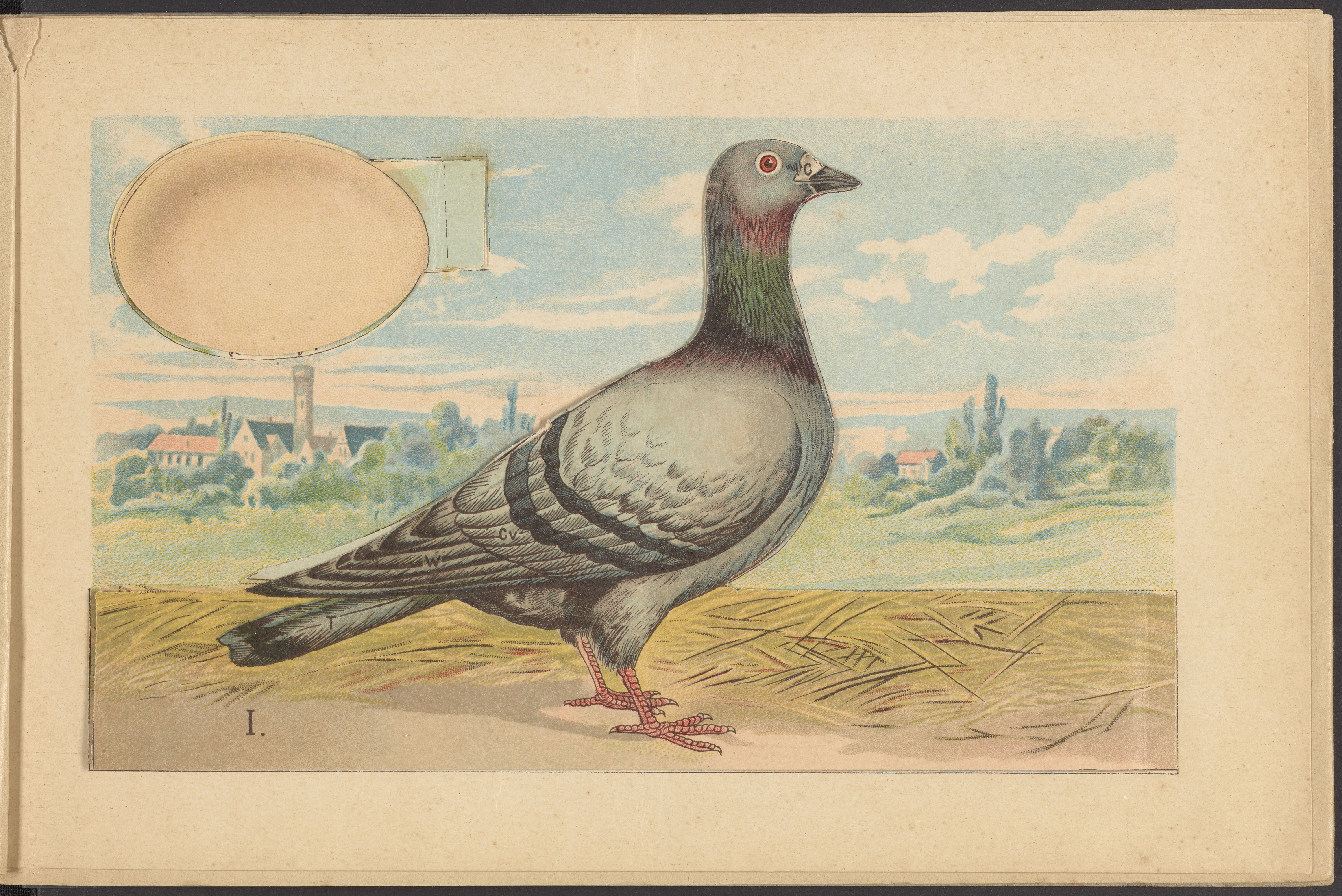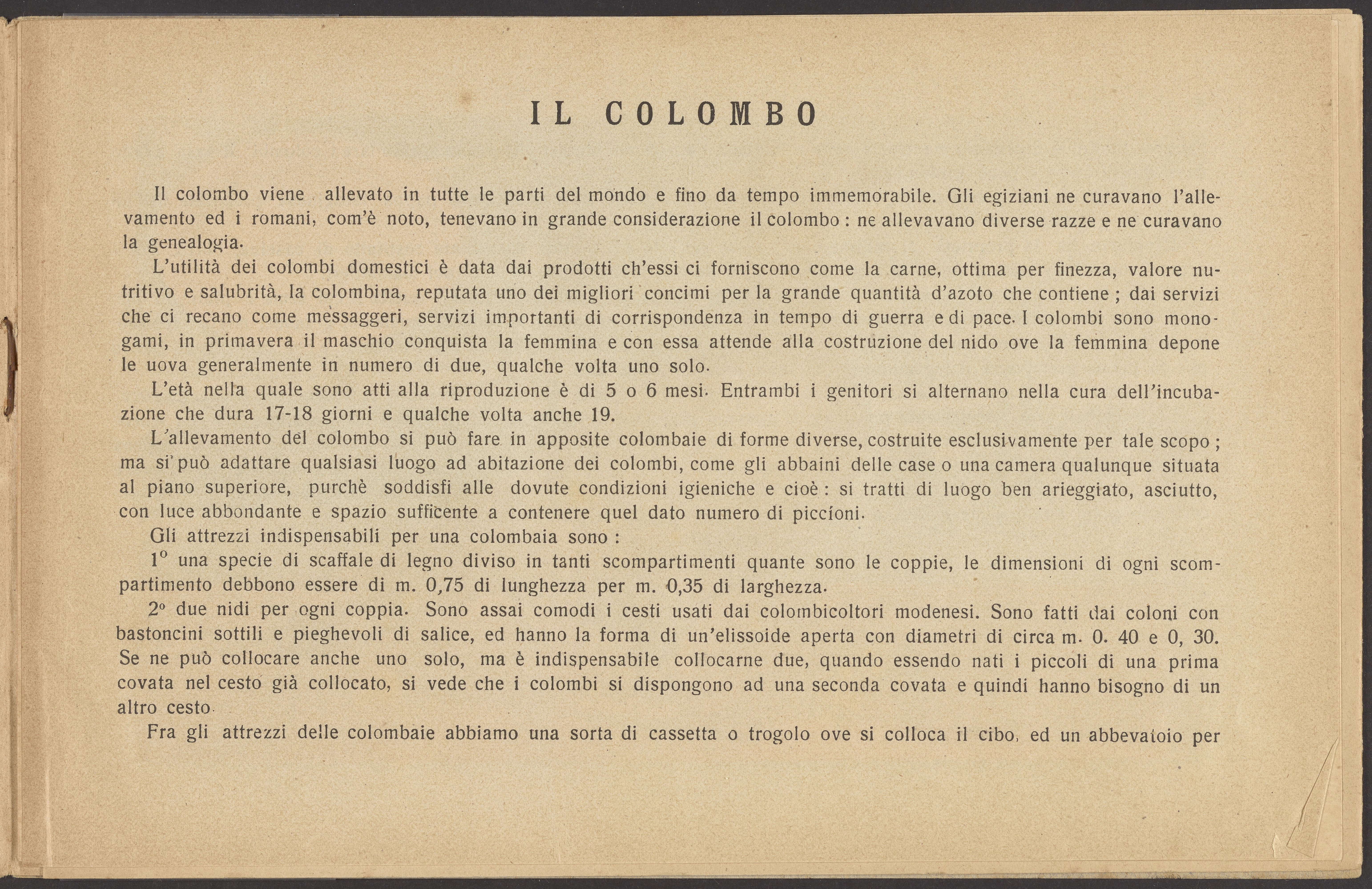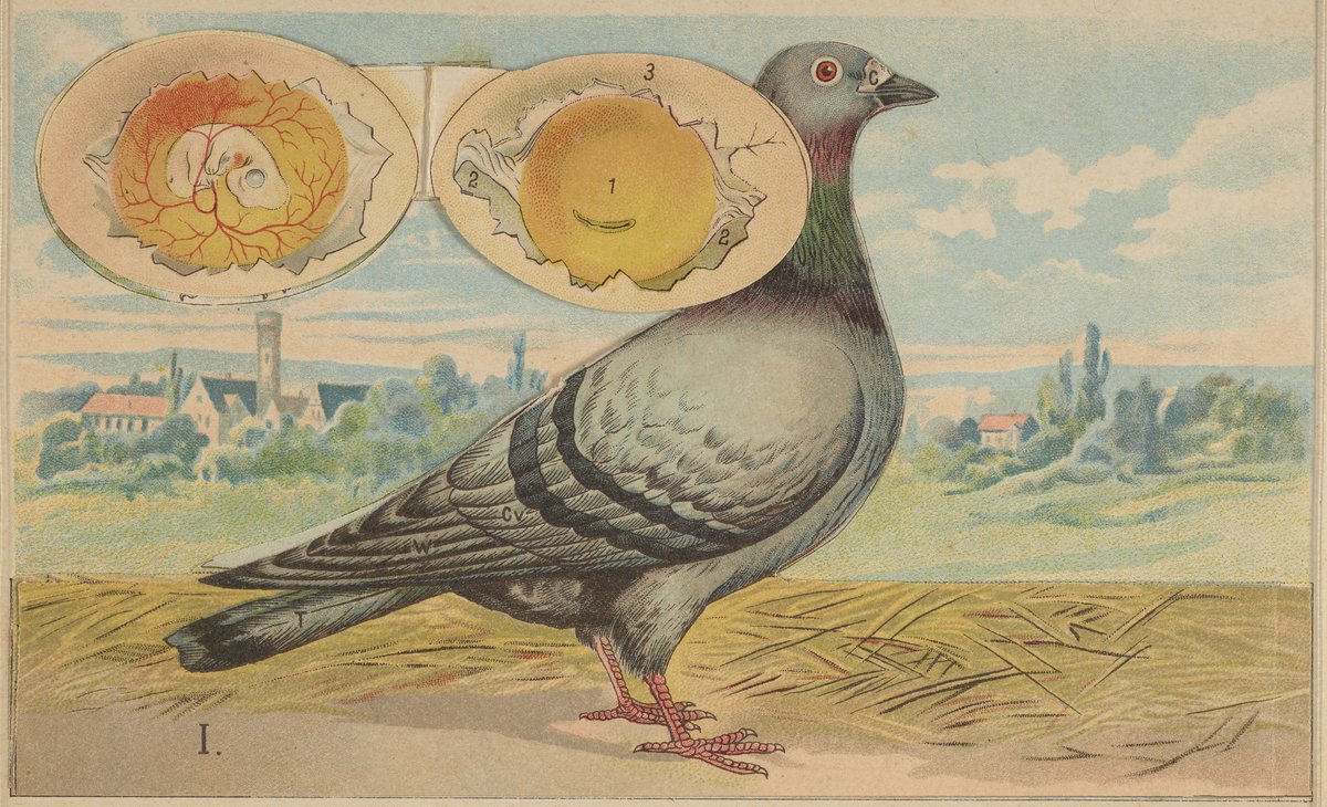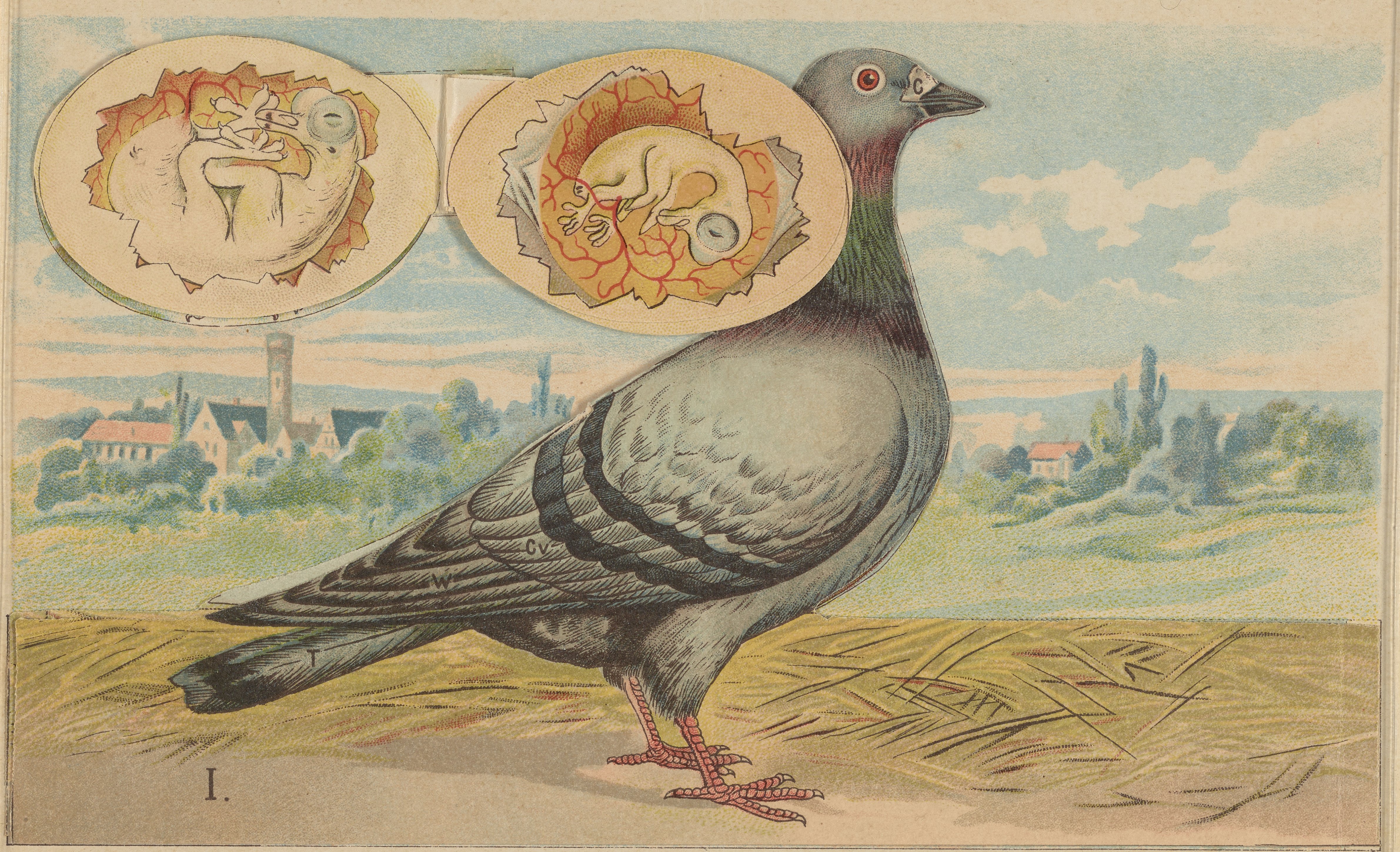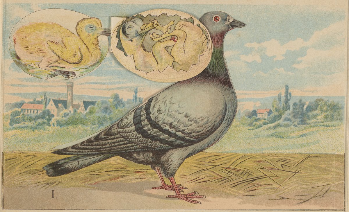Small JPG1200 x 453px — 85.7 KBLarge JPG2880 x 1087px — 393 KBFull-sized JPG8895 x 3358px — 3.0 MBOriginal fileTIFF — 8895 x 3358px — 85.5 MBItalian-language book on the anatomy of the pigeon. It includes a color illustration of a pigeon and a pigeon egg. The pigeon is composed of two large, double-sided flaps and a series of smaller flaps, each of which lifts to reveal the anatomical layer beneath it, from the pigeon's outer body to its skeleton, vascular system, muscles, and internal organs. The egg is composed of three double-sided flaps that depict the stages of embryonic development.