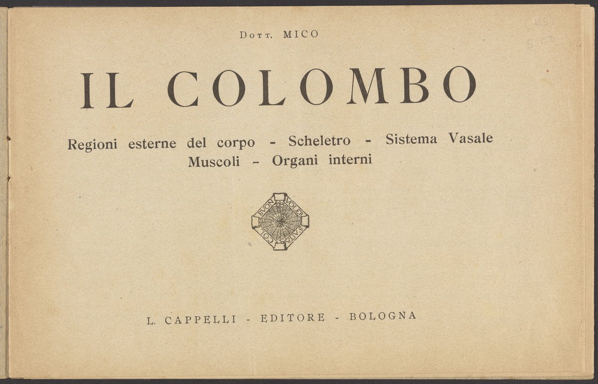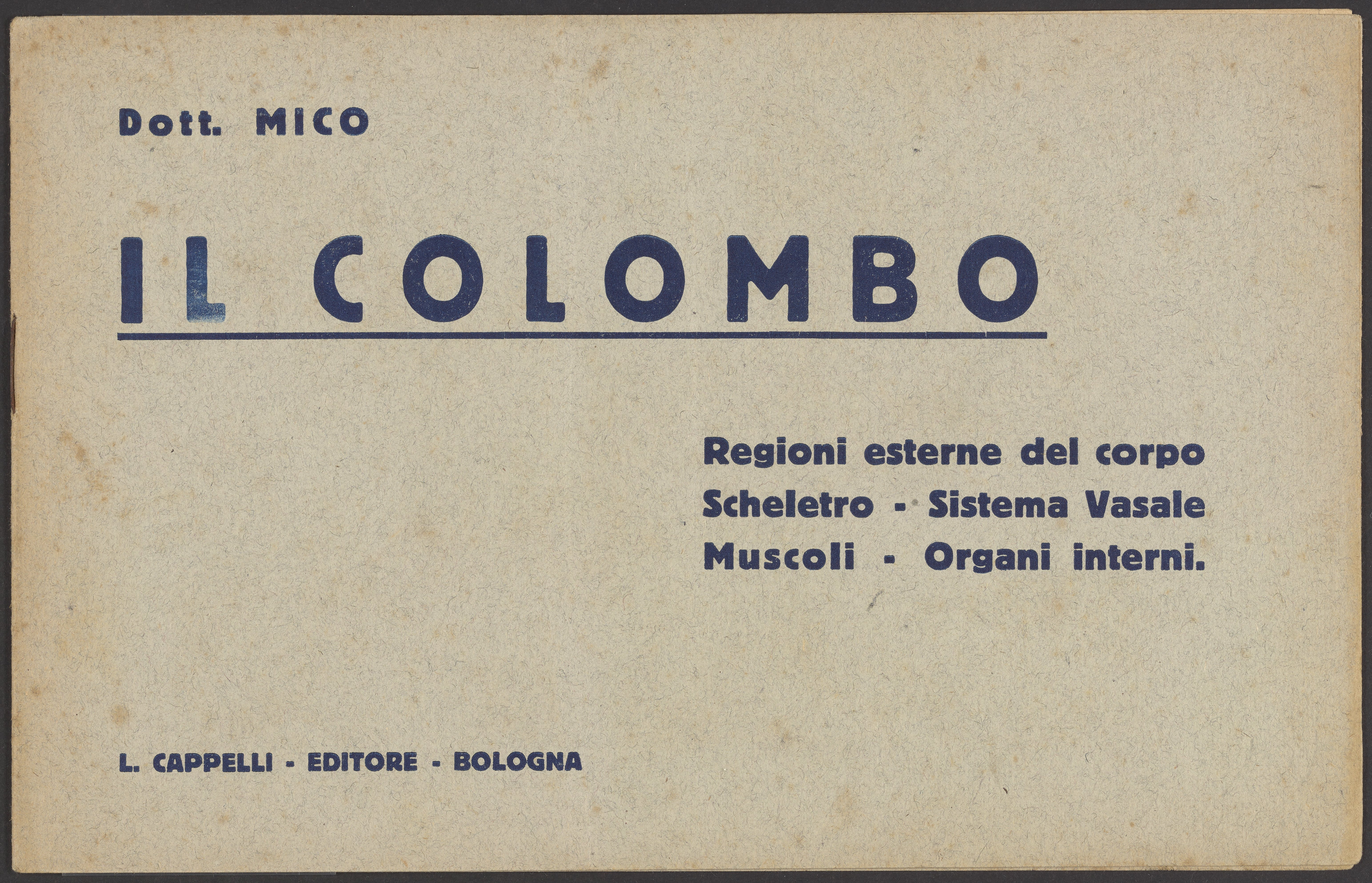 Mico, Dott. Il Colombo : Regioni Esterne Del Corpo, Scheletro, Sistema Vasale, Muscoli, Organi Interni. Bologna, Italy, 1924. https://digital.sciencehistory.org/works/zl1tpkz.