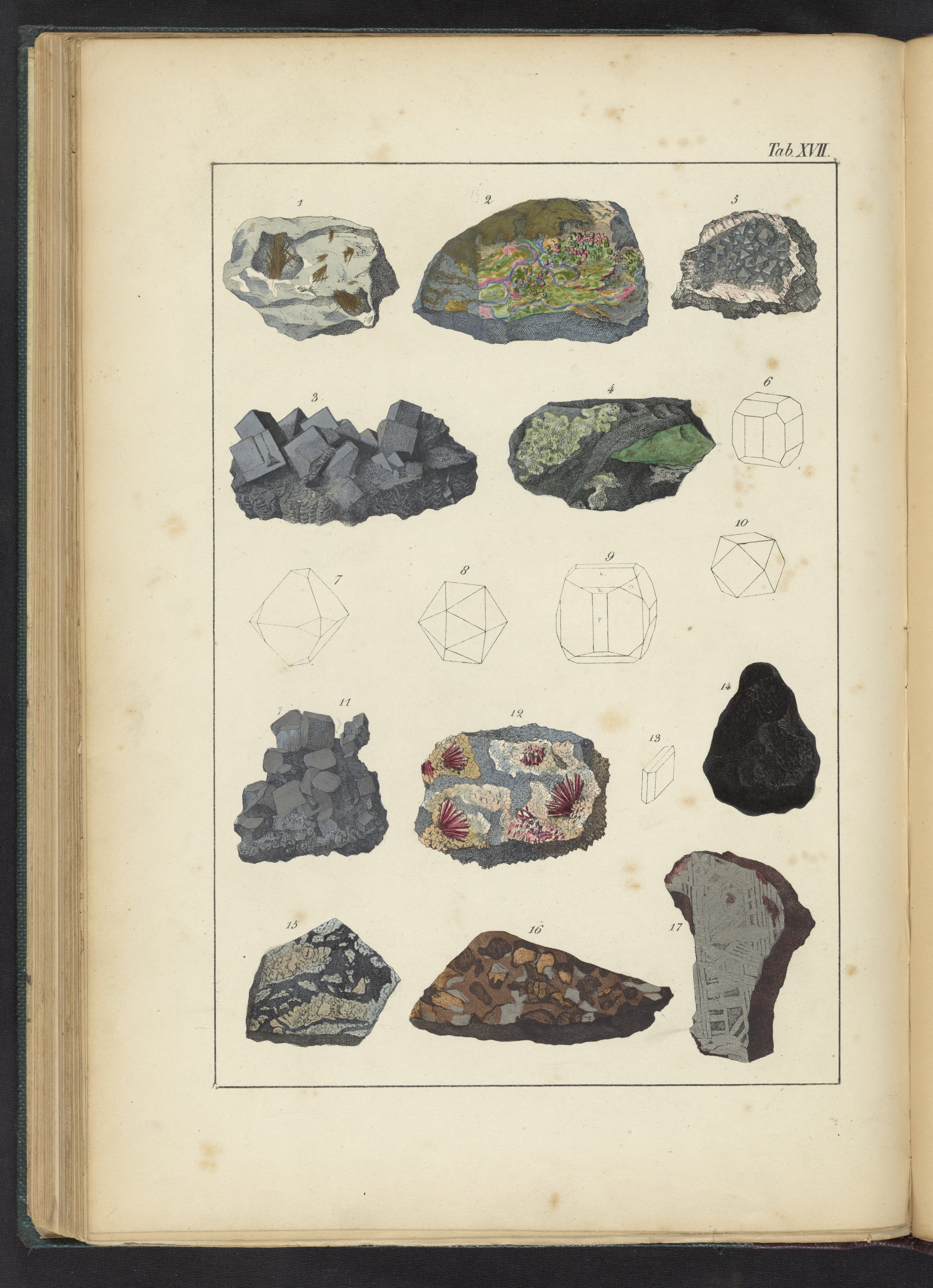 Kurr, J. G. (Johann Gottlob). “Plate XVII: Nickel, Cobalt, Iron.” In The Mineral Kingdom. Edinburgh, Scotland: Edmonston and Douglas, 1859. https://digital.sciencehistory.org/works/znv47di.