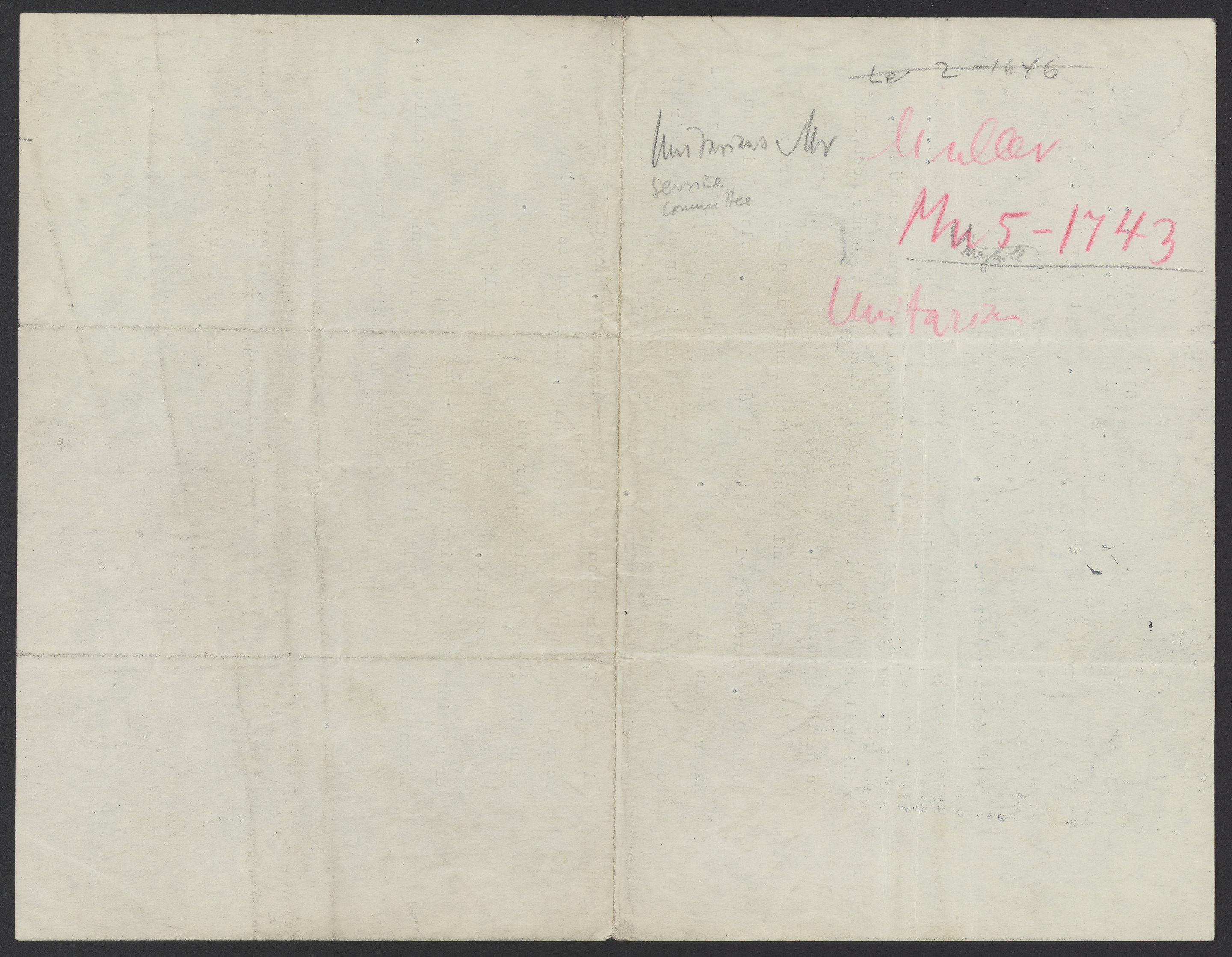 Small JPG1200 x 1540px — 206 KBLarge JPG2880 x 3696px — 1.1 MBFull-sized JPG5364 x 6884px — 3.5 MBOriginal fileTIFF — 5364 x 6884px — 106 MBIlse Wolfsberg writes to Max Bredig (1902-1977) about her fiancé Fritz Hochwald's (1897-1968) immigration case. Hochwald requests that Bredig inquire with Mr. Holske at the law firm of Munn, Anderson & Liddy regarding any mail that may have arrived for him, and forward it directly to Werner Hochwald in Minneapolis. She also mentions that Fritz Hochwald had received money from an unknown source and used it to buy a bed and sheets for himself in the Miranda de Ebro concentration camp.