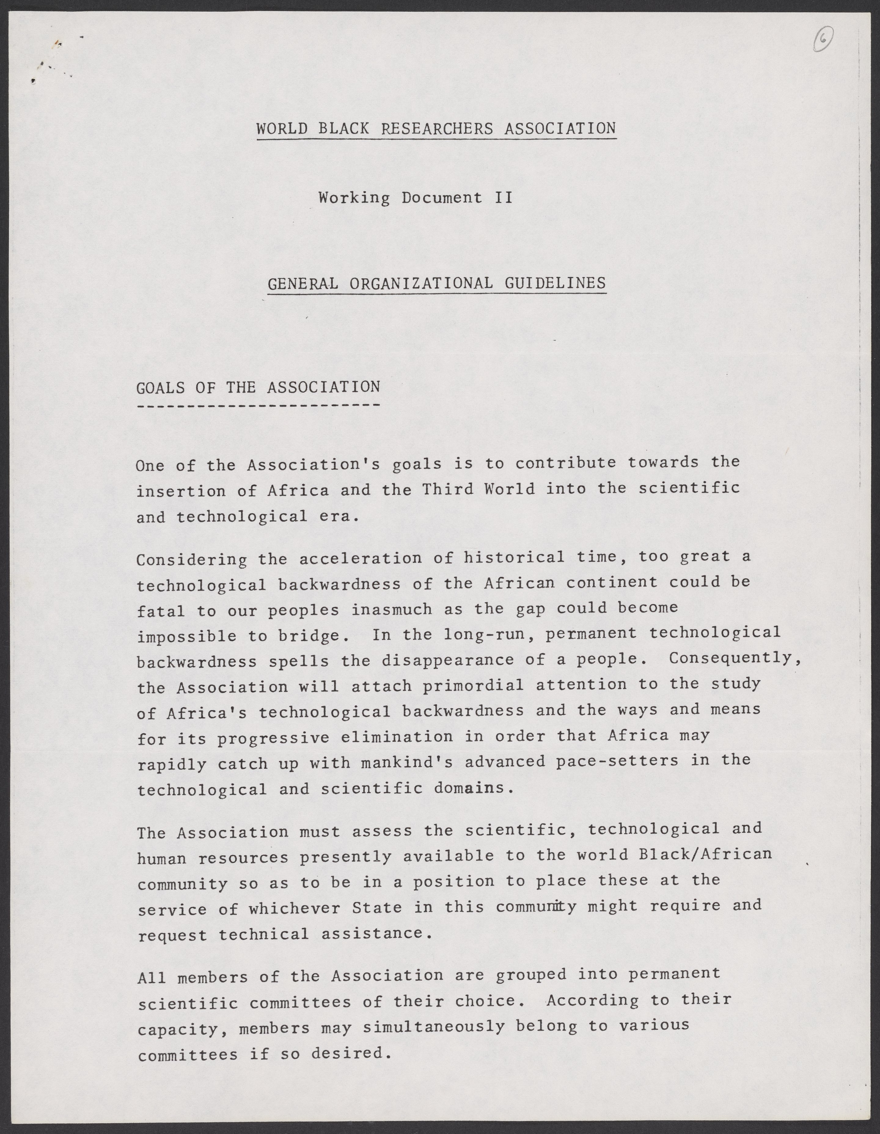 World Black Researchers Association. “General Organizational Guidelines for the World Black Researchers Association,” circa 1976. William A. Lester, Jr. Papers, Box 5, Folder 9. Science History Institute. Philadelphia. https://digital.sciencehistory.org/works/zu88imr.