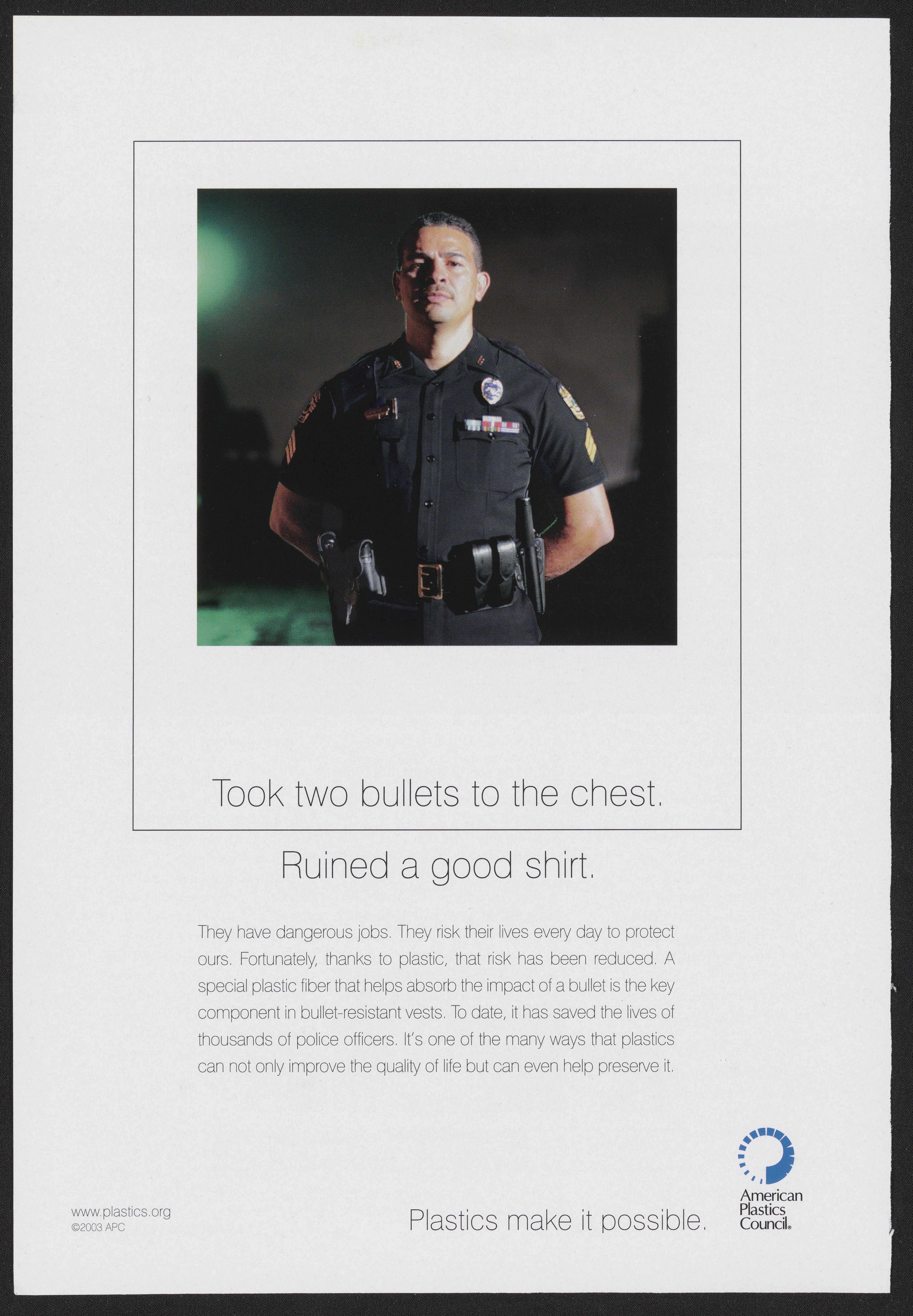 American Plastics Council. “Plastics Make It Possible Advertisement, 2003,” 2003. Science History Institute. Philadelphia. https://digital.sciencehistory.org/works/zvxdhhm.