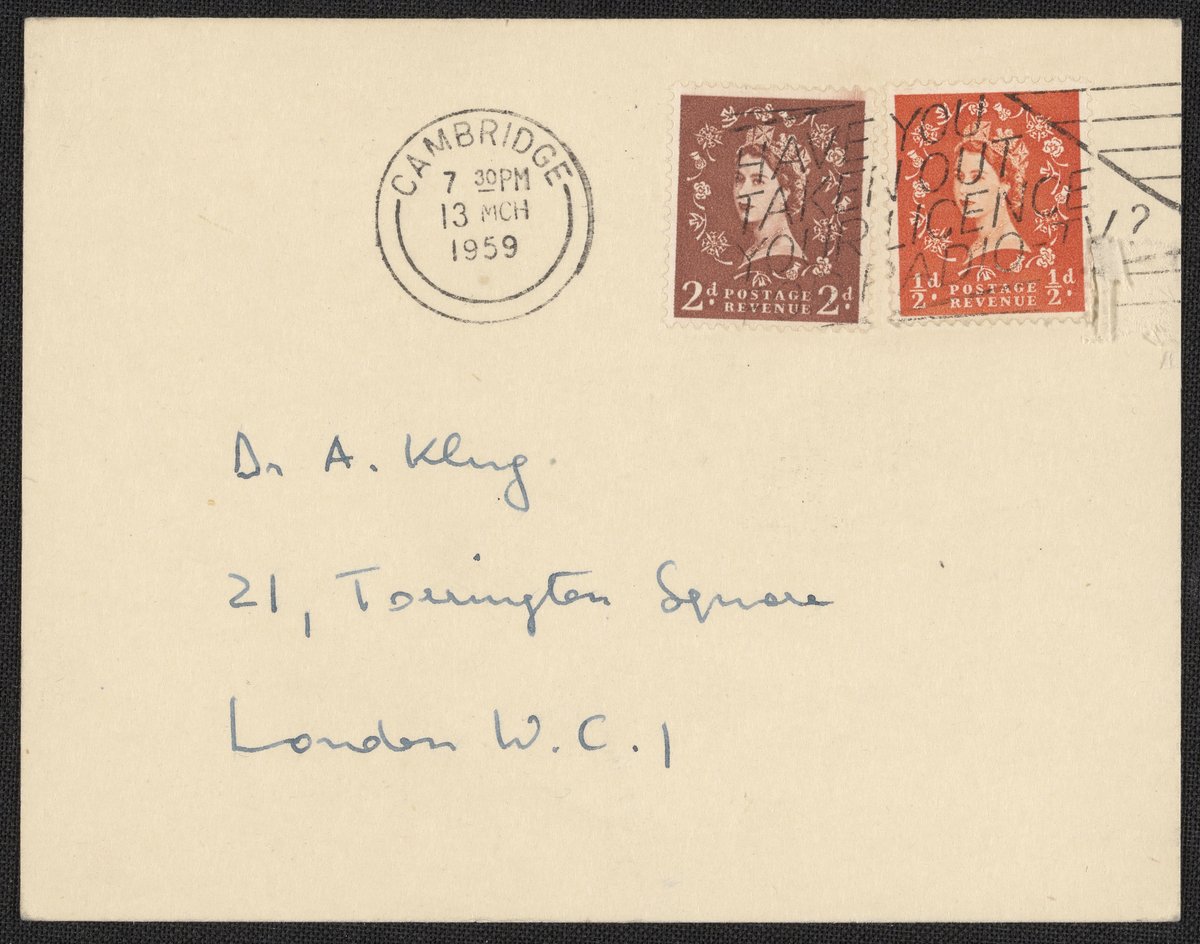 Perutz, Max F. “Letter from Max Perutz to Aaron Klug, March 13, 1959,” March 13, 1959. History of Molecular Biology Collection, Box 25, Folder 18. Science History Institute. Philadelphia. https://digital.sciencehistory.org/works/zzqs6vc.