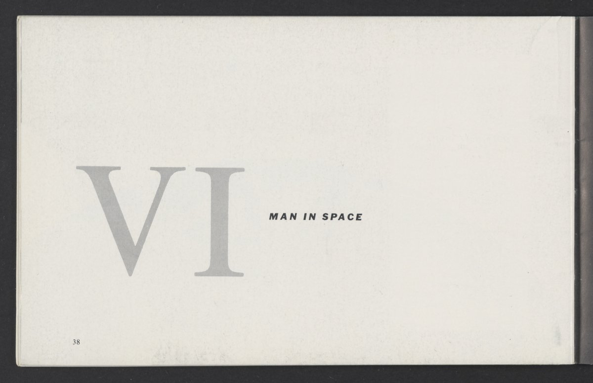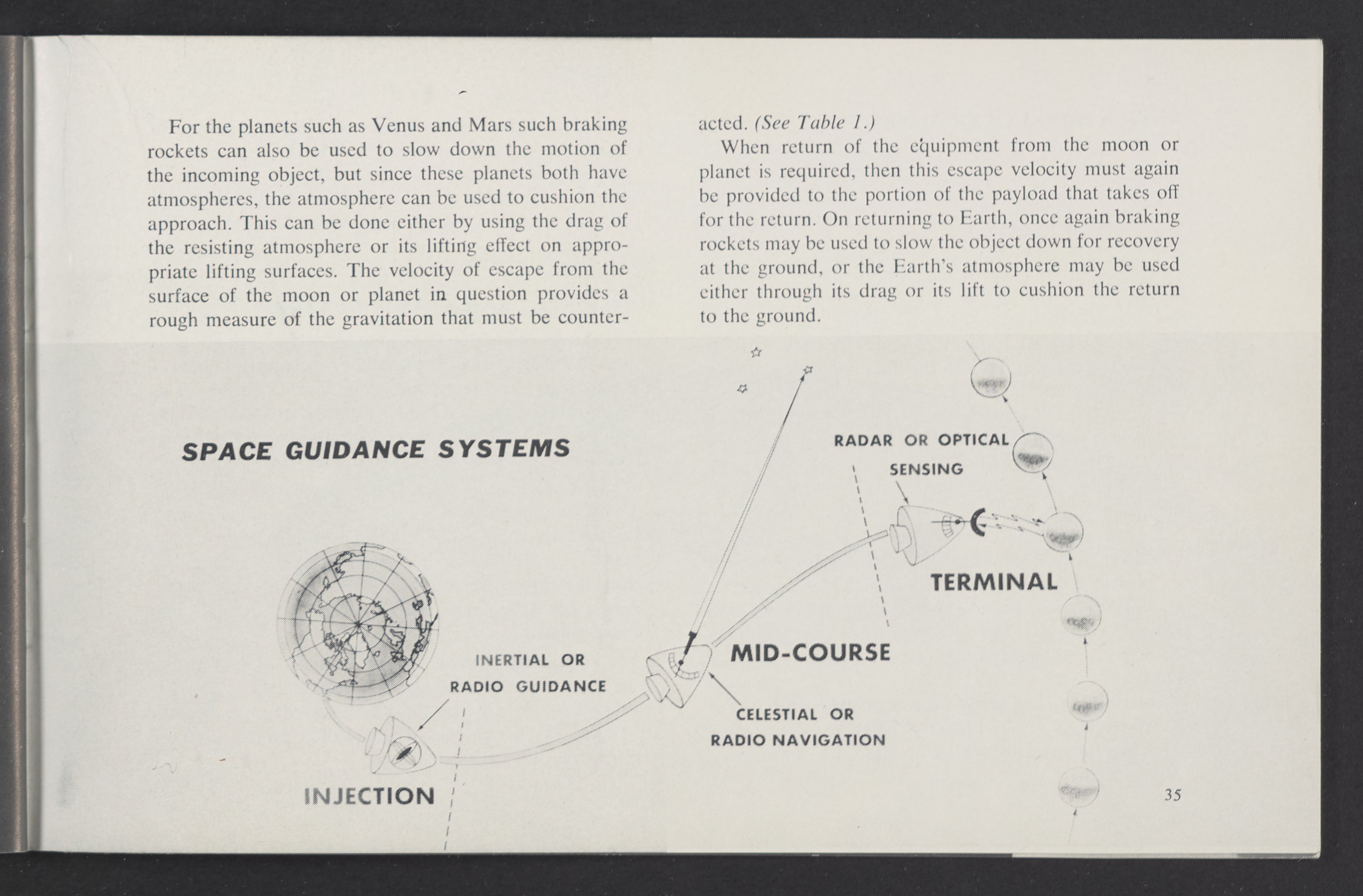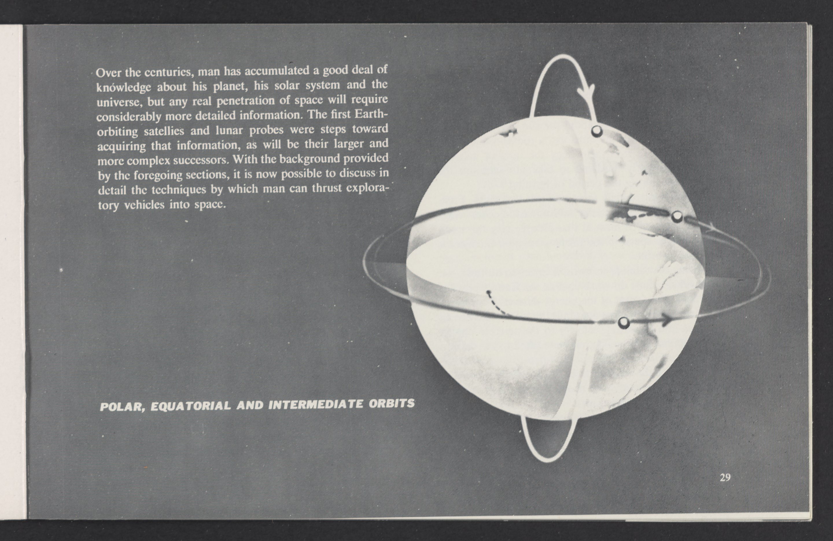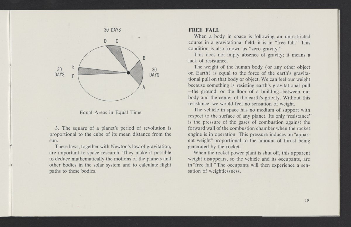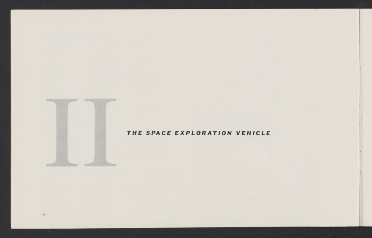 Small JPG1200 x 784px — 110 KBLarge JPG2880 x 1881px — 510 KBFull-sized JPG3458 x 2258px — 687 KBOriginal fileTIFF — 3458 x 2258px — 22.4 MBAn informational booklet containing a technical introduction to space exploration. Includes six chapters outlining various aspects of space travel such as celestial mechanics and the logistics of transporting humans in space. A glossary of terms is found at the end of the pamphlet, and a variety of printed illustrations and diagrams are included in each chapter. The publication is digitized in its entirety.
