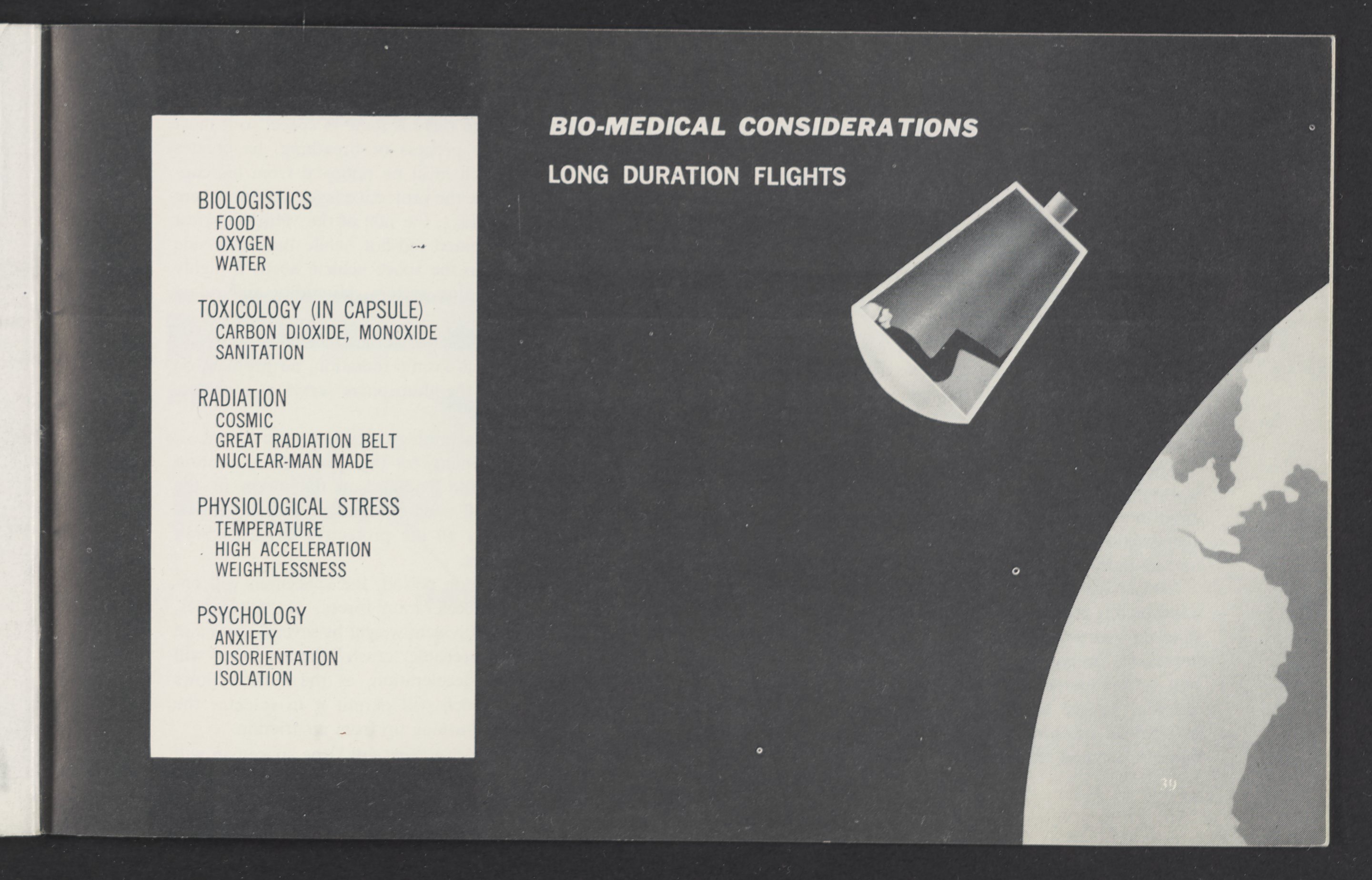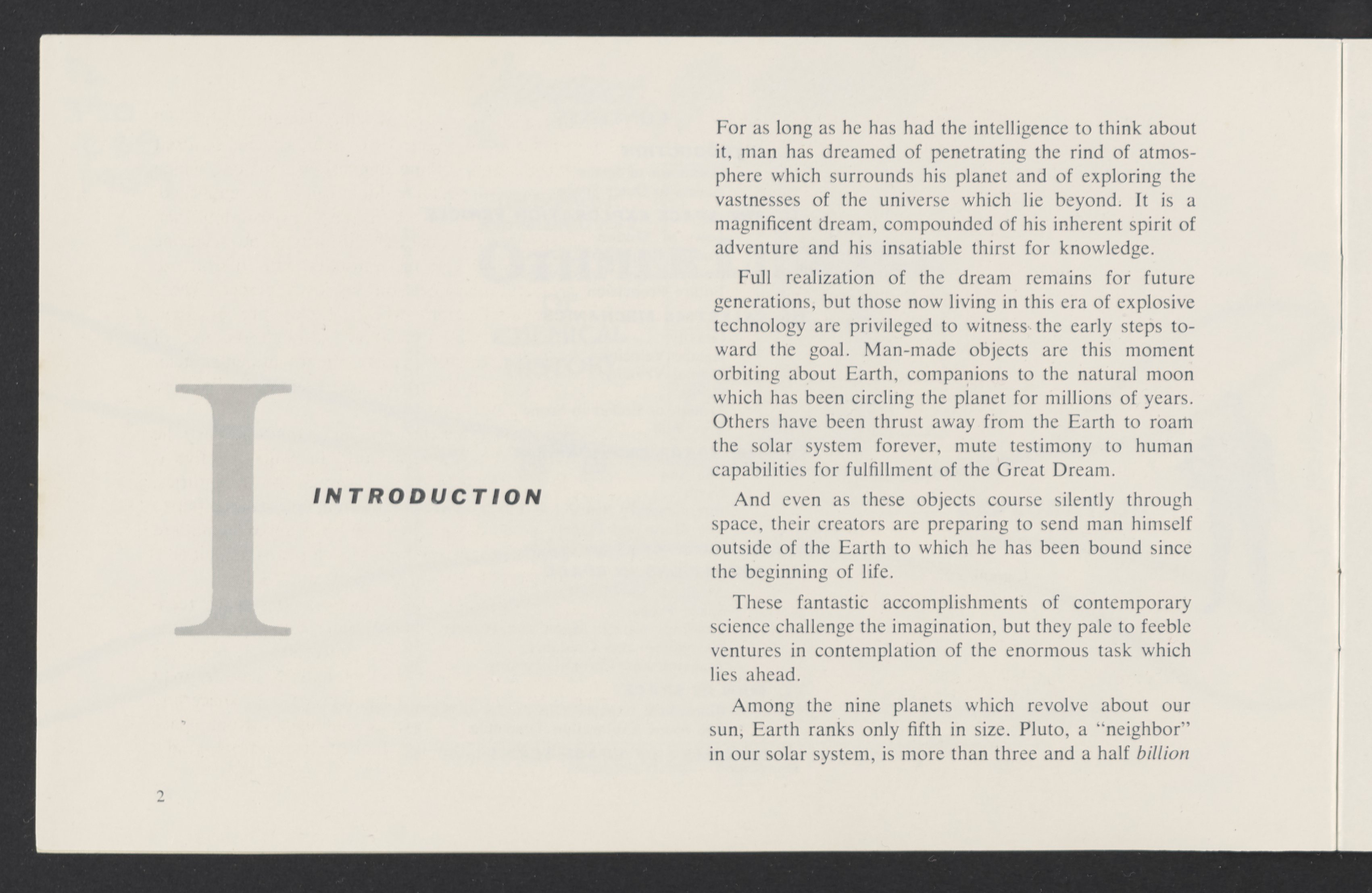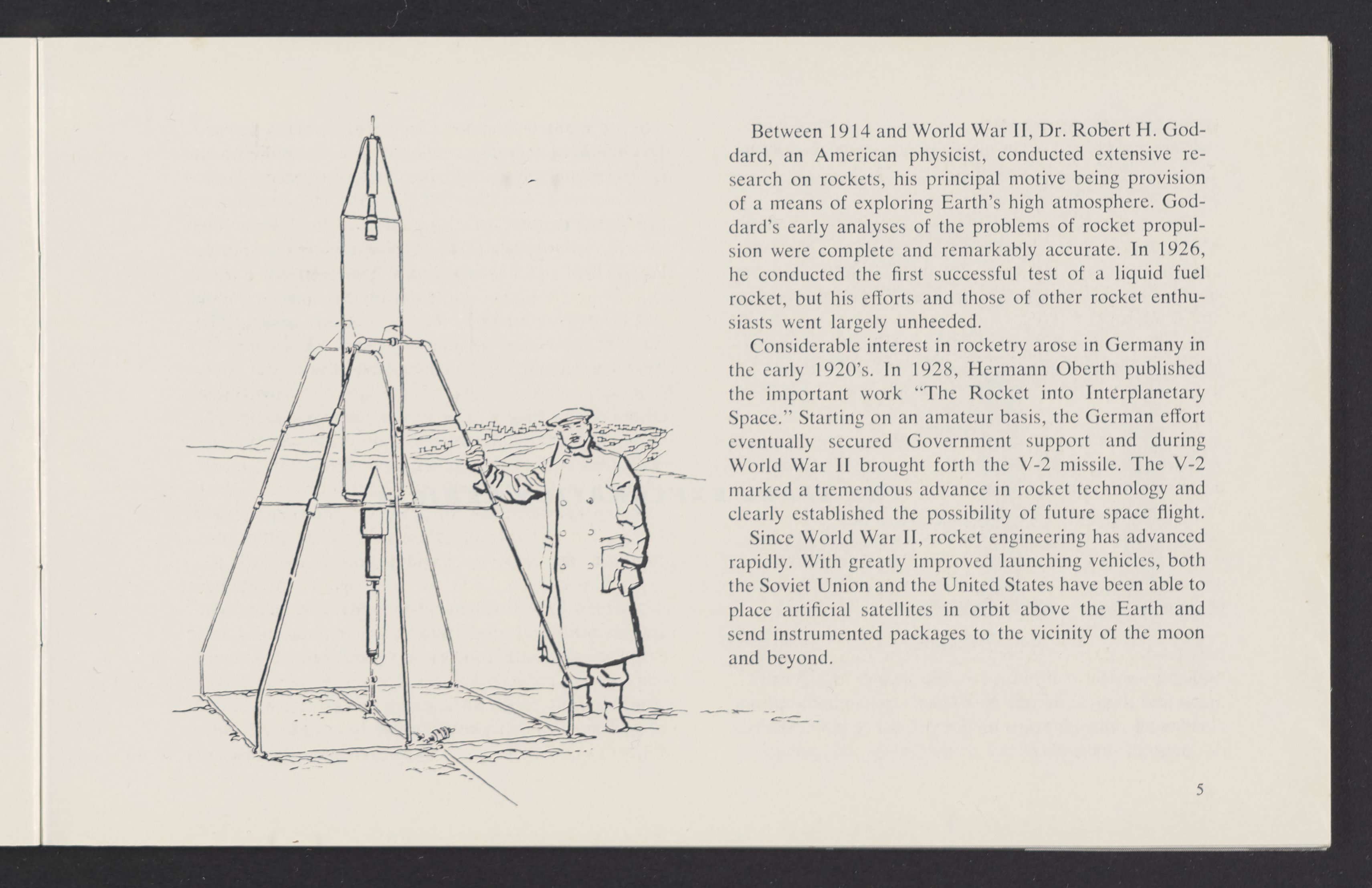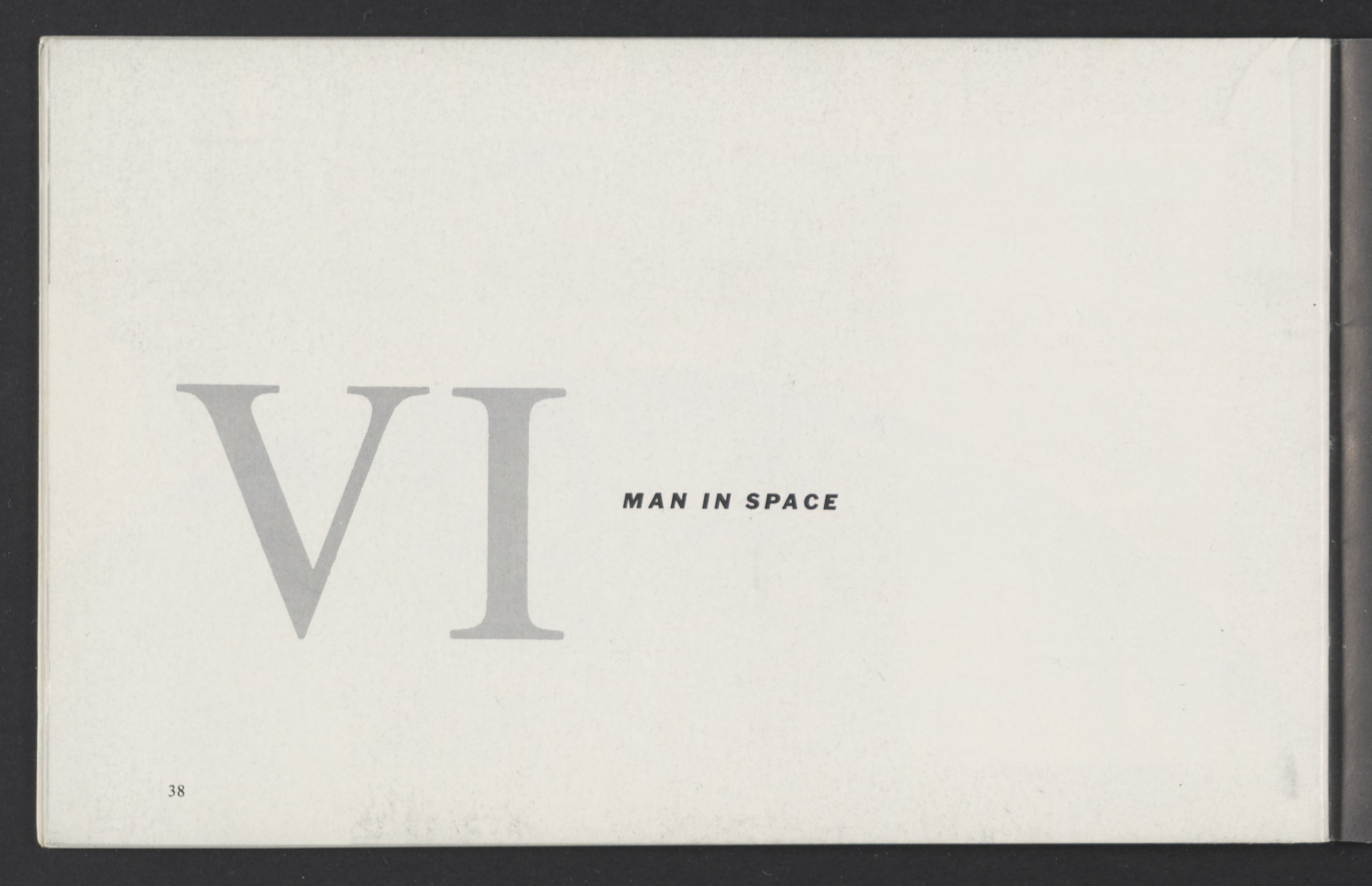 Small JPG1200 x 784px — 110 KBLarge JPG2880 x 1881px — 510 KBFull-sized JPG3458 x 2258px — 687 KBOriginal fileTIFF — 3458 x 2258px — 22.4 MBAn informational booklet containing a technical introduction to space exploration. Includes six chapters outlining various aspects of space travel such as celestial mechanics and the logistics of transporting humans in space. A glossary of terms is found at the end of the pamphlet, and a variety of printed illustrations and diagrams are included in each chapter. The publication is digitized in its entirety.