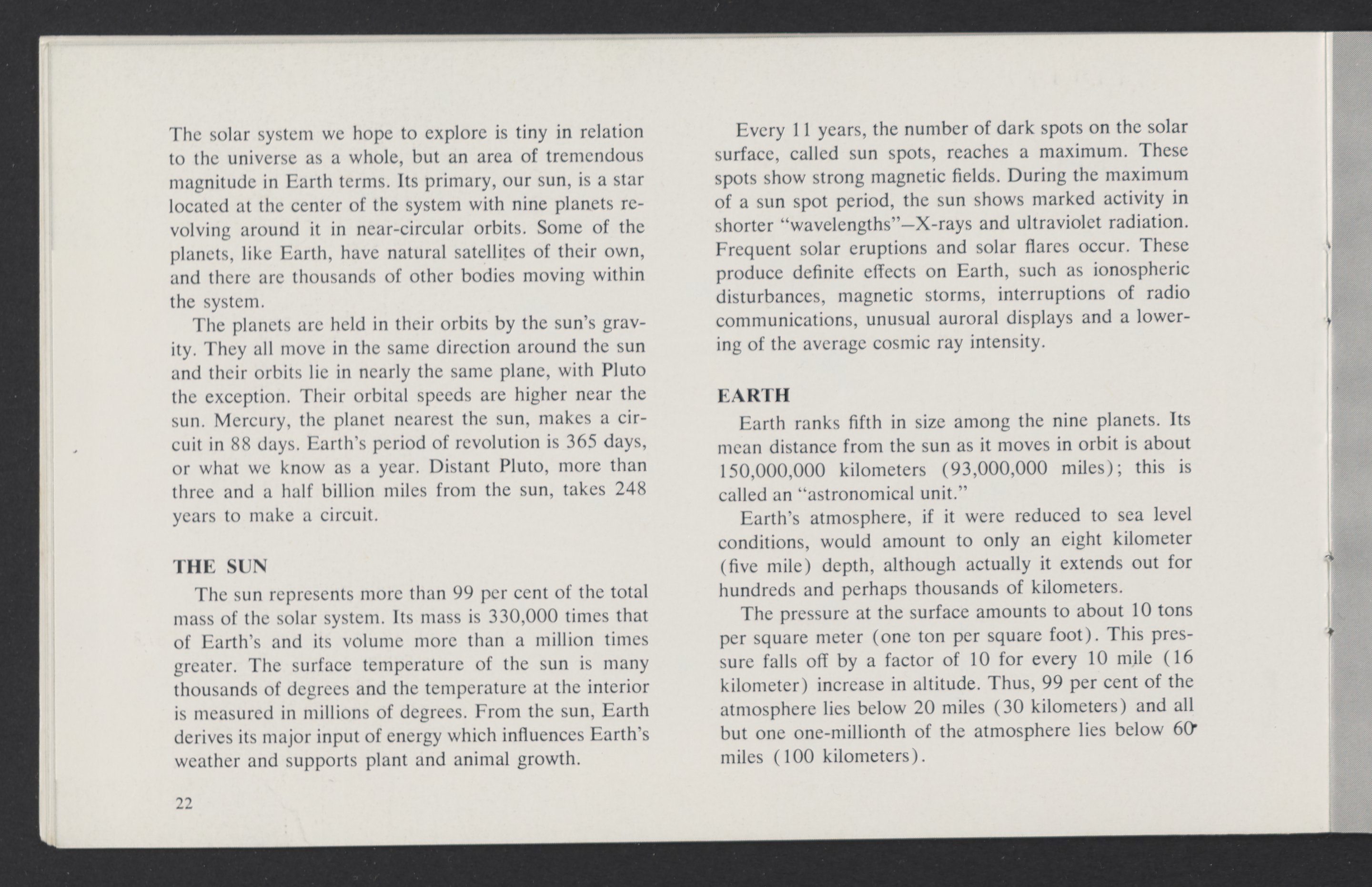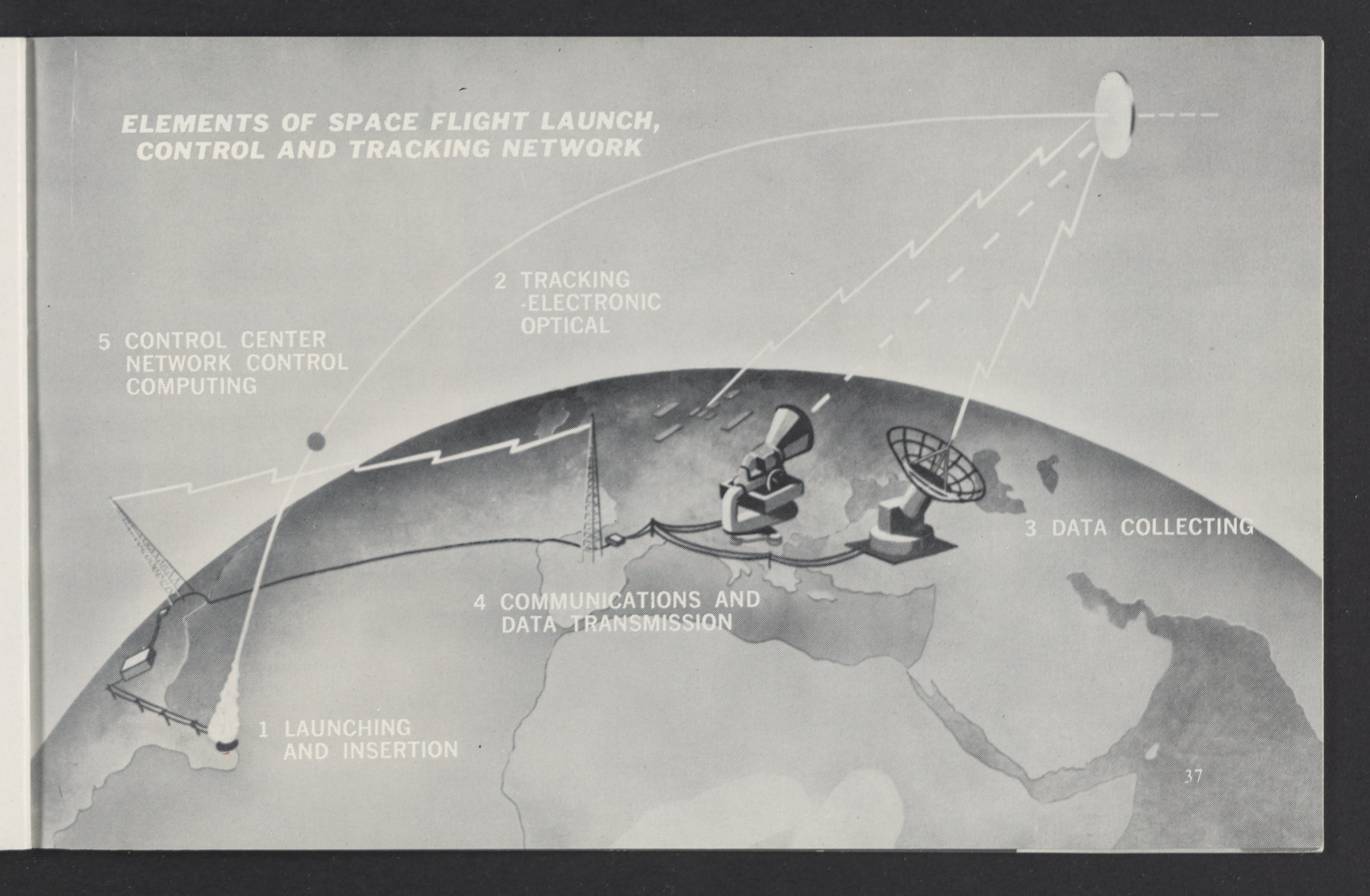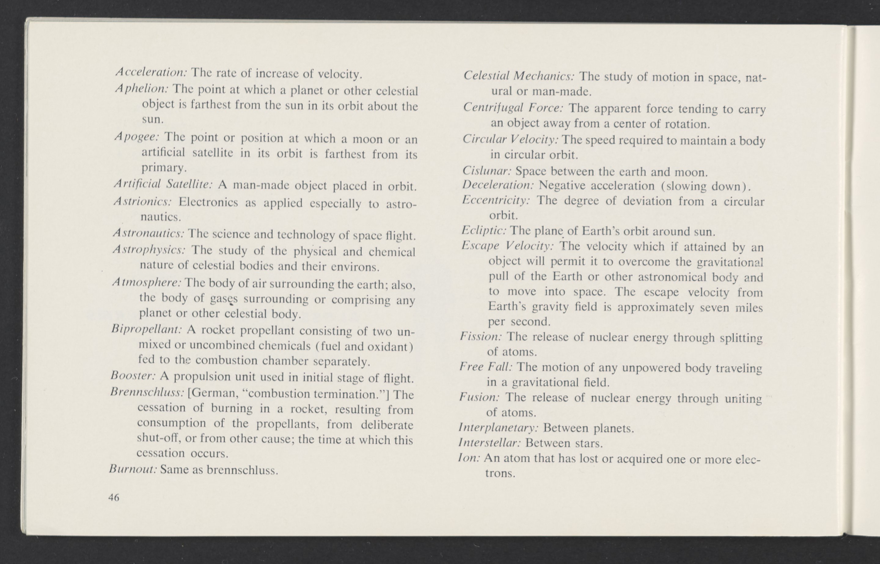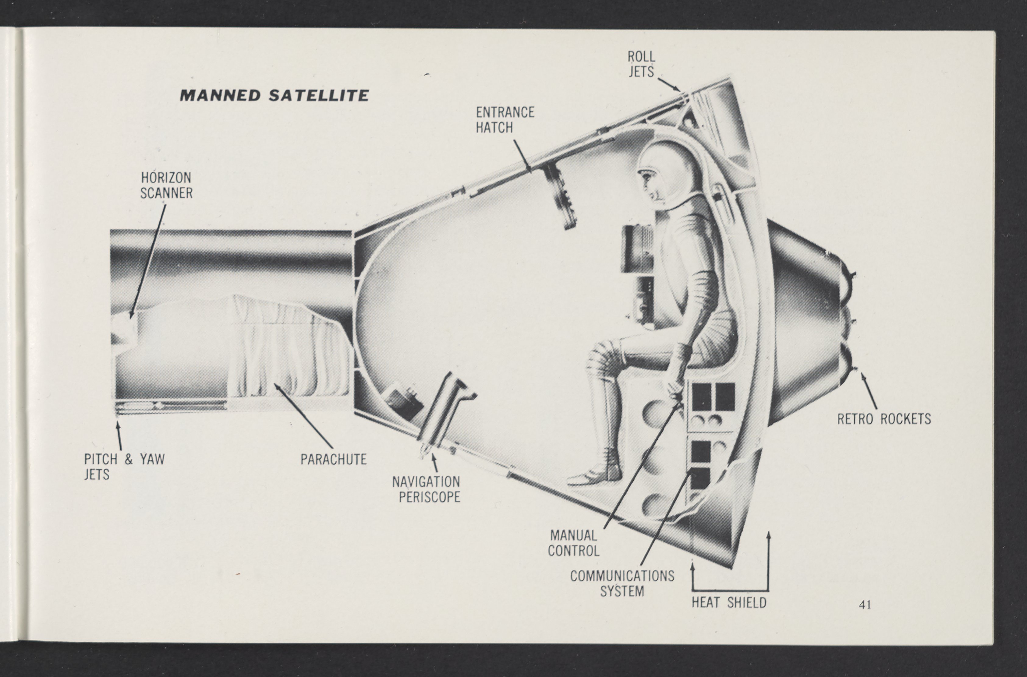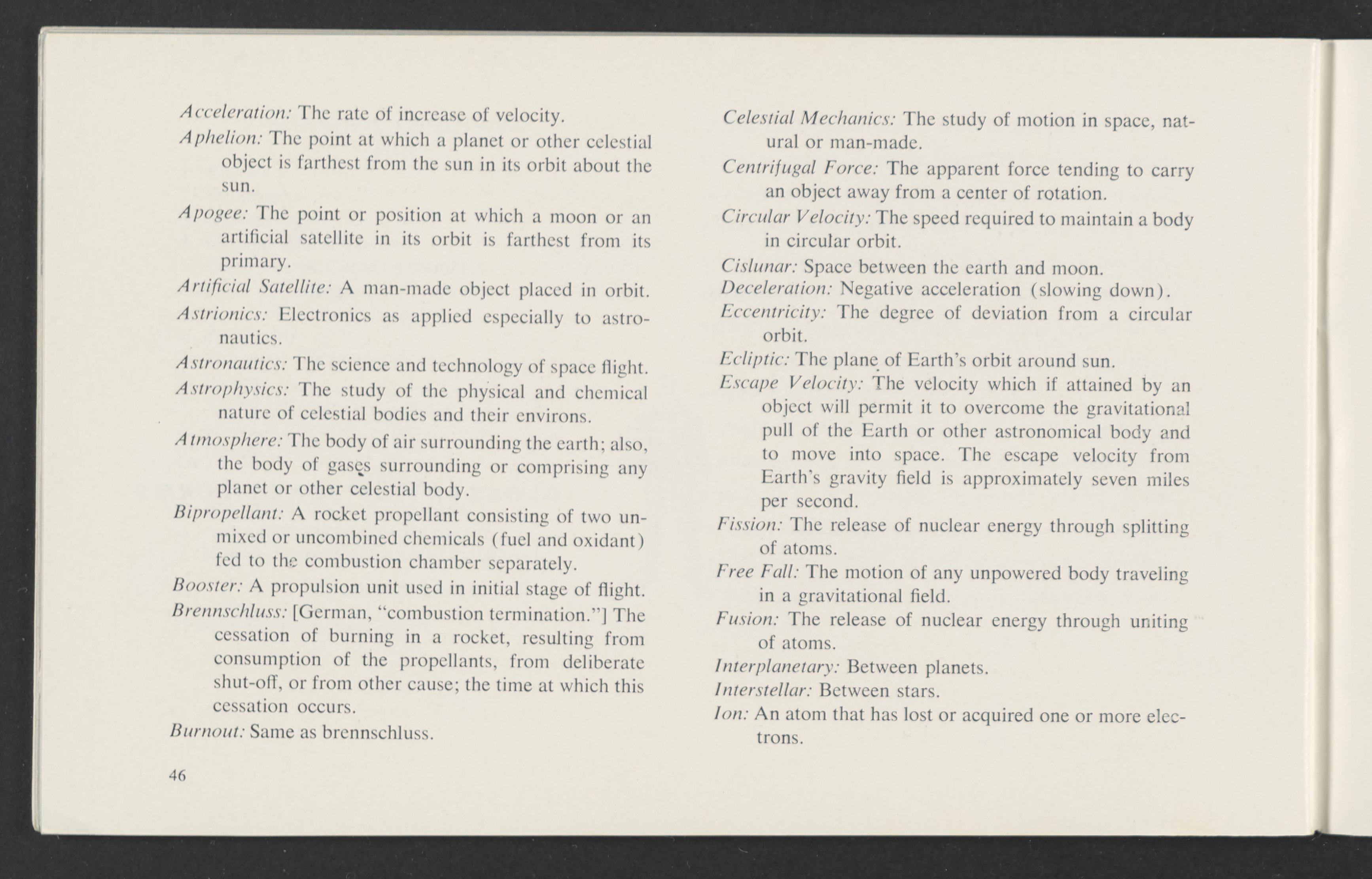 Small JPG1200 x 784px — 110 KBLarge JPG2880 x 1881px — 510 KBFull-sized JPG3458 x 2258px — 687 KBOriginal fileTIFF — 3458 x 2258px — 22.4 MBAn informational booklet containing a technical introduction to space exploration. Includes six chapters outlining various aspects of space travel such as celestial mechanics and the logistics of transporting humans in space. A glossary of terms is found at the end of the pamphlet, and a variety of printed illustrations and diagrams are included in each chapter. The publication is digitized in its entirety.