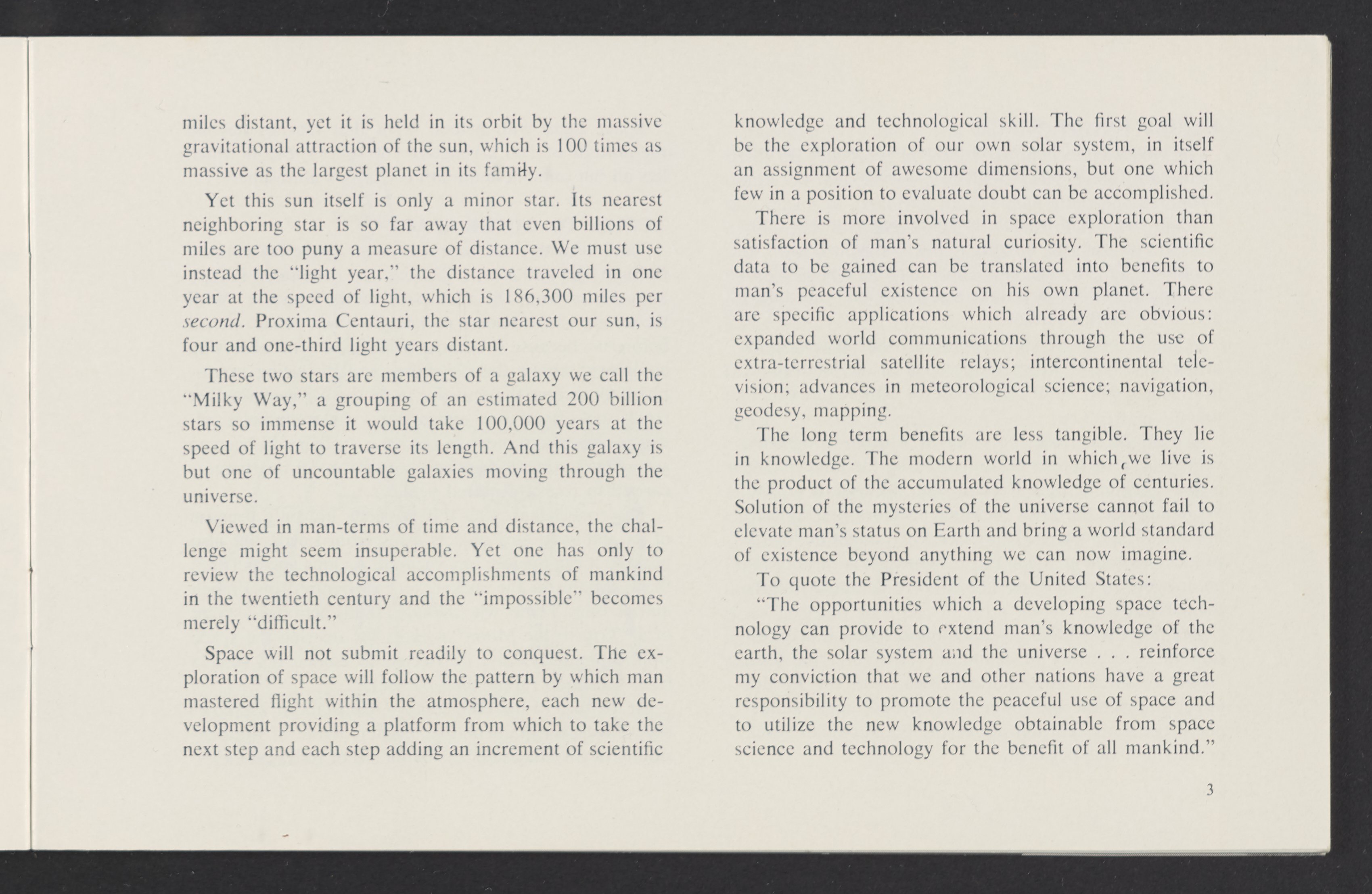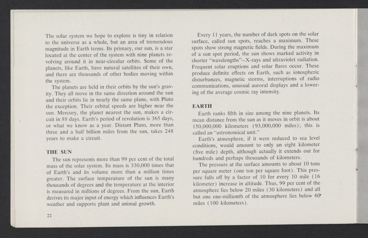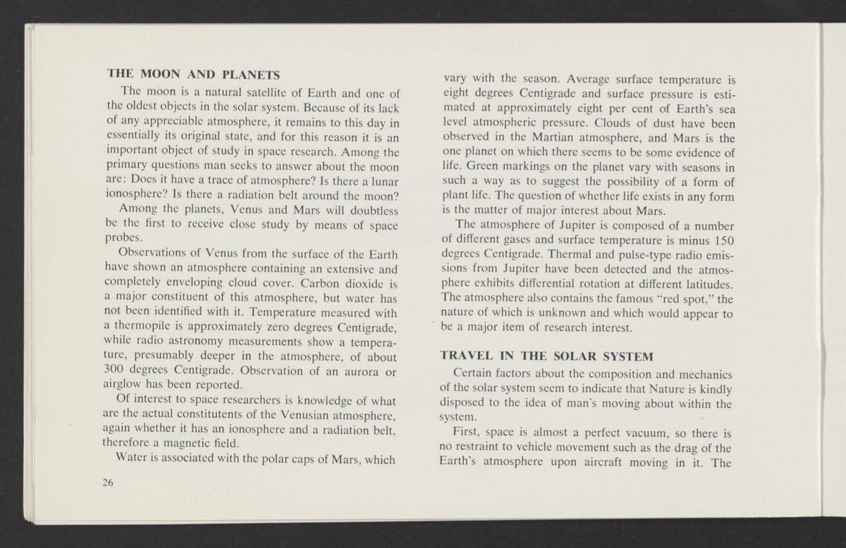United States. National Aeronautics and Space Administration. “The Challenge of Space Exploration : A Technical Introduction to Space.” Washington (D.C.): United States. Government Printing Office, 1959. TL790 .C35 1959. Science History Institute. Philadelphia. https://digital.sciencehistory.org/works/zzweilc.